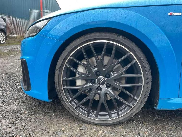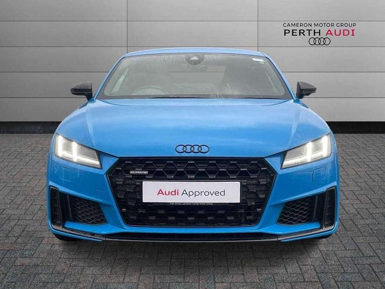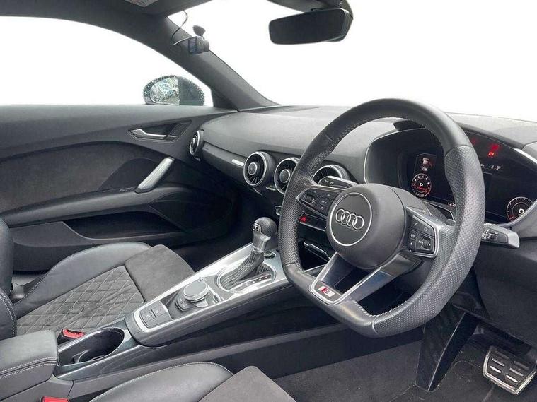 Audi drive select with 4 Pre configured modes, Audi smartphone interface, Cruise control + speed limiter, Emergency call service, MMI touch panel, Mobile phone preparation with bluetooth interface, Progressive power assisted steering, Service interval indicator, Start/Stop system with energy recuperation, TP memo, Sports suspension, AM/FM radio, Bluetooth audio streaming, DAB Digital radio, MMI Radio with CD player and SD/XC card slot, Auto dimming rear view mirror, Auto headlight range control, Black chrome tailpipe, Dark privacy glass from B-pillar backwards, Electric folding door mirrors, Electric front windows, Electrically adjustable and heated door mirrors with integrated LED side indicators, Front fog lights, Green tinted heat insulating glass, LED 3rd brake light, LED daytime running lights, LED headlights with LED rear lights + dynamic rear indicators, Light and rain sensors, Rear boot, Sunband for windscreen, 12V socket, 2 rear seats, 3 spoke flat bottomed high multi-function leather sport steering wheel with gearshift paddles, 4 way electric lumbar support for driver and front passenger, Black headlining, Contrasting silver stitching in steering wheel, Door sill trims, Extended aluminium look with stainless steel pedals, Front centre armrest, Front passenger seat, Front super sports seats, Heated front seats, Height/reach adjust steering wheel, Integrated head restraints, ISOFIX child seat mounting for front passenger seat with airbag deactivation, Manual adjustment of seat height, fore/aft position, seat angle, seat depth and backrest angle, Perforated leather gearknob in black, Rear head restraints, Rear top tether child seat ISOFIX attachment, Split folding rear seat, Tool kit, Black styling pack - TT, Non smoking pack - TT/TT RS, 3 point front seat belts, ABS, ASR traction control, Curtain airbags, Driver and front passenger airbag with front passenger airbag deactivation, EDL traction control, Electromechanical parking brake, ESP, First aid kit, Front side airbags, Head airbags, Hill hold assist, Seatbelt warning, Tyre pressure loss indicator, Warning triangle, Anti theft alarm, Anti theft wheel bolts, Immobiliser, Keyless Go, Remote central locking, Matt brushed aluminium inlays, Tyre repair kit,