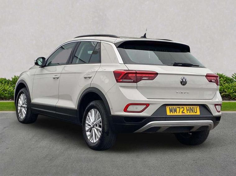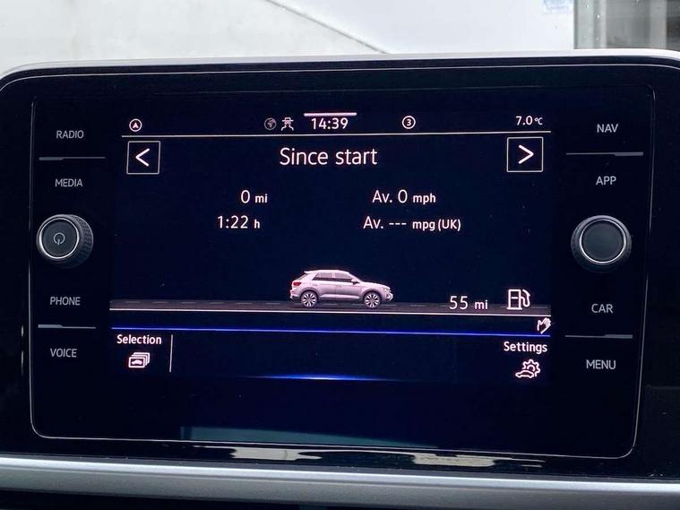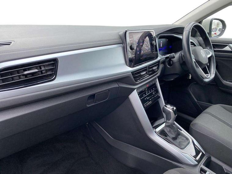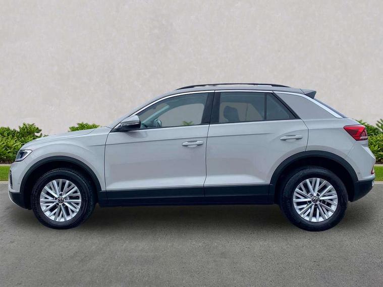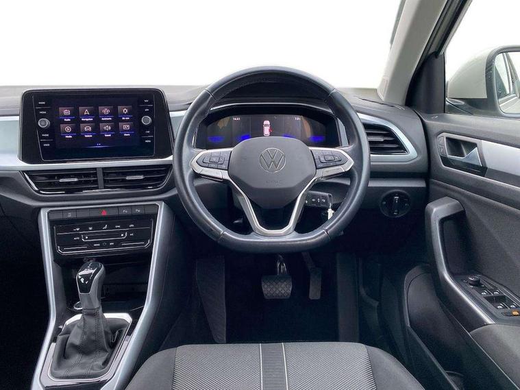 Bluetooth mobile phone interface, Driver alert system with fatigue detection, Driver tips and journey analysis, Emergency call service, Lane keeping system Lane Assist, Modified key software - reduce switch off time for key status change to Long no motion, Online services, Park assist including front and rear parking sensors, Power assisted speed sensitive steering, Service interval indicator, Tailgate/trunk lid release from outside, Think blue trainer driver tips and journey analysis, Warning sound and light for front seatbelts unfastened, Wireless app connect, Battery regeneration during braking, Front shock absorption, Rear shock absorption chassis with increased ride height, Start/stop function with battery regeneration, DAB Digital radio, Diversity antenna for FM reception, Front and rear 6 speakers, Music playback - MP3, WMA and AAC files, Premium USB cable in choice of either Apple or Android smartphone compatibility, SD card slot, Simultaneous pairing of 2 compatible mobile devices, Title and cover art display, We Connect and We Connect Plus functionality, 3rd brake light, Auto dimming interior rear view mirror, Automatic hazard lights activation under emergency braking, Automatic headlight control with LED separate daytime running lights with coming/leaving home function, Black roof rails, Body coloured bumpers and radiator grille with chrome trim and front fog lamps with chrome bezel, Body coloured exterior mirror housings and door handles, Extended roof spoiler, Exterior mirrors aspherical on driver side, convex on front passenger side, External USB type C socket and charging sockets, Front windscreen wiper with intermittent wipe and 4 position delay, Heated rear window, LED Headlights, LED rear combination lamps, LED rear number plate lights, LED tail lamp rear comination lamps, Power windows with comfort operation and circuit breaker, Rain sensor, Rear exhaust tailpipe, Rear fog light on one side and reversing lights on both sides, Rear side wing doors, Rear wash/wipe with intermittent wipe setting, Remote electrically foldable door mirrors, puddle lights and reverse activated passenger's door mirror, 12V power socket in centre console, 3 rear head restraints, 3 seat bench in 2nd row, 4 load lashing points in luggage compartment, Air care climatronic air conditoning system with active combination filter and 2-zone temperature control, Ambient lighting with mirror logo projection, Cloth upholstery, Door and side trim panel in cloth, Drawer under drivers seat, Driver/front passenger seat height adjustment, Front centre armrest, Front comfort sports seats, Front cupholders x 2, Front reading light, Instrument lighting, white adjustable panel illumination, Interior light delay, Isofix child seat preparation, Leather gearshift handle, Load-through provision with cup holder when folded down ('Unsplit rear seat bench, split folding backrest, with centre armrest), Luggage compartment lighting, Lumbar support for driver's and front passengers seat, Non-folding front passenger seat backrest, Single front passenger seat, Storage compartment in left and right luggage area, Storage compartment in rear doors, Storage compartments in driver and front passenger doors, Sunvisors with illuminated vanity mirrors, Variable boot floor, height adjustable and removable, Driver assistance pack without proactive passenger protection - T-Roc, 3 point height adj front seatbelts + pretensioners, 3 point seatbelts in outer rear with ECE label, ABS, Child locks on rear doors, Driver and front passenger airbag with front passenger airbag deactivation, Driver and front passenger safety-optimised head restraints, Drivers seatbelt reminder, Electronic parking brake, Electronic Stability Control (ESC) inc EDL (Electronic Differential Lock) and ASR (Traction Control), Front and rear passengers curtain airbag system including front side airbags, Front assist with city emergency braking and pedestrian monitoring, Front disc brakes, Front seat side impact airbags, Hill start assist, Predictive pedestrian protection, Rear disc brakes, Single tone horn, Tyre pressure loss indicator, Volkswagen roadside assistance, Alarm with interior protection, Anti-theft alarm system with interior monitoring, backup horn, and towing protection, Remote central locking with SAFELOCK, radio remote control with 2 remote control folding keys, Pewter matt decorative inserts for intrument panel, centre console and door panels at the front, Trims for alloy wheels,