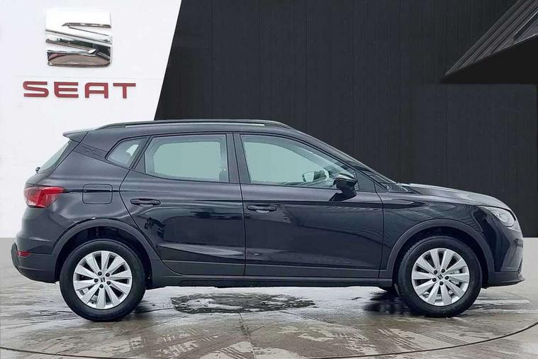 'Lights On' Reminder warning buzzer, 8" Digital cockpit, Digital clock, E-call, Electric speed sensitive power steering, Full link smartphone integration with mirror link, wireless apple carplay, Google android auto + USB Type C cable for apple and android devices, Lane keeping system, Low fuel warning light, Outside temperature display, RPM counter, Speed limiter, Trip computer, 4 speakers, Bluetooth interface for hands free and audio streaming, DAB digital radio and AM/FM radio, Media system with 8.25" colour touchscreen with USB port (type c), Steering wheel mounted audio controls, Anti theft roof antenna, Automatic activation of hazard warning lights, Black roof rails and window surrounds, Body coloured bumpers, Body coloured door handle inserts, Body coloured door mirrors, Dimming rear view mirror, ECO LED automatic headlights and LED daytime running lights, Electric adjustable door mirrors, Electric front/rear windows, Hidden exhaust pipe, LED rear tail lights and licence plate lights, Licence plate lights, Protective side mouldings, Rain sensing wipers, Rear fog lights, Rear side wing doors, Rear spoiler, Rear window wash/wipe, Third brake light, Visible VIN plate, 2 cupholders, 3 seat bench in 2nd row, 60/40 split folding rear seat, Air conditioning, Aircare filter, Card holder on driver sunvisor, Cloth upholstery, Double boot floor, Gear shift indicator, Grey interior air vents, Grey interior roof, Height adjustable front seats, Height/reach adjustable steering column, Illuminated boot, Instrument lighting with brightness control, ISOFIX points in outer rear seats with top tether anchorage points, Multi function steering wheel/basic gear knob/handbrake, Potentiometer, Single front passenger seat, Two front and three rear height adjustable headrests, Safe and driving pack (S) - Arona, 3 point seatbelts on all rear seats, ABS, Active front headrests, Child locks on rear doors, Driver and front passenger airbags with front passenger airbag de activation, front side and curtain airbags, Emergency Brake Assist (EBA) and front assist, Forward collision warning and autonomous emergency braking, Front and rear seatbelt reminder, Hill hold control, Multi-Collision braking, Tiredness recognition system, Traction control, Tyre pressure monitoring system, Deadlock, Electronic engine immobiliser, Locking wheel bolts, Remote central locking, Titan black dashboard, 16" Alloy wheels with all season tyres,