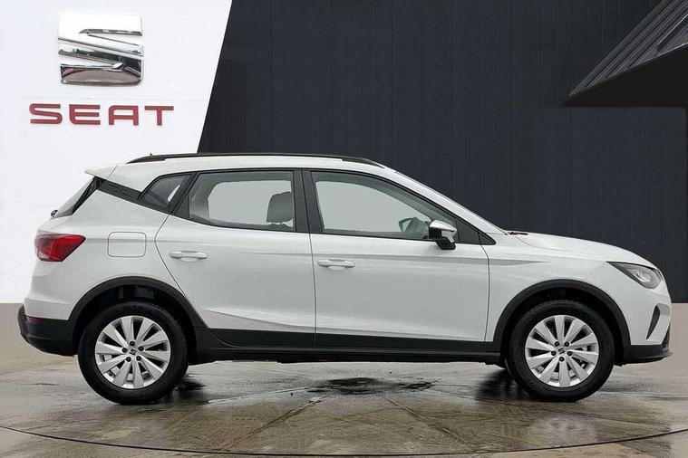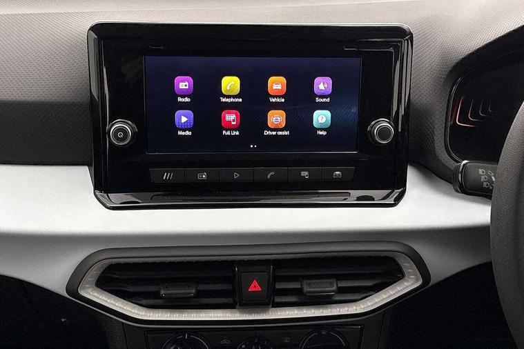 'Lights On' Reminder warning buzzer, 8" Digital cockpit, Digital clock, E-call, Electric speed sensitive power steering, Full link smartphone integration with mirror link, wireless apple carplay, Google android auto + USB Type C cable for apple and android devices, Lane keeping system, Low fuel warning light, Outside temperature display, RPM counter, Speed limiter, Trip computer, 4 speakers, Bluetooth interface for hands free and audio streaming, DAB digital radio and AM/FM radio, Media system with 8.25" colour touchscreen with USB port (type c), Steering wheel mounted audio controls, Anti theft roof antenna, Automatic activation of hazard warning lights, Black roof rails and window surrounds, Body coloured bumpers, Body coloured door handle inserts, Body coloured door mirrors, Dimming rear view mirror, ECO LED automatic headlights and LED daytime running lights, Electric adjustable door mirrors, Electric front/rear windows, Hidden exhaust pipe, LED rear tail lights and licence plate lights, Licence plate lights, Protective side mouldings, Rain sensing wipers, Rear fog lights, Rear side wing doors, Rear spoiler, Rear window wash/wipe, Third brake light, Visible VIN plate, 2 cupholders, 3 seat bench in 2nd row, 60/40 split folding rear seat, Air conditioning, Aircare filter, Card holder on driver sunvisor, Cloth upholstery, Double boot floor, Gear shift indicator, Grey interior air vents, Grey interior roof, Height adjustable front seats, Height/reach adjustable steering column, Illuminated boot, Instrument lighting with brightness control, ISOFIX points in outer rear seats with top tether anchorage points, Multi function steering wheel/basic gear knob/handbrake, Potentiometer, Single front passenger seat, Two front and three rear height adjustable headrests, Safe and driving pack (S) - Arona, 3 point seatbelts on all rear seats, ABS, Active front headrests, Child locks on rear doors, Driver and front passenger airbags with front passenger airbag de activation, front side and curtain airbags, Emergency Brake Assist (EBA) and front assist, Forward collision warning and autonomous emergency braking, Front and rear seatbelt reminder, Hill hold control, Multi-Collision braking, Tiredness recognition system, Traction control, Tyre pressure monitoring system, Deadlock, Electronic engine immobiliser, Locking wheel bolts, Remote central locking, Titan black dashboard, 16" Alloy wheels with all season tyres,