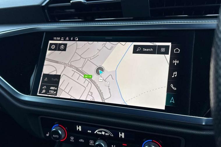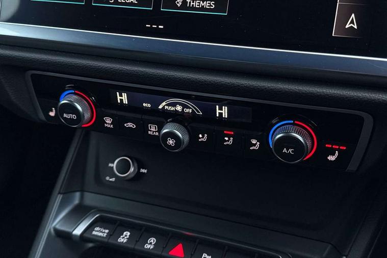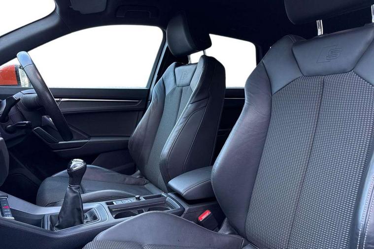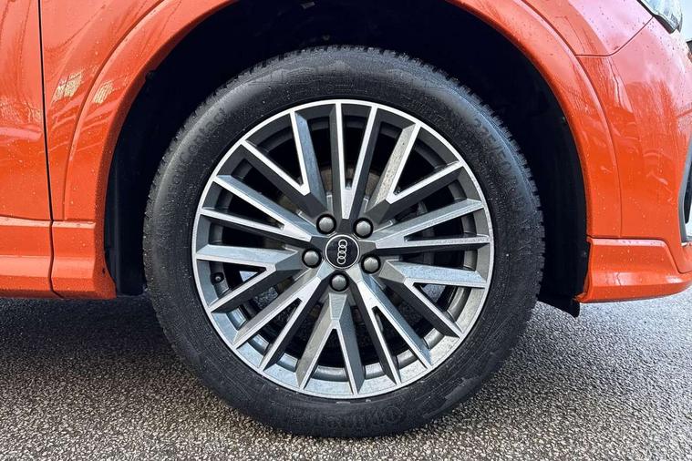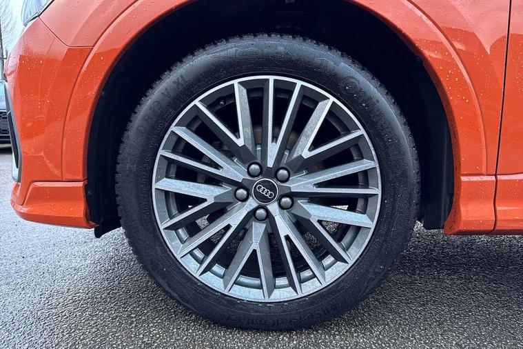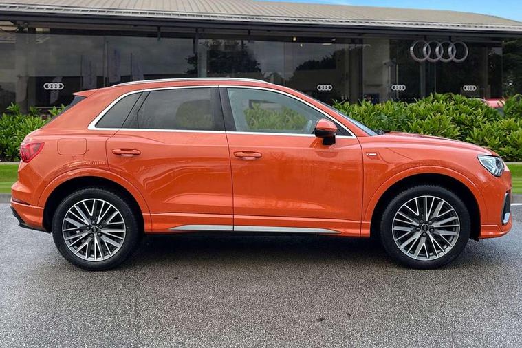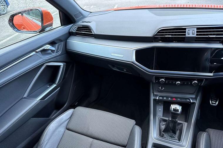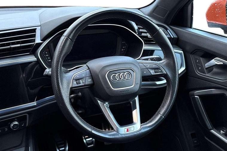 Amazon alexa Integration, Audi drive select, Audi lane departure warning, Audi Virtual Cockpit - 10.25" display, Bluetooth interface, Camera based traffic sign recognition, Cruise control + speed limiter, Legal emergency call, MMI Navigation Plus with high resolution 10.1 inch touchscreen colour display, Power operated tailgate, Progressive steering, Rear parking sensors, Service interval indicator, Smartphone interface includes wireless Apple carplay/Android Auto, Start stop system with recuperation, Voice control system with natural language interaction, Sports suspension, 2 USB-C ports with charge and data functions, 6 passive loudspeakers, DAB digital radio module, Acoustic windscreen, Aluminium roof rails, Aluminium window trim, Auto dimming frameless rear view mirror, Body colour front spoiler blade, Body coloured bumpers, Electrically folding, adjustable and heated door mirrors with integrated LED side indicators and kerb view function for passenger side, Front and rear electric windows, Front fog lights, Front side air inlets in matt platinum grey, Grille vertical bars in aluminium silver/Matt, High gloss black finish B and C pillars, LED Dynamic rear indicators, LED headlights with LED daytime running lights, LED rear lights, LED third brake light, Privacy glass dark tinted rear and rear-side windows (from B-pillar backwards), Rain and light sensors, Rear diffuser grille in grained matt black, Rear diffuser strip in matt titanium black, Rear side wing doors, Rear wiper, S line badges on front wings, S Line front and rear bumpers, Side skirt insert in matt Platinium grey, Titanium black radiator grille, Variable front intermittent wipers, 12V socket in rear centre console, 3 seat bench in 2nd row, 40:20:40 folding with manual adjustment for 60:40 forwards/backwards position and backrest angle, Adjustable rear seat bench/backrest with centre armrest and cupholder, Black cloth headlining, Dual zone electronic climate control, Front and rear black floor mats with contrast stitching in rock grey, Front and rear headrests, Front and rear roof module including reading lights, Front centre armrest, Glove compartment lighting, Height and reach adjustable steering wheel, Illuminated door sill trims with S logo, ISOFIX child seat mounting for front passenger with airbag deactivation and outer rear seat including top tether attachment point for outer rear seats, Luggage compartment light, Manual front seats with height adjustment, Perforated leather gearknob, Single front passenger seat, Stainless steel luggage compartment sill finisher, Stainless steel pedals, Ambient lighting pack - Q3, Non smoking pack - Q3, 3x3 point rear seatbelts, 6 airbags - Driver, front passenger, curtain and side windows, Audi pre-sense front with pedestrain and cyclist recognition, Electrically operated child locks on rear doors, Electromechanical parking brake, Electronic stabilisation control including ABS, ASR and EDL, Front seatbelt reminder, Hill descent control, Hill hold assist, Pre sense basic, Seatbelt monitoring, Tyre pressure warning, Warning triangle and first aid kit, Anti theft alarm, Anti theft wheel bolts, Immobiliser, Remote central locking, Dark matt brushed aluminium inlay, Detail dashboard around MMI touch colour display in glass look, black with surround in aluminium look, Leatherette door armrest,