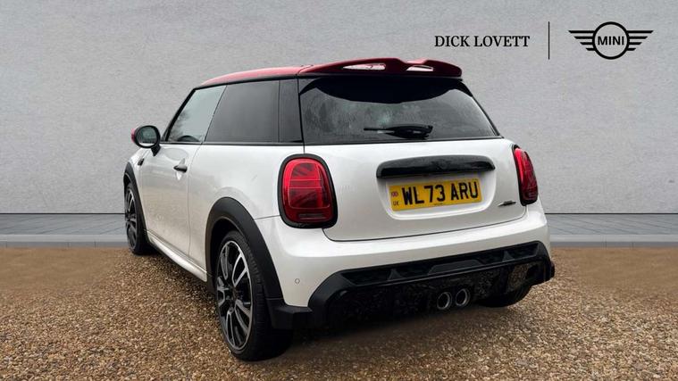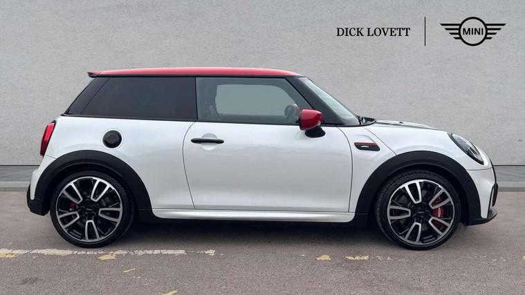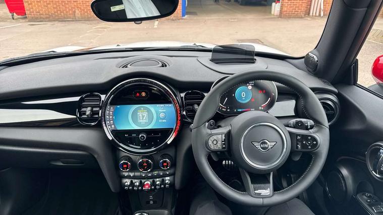 Apple CarPlay, Automatic start/stop function with brake energy recuperation, Compatible mobile phone bluetooth with audio streaming, Cruise control with brake assist, Electro-mechanical speed dependant steering assistance, Flexible car sharing preparation, Instrument cluster, MINI Driving Modes - centre toggle switch to control driving setting (sport, mid and green), Mini E-call, MINI TeleServices, On board computer, Rear park distance control, Service interval indicator, Double Vanos system, Eight speed steptronic sport transmission, with gearshift paddles, Fully variable valve control, High precision injection, Performance Control, 8.8" touchscreen with LED ring, FM tuner and DAB digital radio, 3rd brake light, Automatic headlight activation switch, Bonnet scoop, Dynamic brake lights, Electric front windows, Heated rear window, Heated windscreen washer jets, JCW Aerodynamic kit - Front and rear bumpers with sporty JCW styling and part-painted side sills with MINI John Cooper Works door sill finishers, John Cooper Works logo above an individual grille strut in Chilli Red, John Cooper Works rear spoiler, LED headlight with closed ring and daytime driving lights, Radiator grille piano black border with honeycomb structure in black matt, Rain sensor window wipers, Rear fog lights, Rear LED lights with union jack design, Rear window wiper, Side scuttle panel with integrated indicator, Side scuttle with MINI John Cooper Works logo in black high-gloss with red border, Sun/heat protection glass, Two central exhaust tailpipes with chrome finisher, White indicator lenses, 12V Accessory socket in centre console, 2 seat bench in 2nd row, 4 lashing eyes in luggage compartment, 60/40 split folding rear seat, Anthracite headliner including grab handles and clothes hooks, Carbon black colour line - Knee roll and door armrest, Chrome interior highlights, Cupholders, Front and rear isofix with front passenger airbag deactivation, Front floor mats in velour, Glove compartment, Height and length steering column adjustment, Interior lighting with 12 different colours across the dashboard, underneath door bezel with illuminated laser-engraved design on central display, JCW Sport seats with integrated headrests, adjustable thigh support and John Cooper Works logo, Leatherette gearshift lever and handbrake gaiters, LED reading lights, vanity mirror lights, front foot well light and spotlight on front seats, Manual air conditioning, Mechanical seat adjustment - forward/back & backrest for front seats and driver seat height adjust, Multifunction steering wheel, Passenger seat height adjuster, Rubberised stainless steel pedals, Single front passenger seat, Storage compartments in doors, Storage pocket on back of front seats, Sunvisors with vanity mirrors, Walknappa leather steering wheel with grey seam and John Cooper Works badge on Piano Black lower steering wheel spoke, Navigation pack without Apple Carplay - Mini Hatchback, Piano black exterior pack - JCW, 3 point seatbelts on all four seats, 4-piston fixed-calliper brakes front, 6 Airbags - front, side, head and seat belt tensioners, Anti-lock braking system (ABS), DSC - Dynamic Stability Control, Front and rear disc brakes, Red brake callipers with John Cooper Works logo, Single tone fanfare horn, Tyre pressure monitoring system, Alarm system with tilt sensor, monitoring doors, bonnet interior and tailgate, Electronic vehicle immobiliser, Start/stop toggle with keyless go, Tool kit,
