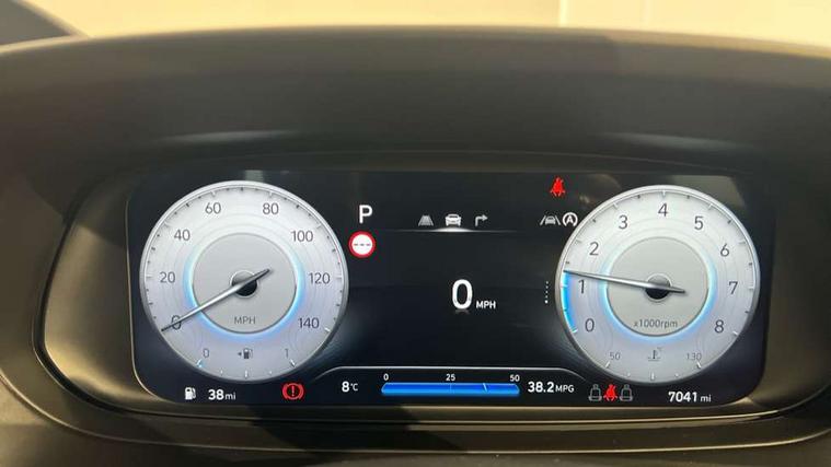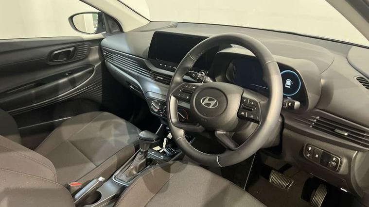 10.25" digital supervision cluster, 2nd Gen eCall, 8" Touchscreen with DAB, Apple car play/Android Auto, Cruise control + speed limiter, Forward collision assist with car, pedestrian and cycle detection, Intelligent speed limit warning, Lane follow assist, Lane keep assist, PAS, Rear parking sensor, Rear view camera with dynamic guidelines, USB C port front, 3rd brake light, Dusk sensor, Electric adjustable heated door mirrors, Front grille mesh pattern design, High beam assist, LED daytime running lights, LED Headlights, LED taillights, Rain sensor, Rear side wing doors, Rear wiper, Repositioned flat metal hyundai emblem, 3 seat bench in 2nd row, Adjustable head restraints, Air conditioning, Cloth upholstery, Floor mats, Leather steering wheel, Single front passenger seat, 3x3 point rear seatbelts, ABS with front and rear diagonally split, Autonomous emergency braking, Child locks on rear doors, Front ventilated disc brakes, Rear solid disc brakes, Tyre pressure monitoring system, 16" alloy wheels, Tyre repair kit,