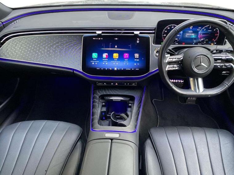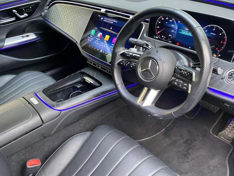 12.3" Driver display screen, 14.4" central media display, 5G Communications module, Attention assist, Augmented reality navigation, Blind spot assist, Brake wear warning display, Direct steer speed sensitive steering, ECO start/stop function, Emergency call assistance, Evasive manoeuvre support, Fluorescent jacket for driver, Hard disc navigation, Head up Display, MBUX navigation premium, MBUX voice control, Mercedes connect me, Outside temperature display, Preinstallation for live traffic, Remote Services Premium, Service indicator (ASSYST), Status display for rear seat belts in instrument cluster, Trip computer in multifunction display showing current fuel consumption, Wireless charging, Wireless smartphone integration with Apple CarPlay and Android auto, 48V Mild hybrid technology, 66 litre fuel tank, 9G TRONIC automatic transmission, Agility control suspension with selective damping and lowering, Bluetec emission control, Diesel particulate filter, Integrated starter generator Gen 2, Sporty engine sound system, DAB Digital radio, Preinstallation for MBUX Entertainment Plus, 3rd brake light, Adaptive brake lights, Aerial integrated in rear window, AMG bodystyling, Auto dimming driver's door mirror, Auto dimming rear view mirror, Black radiator grille, Digital air vent control, Electric folding door mirrors, Electric windows with one touch opening/closing and obstruction sensors, Electrically adjustable and heated door mirrors, Heat insulating privacy glass, LED daytime running lights, LED digital light with adaptive highbeam assist plus, Pre-installation for roof rail systems, Rear boot, Rear side wing doors, Surround lighting with logo projection, 3 seat bench in 2nd row, 4 way lumbar support, Ambient lighting, AMG brushed stainless steel sports pedals with rubber studs, AMG floor mats, AMG line interior, Automatic child seat recognition sensor, Central stowage compartment with USB socket for use with Android Auto and Apple CarPlay, Comfort seats, Courtesy lights in rear grab handles with reading light functionality, Folding rear seat backrest, Front centre armrest with stowage compartment, Glove compartment - lockable, air conditioned and illuminated, Head restraints for driver and front passenger (four-way adjustability) and in rear (two-way), Heated front seats, Illuminated door sills, Multifunction sports steering wheel in nappa leather, Roof liner in black fabric, Seat occupancy sensor for front passenger seat, Single front passenger seat, Sunvisors with illuminated vanity mirrors, Thermotronic 4 zone climate control, Leather package - E Class, Memory package - E Class, Parking package with 360 degree camera - E Class, USB plus package - E Class, 3x3 point rear seatbelts, Active bonnet pedestrian safety measure which detects an impact and raises bonnet, Adaptive brake system with HOLD function and brake drying in the wet, Anti-lock braking system (ABS), Automatic front passenger airbag deactivation, Central airbag, Childproof locks manually operated for rear doors and electrically operated for rear power windows, Driver and adaptive front passenger airbags, Electronic parking brake, Electronic Stability Programme, Hill start assist, ISOFIX child seat attachment points two outer rear seats, Knee airbags, Pedestrian protection, Pre-Safe anticipatory safety system, Tyre pressure monitoring system, Warning triangle and first aid kit, Window airbags, Alarm system with interior monitoring, Central locking with interior switch, automatic locking and crash sensor with emergency opening function, Dashcam, Digital vehicle key, Guard 360 degree vehicle protection plus, Increased anti theft protection, Keyless Go, Urban guard vehicle protection plus, Open pore black ash backlit wood trim with laser cut Mercedes Benz star pattern and open pore black ash wood centre console, 19" AMG 5 twin spoke alloy wheels, Summer tyres, Tirefit,
