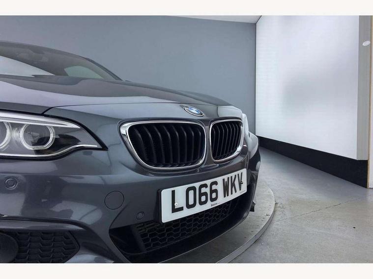 BMW Online services, BMW Teleservices, Brake pad wear indicator warning light, Check control system, Door/boot open warning, Lights on warning, Oil temperature gauge, On board computer, Outside temperature display, Service interval indicator, Speed limiter, Stop/start button, Diesel particulate filter, Drive Performance Control, Auxiliary point for auxiliary devices, BMW professional radio/CD/MP3, DAB Digital radio, 2 speed adjustable intermittent wipers with wash/wipe function, Body colour bumpers, Body colour door handles, Body colour door mirrors, Body colour roof mouldings, Chrome air intake, Chrome exhaust tailpipe, Chrome kidney grille with black vertical slats, Door sill finishers, Electric adjustable heated door mirrors, Electric front windows/one touch facility, Follow me home headlights, Front fog lights, Headlight range control, Heat insulating tinted glass, Heated windscreen washer jets, LED rear lights, M aerodynamic body styling, Rain sensor including auto headlights activation, Shark fin roof aerial, Welcome lighting, 12V sockets in front centre console and passenger footwell, 3 Spoke M sport nappa leather multifunction steering wheel, 4 grab handles, Anthracite headlining, Anthracite Velour floor mats, Folding storage compartment with glasses holder + coin tray, Front cupholders x 2, Front door storage bins, Front head restraints, Front sliding armrest, Front/rear armrests within door panels, Glovebox with lid, ISOFIX child seat preparation+airbag deactivation, Lashing eyelets in boot, Leather gearknob, Luggage compartment lighting, Reach + rake adjustable steering column, Rear centre armrest, Rear coat hooks, Storage compartment in rear centre console, Xenon headlight pack - 2 Series/M2, 3 point seatbelts, ABS/EBD, Automatic Stability Control (ASC), BMW emergency call, Cornering brake control (CBC), Crash Sensor - activates hazard/interior lighting + unlocks doors, Driver seatbelt warning indicator, Driver/Front Passenger airbags, DSC+, Dynamic brake control, Dynamic Traction Control - DTC, Front and rear curtain airbags, Front seatbelt force limiters, Front seatbelt pretensioner, Front side airbags, Hill start assist, Manual passenger airbag deactivation function, Tyre pressure monitoring system, Warning triangle and first aid kit, Drive away door locking, Electronic immobiliser, Remote central locking, Remote control Thatcham category 1 alarm, Run flat tyres,