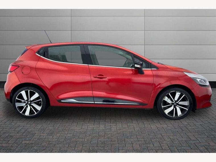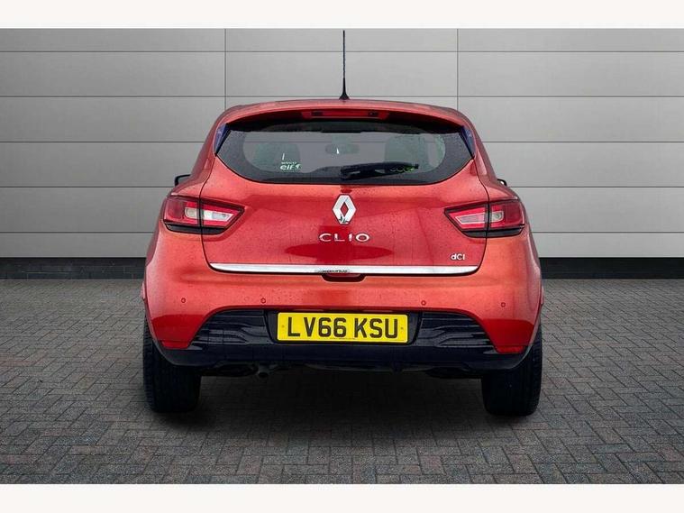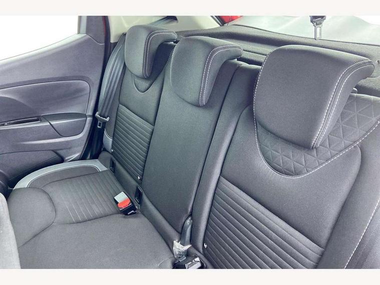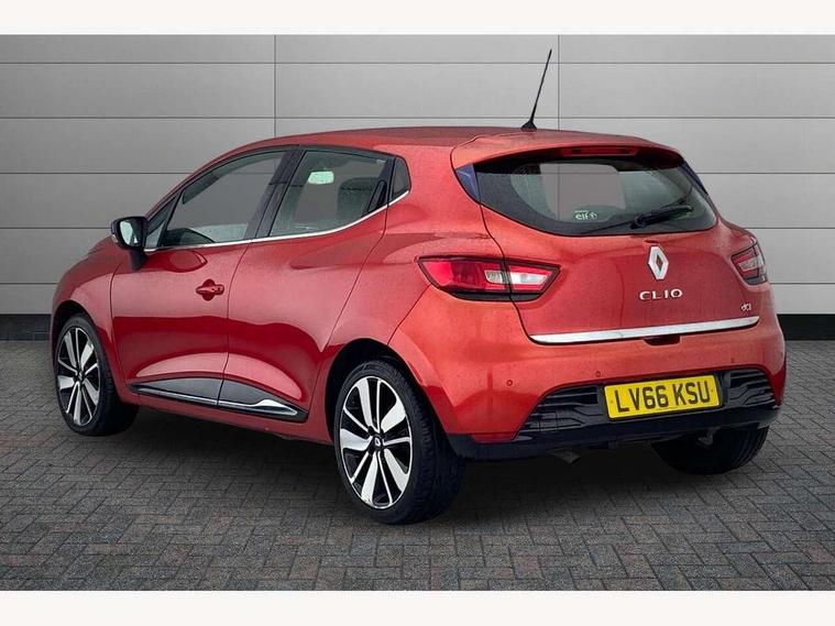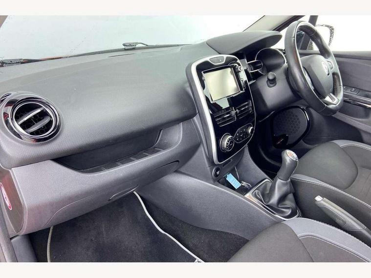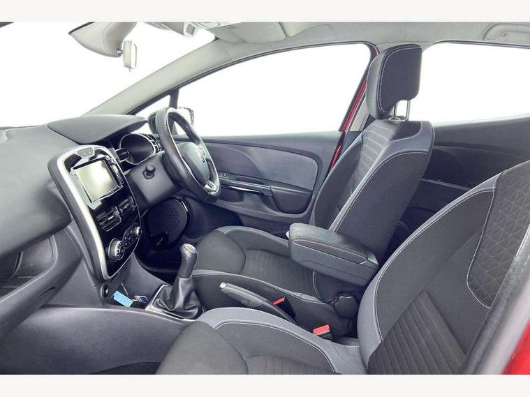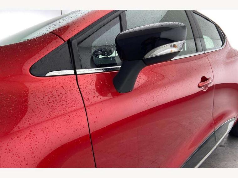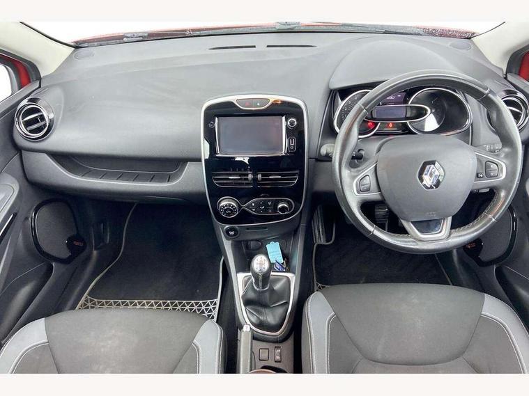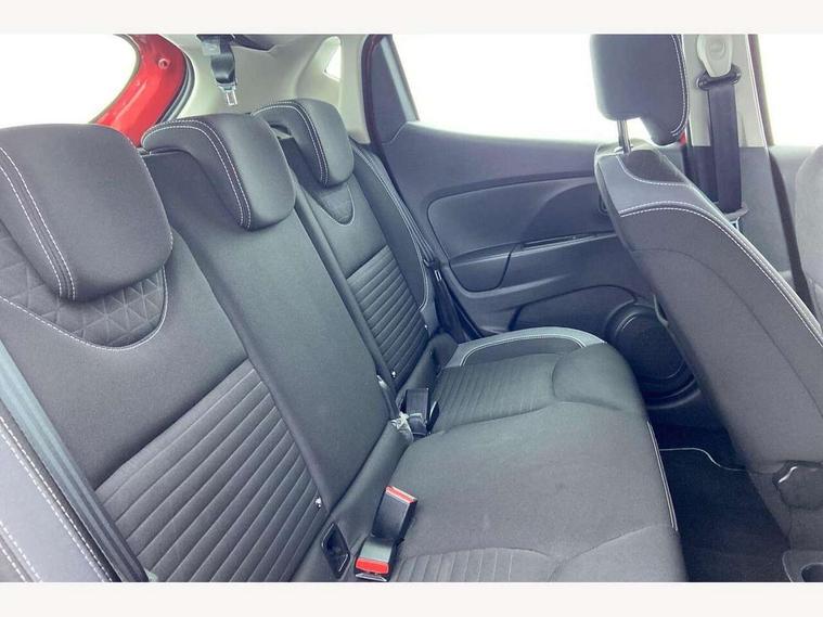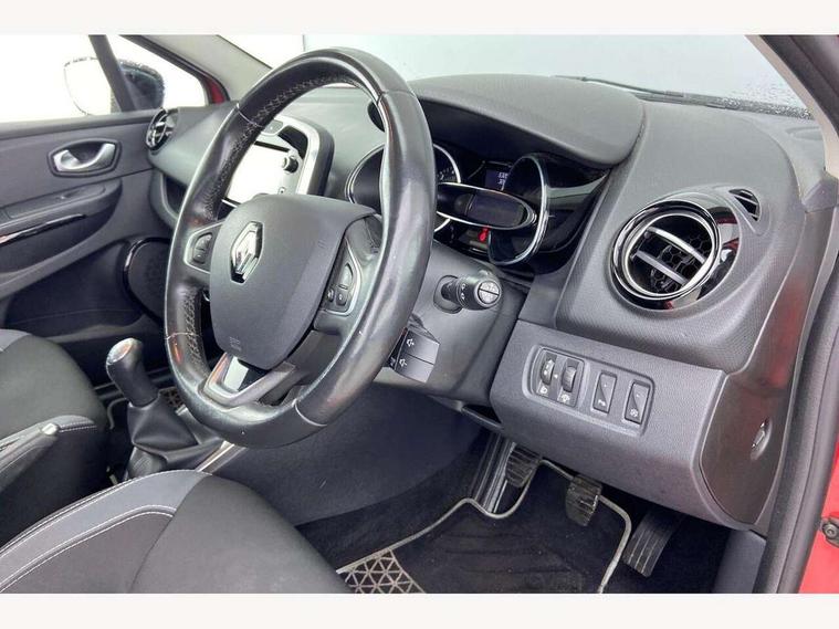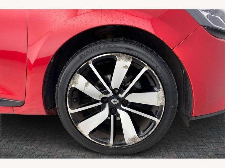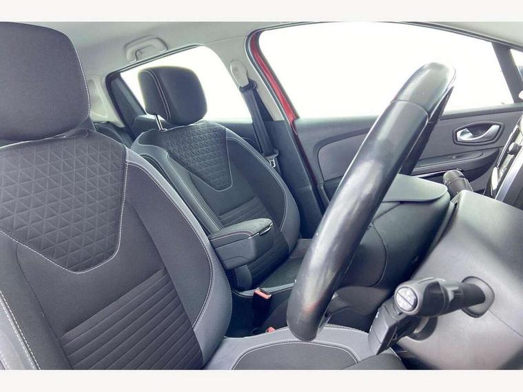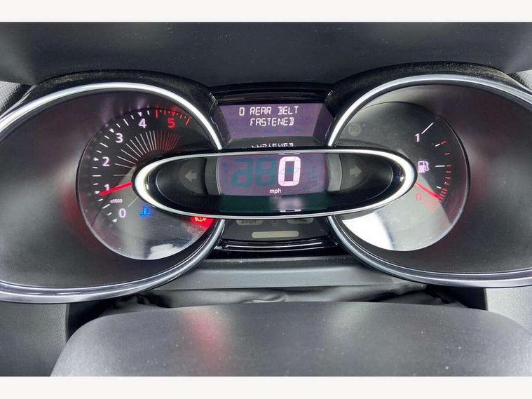 Cruise control + speed limiter, Rear parking sensor, Trip computer, Variable PAS, DAB radio preparation, Fingertip controls for audio system, Automatic headlights + automatic windscreen wipers, Black headlamp surrounds, Black rear diffuser, Body colour door handles, Body coloured bumpers, Body coloured rear spoiler, Chrome strip on lower grille, Chrome surround for front fog lights, Chrome window surround, Electric adjustable door mirrors, Electric folding door mirrors, Electric front windows + one touch + anti-pinch, Electric rear windows, Front fog lamps, Gloss black finish B pillar, Gloss black front bumper insert with chrome surround, Heated door mirrors, LED daytime running lights, Rear wiper, Tinted windows, Variable front intermittent wipers, 12V Accessory socket, 2 cupholders, 3 rear height adjustable headrests, 60/40 split rear seats, Air recirculation control, Auto climate control, Chrome gear knob insert, Chrome interior door handles, Design cloth upholstery, Driver's seat height adjustment, Folding front passenger seat, Front centre armrest with storage compartment, Full leather steering wheel, Gloss black door handle surrounds, Glovebox, Height adjustable front headrests, Height/reach adjust steering wheel, Isofix system on outer rear seats, Multi function steering wheel, Passenger dashboard tray, Pollen filter, 3 point seatbelts on all rear seats, ABS+EBD+Brake assist, Driver and passenger front and side airbag deactivation, Driver/Front Passenger airbags, Driver/front passenger side airbags, ESP + Traction control + Understeer control, Front side airbags(head+thorax), Height adjustable driver's seatbelt, Hill start assist, Seatbelt warning, Tyre pressure monitoring system, Anti-drill door locks, Child lock control of rear doors and windows, Deadlocking system, Hands free Renault card, Locking fuel filler cap, RAID (Renault Anti-Intruder Device) with automatic door locking, Remote central locking, Thatcham Cat 2 engine immobiliser, Dark carbon soft touch dashboard, Gloss black air vent surround, Gloss black centre console, Gloss black dashboard inserts, Instrument dials in chrome surround,