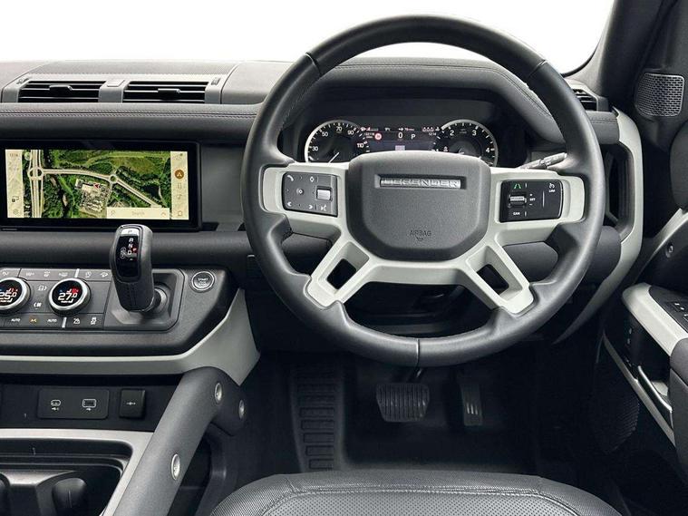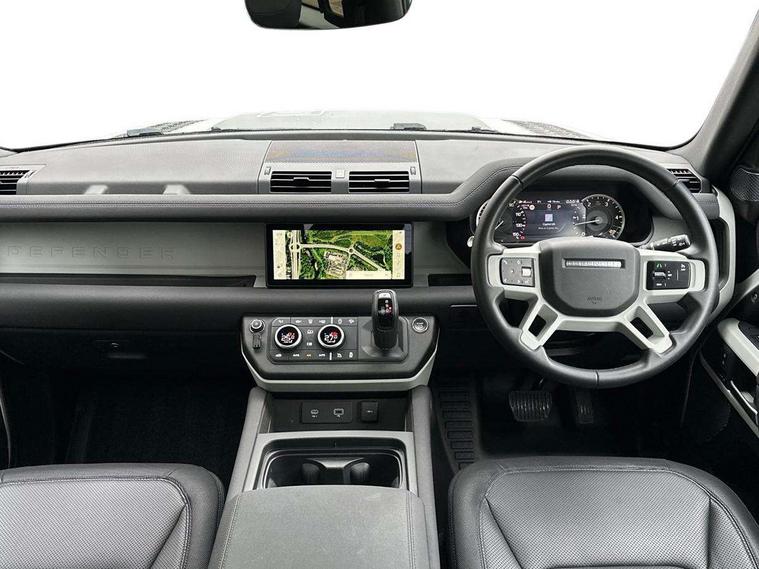 360 degree parking aid, 3D Surround Camera with 360 View, 180 Rear View, Front Traffic Detection, Forward Vehicle Guidance, Tow Hitch Assist and clear sight Ground View, Android Auto, Apple CarPlay, Assisted tailgate with soft close, Blind spot assist, Bluetooth system, Brake pad wear indicator, Clear exit monitor, Connected navigation pro, Driver condition monitor, Electric power assisted steering (EPAS), Lane keep assist, Push button start, Rear traffic monitor, Traffic sign recognition with adaptive speed limiter, Trip computer, Wade Sensing, 8 speed automatic transmission, All wheel drive system, Twin speed transfer box, DAB Radio (Digital Audio Broadcasting), Meridian 400w sound audio system with 11 speakers and subwoofer, Pivi pro connected, Automatic headlight levelling, Automatic headlights, Centre high mounted stop light, Electric heated/power fold door mirrors with approach lights and auto dimming driver side, Electric windows with one touch open/close and anti-trap, Follow me home lighting, Front fog lights, Heated rear window with timer, Heated windscreen, LED tail lights, Panoramic rear side glass, Privacy glass, Puddle lights, Rain sensing windscreen wipers, Rear fog lights, Rear wiper, Side hinged tailgate, Trailer stability assist, X-Dynamic badge, 12V power socket in loadspace, 3 seat bench in 2nd row, Alpine lights, Durable rubber cabin flooring, Durable rubber loadspace flooring, Footwell lights, Loadspace cover, Loadspace Hook, Multifunction steering wheel, Overhead stowage for sunglasses, Premium cabin lighting, Rear headrests, Rear ISOFIX, Rear reading lights, Single front passenger seat, Standard seat configuration, Storage glovebox, Sunvisors with illuminated vanity mirrors, Online pack with data plan - Defender, 5 x 3 point seatbelts, ABS, Brake hold function, Cornering brake control (CBC), Customer configurable autolock, DSC - Dynamic Stability Control, EBD - Electronic brakeforce distribution, Electric parking brake (EPB), Emergency brake assist, Emergency braking, ESP + traction control, Front airbags with passenger seat occupant detector, HDC - Hill descent control, Hill launch assist, Low traction launch, Remote for (e-Call, Optimised assistance call, InControl app, Climate, beep and flash and door), RSC - Roll stability control, Seat belt reminder, TPMS (Tyre pressure monitoring system), Alarm, Immobiliser, Intrusion sensor, Keyless entry, Locking wheel nuts,