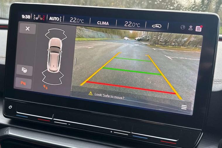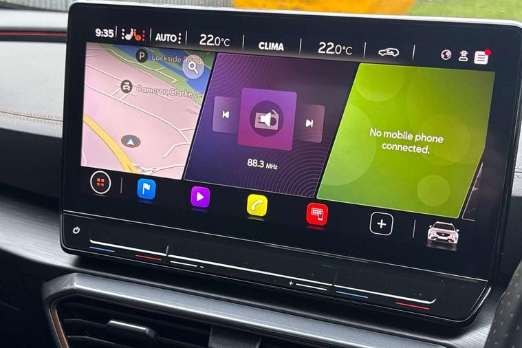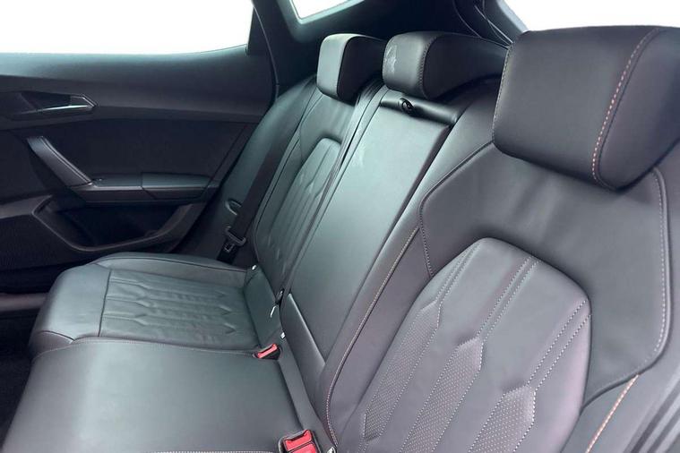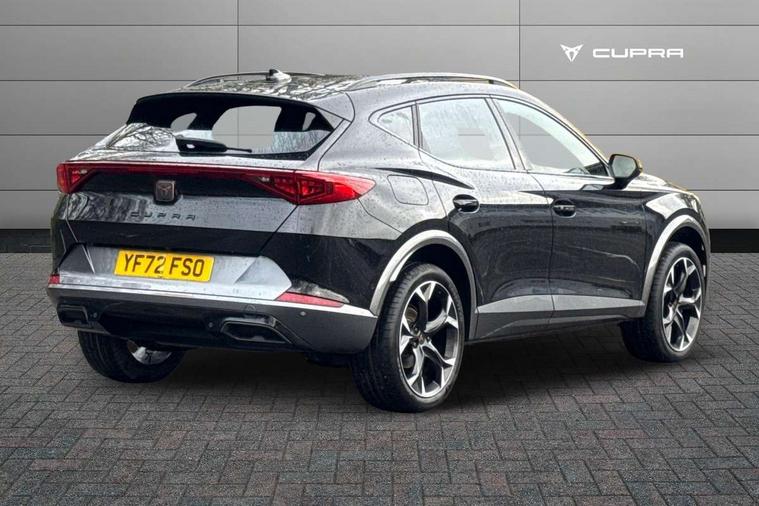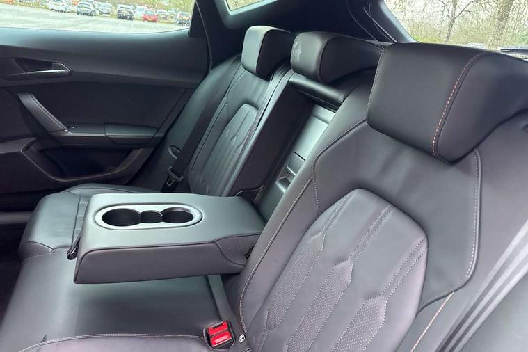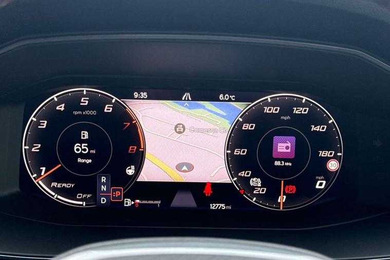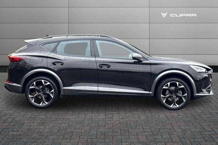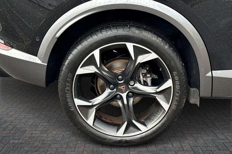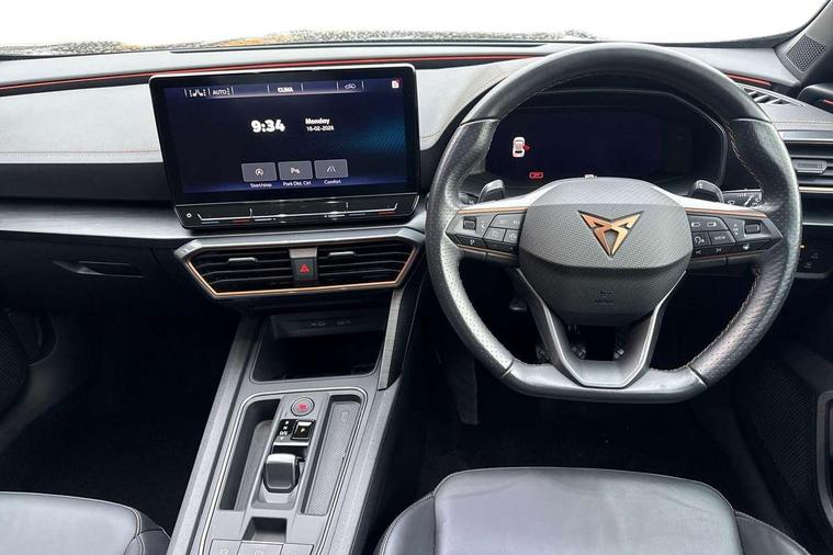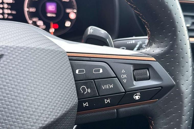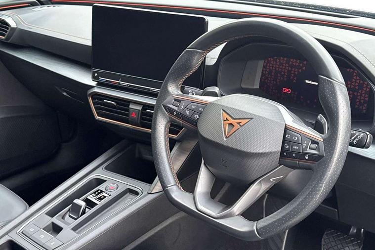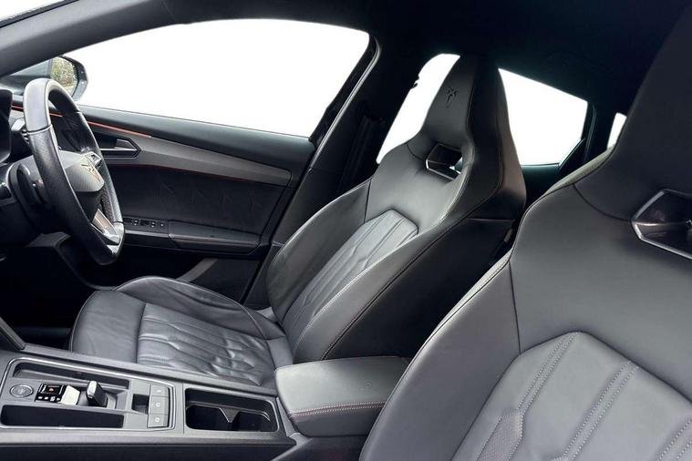 Digital cockpit and configurable dashboard, Driver alert system, Driving profile selection, Forward collision warning with automatic braking, Lane assist, Navigation system with 12'' Touchscreen Display, Park assist (inc front/rear parking sensors), PAS, Predictive adaptive cruise control with speed limiter, Rear view camera, RPM, trip computer, outside temp gauge, instrument light brightness, low fuel warning light, lights on reminder, gearshift indicator, Service interval indicator, Start/stop system with regenerative braking, Voice control system, Wireless apple carplay, Wireless phone charger, Electronic locking differential and dynamic traction support, Standard suspension, 2 front and 2 rear USB type C sockets, Auxiliary input socket, DAB radio, Auto dimming rear view mirror, Body colour door handles, Body coloured bumpers, Dark grey wing mirror, Daytime running light with automatic headlight control and coming home feature, Dynamic headlight range control, Electric front/rear windows, Electrically adjustable heated and folding door mirrors with memory function, Front fog lamps with cornering function, Gloss black roof rails and window surrounds, LED Headlights, LED Taillights with dynamic indicator, Rain sensing wipers, Rear diffuser with black simulated exhaust pipes, Rear side wing doors, Rear wash/wipe, Third brake light, Tinted rear windows, Welcome lights, 12v power supply in centre console, 12V socket, 12v socket in loadspace, 2 front and 2 rear reading lights, 230V socket, 3 seat bench in 2nd row, 60/40 split rear bench seat with armrest and mechanical seat release, Black headlining, Dust/pollen filter, Front and rear head restraints, Front centre armrest, Height/reach adjust steering wheel, Illuminated interior front door sills, Illuminated sunvisor with mirror, Isofix, Leather multi function heated steering wheel with gear shift paddles, Luggage tie-down hooks, Single front passenger seat, Three zone climate control with control panel in rear, Variable luggage/load compartment floor, Wraparound lighting, Genuine Nappa leather Pack - Cupra, 3 point seatbelts on all rear seats, ABS, Brake control system - ESC and brake booster, Child proof door locks, Driver and front passenger airbags with front passenger airbag de-activation, Electronic parking brake, Front and rear disc brakes, Front side curtain airbags, Hill hold control, Public e-call, Seat belt reminder for front and rear seats, Tyre pressure monitoring system, Anti theft alarm system, Keyless entry and start system (KESSY), Locking wheel bolts, Copper and aluminium interior detailing, 19" 'Exclusive' machined sport matte black and silver alloy wheels,