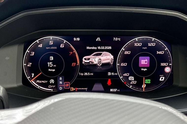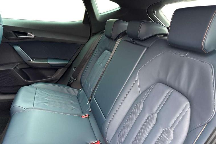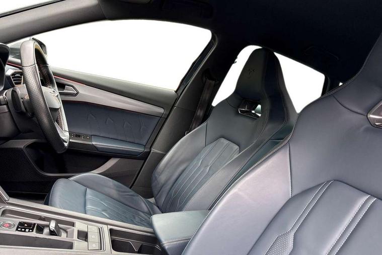 Digital cockpit and configurable dashboard, Driver alert system, Driving profile selection, Forward collision warning with automatic braking, Lane assist, Navigation system with 12'' Touchscreen Display, Park assist (inc front/rear parking sensors), PAS, Predictive adaptive cruise control with speed limiter, Rear view camera, RPM, trip computer, outside temp gauge, instrument light brightness, low fuel warning light, lights on reminder, gearshift indicator, Service interval indicator, Start/stop system with regenerative braking, Voice control system, Wireless apple carplay, Wireless phone charger, Electronic locking differential and dynamic traction support, Standard suspension, 2 front and 2 rear USB type C sockets, Auxiliary input socket, DAB radio, Auto dimming rear view mirror, Body colour door handles, Body coloured bumpers, Dark grey wing mirror, Daytime running light with automatic headlight control and coming home feature, Dynamic headlight range control, Electric front/rear windows, Electrically adjustable heated and folding door mirrors with memory function, Front fog lamps with cornering function, Gloss black roof rails and window surrounds, LED Headlights, LED Taillights with dynamic indicator, Rain sensing wipers, Rear diffuser with black simulated exhaust pipes, Rear side wing doors, Rear wash/wipe, Third brake light, Tinted rear windows, Welcome lights, 12v power supply in centre console, 12V socket, 12v socket in loadspace, 2 front and 2 rear reading lights, 230V socket, 3 seat bench in 2nd row, 60/40 split rear bench seat with armrest and mechanical seat release, Black headlining, Dust/pollen filter, Front and rear head restraints, Front centre armrest, Height/reach adjust steering wheel, Illuminated interior front door sills, Illuminated sunvisor with mirror, Isofix, Leather multi function heated steering wheel with gear shift paddles, Luggage tie-down hooks, Single front passenger seat, Three zone climate control with control panel in rear, Variable luggage/load compartment floor, Wraparound lighting, Genuine Nappa leather Pack - Cupra, 3 point seatbelts on all rear seats, ABS, Brake control system - ESC and brake booster, Child proof door locks, Driver and front passenger airbags with front passenger airbag de-activation, Electronic parking brake, Front and rear disc brakes, Front side curtain airbags, Hill hold control, Public e-call, Seat belt reminder for front and rear seats, Tyre pressure monitoring system, Anti theft alarm system, Keyless entry and start system (KESSY), Locking wheel bolts, Copper and aluminium interior detailing, 19" 'Exclusive' machined sport matte black and silver alloy wheels,