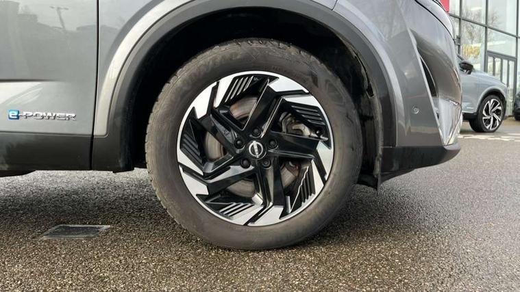 2 front USB-C ports, 2 rear USB-C ports, 360 degree Intelligent around view monitor with moving object detection, Blind spot intervention, Blind spot warning, Drive assist custom mode, Drive modes (sport, normal, eco), Driver drowsiness and attention warning, e-Pedal step, Electric speed sensitive power steering, Emergency and breakdown call, Emergency lane keep assist, Emergency Stop Signal (ESS), Engine start/stop button, EV mode switch, Event data recorder, Front and rear parking sensors, Full Digital 12.3" TFT Digital Combimeter, Google virtual personal assistance, Idle stop/start system, In-car WIFI hotspot, Intelligent Cruise control (ICC), Intelligent forward collision warning, Intelligent speed assist, Lane departure warning system, Nissan connect 12.3 inch touchscreen infotainment system, Nissan connect navigation with google maps, Nissan connect services 2.0 (Google Automotive System), Outside temperature sensor, Rear cross traffic alert, Reversing detection, Traffic jam pilot, Wireless Apple CarPlay/Android Auto, Wireless charging pad, Limited slip differential, 6 speakers, AM/FM audio system with DAB, Bluetooth audio streaming, Auto dimming frameless rear view mirror, Auto rear wiper when reversing, Body colour mirror caps, Body coloured door handles, Bodyside mouldings, Chrome side window finisher, e-POWER badging, Electric auto folding door mirrors, Electrically adjustable and heated door mirrors with LED turn indicator, Follow me home headlights, High beam assist, Intelligent auto headlights, LED 3rd brake light, LED daytime running lights, LED Headlights, LED rear lights, One touch front and rear electric windows with remote opening and closing, One touch passenger window, Partially body coloured bumpers, Rear privacy glass, Rear roof spoiler, Rear side wing doors, Rear styling plate, Shark fin antenna, Splash free rain sensing wipers, Super UV and infrared cut glass, Three blink turn signal, 3 bench rear seats in 2nd row, 3 rear headrests, 60/40 split folding rear seat bench, Chrome interior door handles, Cloth upholstery, Dark headlining, Driver seat back pocket, Dual zone automatic climate control with pollen filter, e-POWER shifter, Front door with bottle holders, Height adjustable front headrests, Luggage board system, Luggage space lighting, Multifunction steering wheel, Passenger seat back pocket, Rear door bottle holders, RGB ambient light (Full area coverage), Single front passenger seat, Smooth leather steering wheel, Tilt/telescopic adjustable steering wheel, Two rear isofix child seat anchorage points with top tether, 3x3 point rear seatbelt pretensioners + load limiters, Autonomous emergency braking, Child locks on rear doors, Curtain and front side, far side airbags, Driver and passenger airbags, Driver, passenger and 2nd row rear seat belt reminder, Electric handbrake with auto hold function, Front seatbelt pretensioners + load limiters, Height adjustable front seatbelts, Hill start assist, intelligent front emergency braking, Rear automatic braking, Tyre pressure monitoring system, Vehicle dynamic control, Engine immobiliser, Intelligent key with walk away lock and approach unlock functions, Remote central door locking with deadlocking, Thatcham alarm, 18" Diamond cut alloy wheels, Tyre puncture repair kit,
