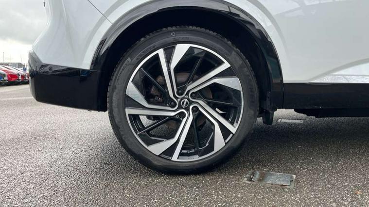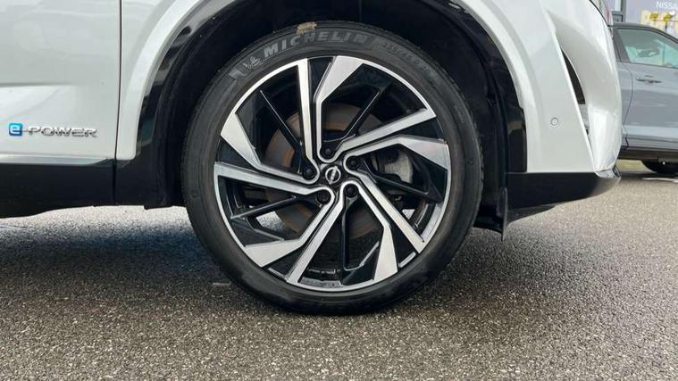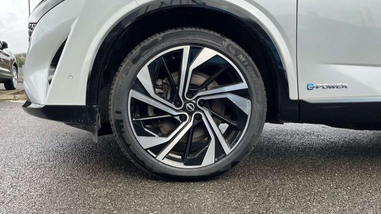 2 front USB-C ports, 2 rear USB-C ports, 360 degree Intelligent around view monitor with moving object detection, Advanced windscreen head up display, Blind spot intervention, Blind spot warning, Drive assist custom mode, Drive modes (sport, normal, eco), Driver drowsiness and attention warning, e-Pedal step, Electric speed sensitive power steering, Emergency and breakdown call, Emergency lane keep assist, Emergency Stop Signal (ESS), Engine start/stop button, EV mode switch, Event data recorder, Front and rear parking sensors, Full Digital 12.3" TFT Digital Combimeter, Google virtual personal assistance, Hands free power tailgate, Idle stop/start system, In-car WIFI hotspot, Intelligent Cruise control (ICC), Intelligent forward collision warning, Intelligent speed assist, Lane departure warning system, Nissan connect 12.3 inch touchscreen infotainment system, Nissan connect navigation with google maps, Nissan connect services 2.0 (Google Automotive System), Outside temperature sensor, Rear cross traffic alert, Reversing detection, Traffic jam pilot, Wireless Apple CarPlay/Android Auto, Wireless charging pad, Limited slip differential, Multi link suspension, 10 Bose speakers - 2 tweeters, 6 high and medium frequency door speakers and 2 in subwoofer, AM/FM audio system with DAB, Bluetooth audio streaming, Bose acoustimass bass box, Auto dimming frameless rear view mirror, Auto rear wiper when reversing, Body colour mirror caps, Body coloured bumpers, Body coloured door handles, Bodyside mouldings, Chrome side window finisher, e-POWER badging, Electric auto folding door mirrors, Electrically adjustable and heated door mirrors with LED turn indicator, Follow me home headlights, Glossy black bumper inserts and fenders, High beam assist, Intelligent auto headlights, LED 3rd brake light, LED daytime running lights, LED headlights with adaptive driving beam, LED rear lights, LED sequential turn lights, One touch front and rear electric windows with remote opening and closing, One touch passenger window, Rear privacy glass, Rear roof spoiler, Rear side wing doors, Rear styling plate, Reverse tilting door mirrors, Shark fin antenna, Silver roof rails, Splash free rain sensing wipers, Super RED rear LED lights, Super UV and infrared cut glass, Thermaclear heated windscreen, 3 bench rear seats in 2nd row, 3 rear headrests, 60/40 split folding rear seat bench, Chrome interior door handles, Dark headlining, Driver seat back pocket, Dual zone automatic climate control with pollen filter, e-POWER shifter, Fixed Glass roof with electric sunshade, Front door with bottle holders, Heated front seats, Heated steering wheel, Height adjustable front headrests, Luggage board system, Luggage space lighting, Multifunction steering wheel, Passenger seat back pocket, Quilted premium leather upholstery, Rear door bottle holders, RGB ambient light (Full area coverage), Single front passenger seat, Smooth leather steering wheel, Tilt/telescopic adjustable steering wheel, Two rear isofix child seat anchorage points with top tether, 3x3 point rear seatbelt pretensioners + load limiters, Autonomous emergency braking, Child locks on rear doors, Curtain and front side, far side airbags, Driver and passenger airbags, Driver, passenger and 2nd row rear seat belt reminder, Electric handbrake with auto hold function, Front seatbelt pretensioners + load limiters, Height adjustable front seatbelts, Hill start assist, intelligent front emergency braking, Rear automatic braking, Tyre pressure monitoring system, Vehicle dynamic control, Engine immobiliser, Intelligent key with walk away lock and approach unlock functions, Remote central door locking with deadlocking, Thatcham alarm, 20" Diamond cut alloy wheels, Tyre puncture repair kit,