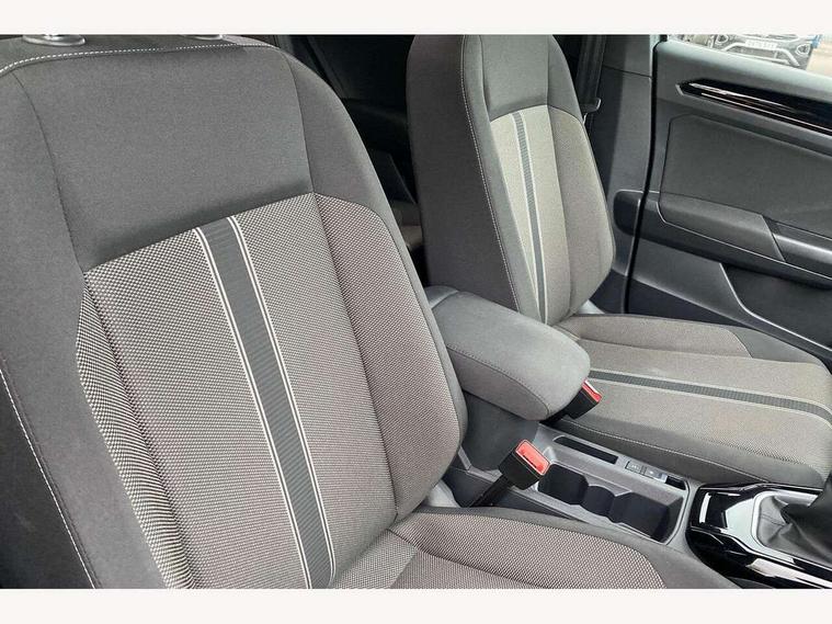 'Lights On' Reminder warning buzzer, Adaptive cruise control with front assist, radar sensor controlled distance monitoring, city emergency braking, App-Connect, Automatic start/stop system, Bluetooth telephone and audio connection for compatible devices, Car information display, Driver tips and journey analysis, Lane assist with warning text instrument cluster, Modified key software - reduce switch off time for key status change to Long no motion, Multifunction computer with visual gear change recommendation for fuel consumption, Service interval indicator, Think blue trainer driver tips and journey analysis, Warning sound and light for doors and tailgate open, Warning sound and light for front seatbelts unfastened, Wireless app connect for apple carPlay, Battery regeneration during braking, Centre arm rest including USB type C interface and USB charging socket, DAB Digital radio, Diversity antenna for FM reception, Front USB type C Interface 2X and USB charging socket, Multi device interface (MDI) with USB connection, Music playback - MP3, WMA and AAC files, Premium USB cable in choice of either Apple or Android smartphone compatibility, SD card slot, Simultaneous pairing of 2 compatible mobile devices, Single CD player, glovebox mounted, SMS functionality - read, compose and send SMS messages using touch-screen display, Title and cover art display, Auto dimming interior rear view mirror, Automatic hazard lights activation under emergency braking, Black grained lower door protectors, Black grained wheel arches, Body colour bumpers with silver metallic underbody fascia, Body colour door handles, C pillar decorative film in dark grey/black with graphic pattern, Chrome trim on upper and lower radiator grille, Dusk sensor, Electrically foldable, adjustable and heated door mirrors with puddle lights and reverse activated kerb-view adjustment on passenger's door mirror, Exhaust tailpipes in black, Front and rear electric windows, Front windscreen wiper with intermittent wipe and 4 position delay, Fully galvanised body, Heated rear window, High level 3rd brake light, LED dipped and main beam headlights with automatic range adjustment including signature LED daytime running lights, LED rear number plate lights, Manual coming/automatic leaving home lighting function, Rain sensor, Rear tinted glass from B-pillar backwards approx 65% tinted, Rear wash/wipe with intermittent wipe setting, Trim strips on grille and vehicle side, Volkswagen roundel, 12V socket in centre console storage area, 3 rear head restraints, 4 load lashing points in luggage compartment, Black roof lining, Climate control - 2 zone electronic air conditioning with automatic air recirculation and allergy filter, Drawer under drivers seat, Front centre armrest with storage compartment, longitudinal and height adjustable and two rear air vents, Front cupholders x 2, Front seat back storage pockets, Glovebox, Height adjustable front seats, Height/reach adjust steering wheel, Instrument lighting, white adjustable panel illumination, Interior light in footwell, Isofix easy fit child seat preparation for 2 outer rear seats, Leather gearshift knob, LED interior light with switch off delay/dimmer and 2 front/rear LED reading lights, Load through provision with single cup holder when folded down, Luggage compartment cover, removable, Luggage compartment lighting, Split folding rear seat backrests with centre armrest, Storage compartment in left and right luggage area, Storage compartment in rear doors, Storage compartments in driver and front passenger doors, Sunvisors with illuminated vanity mirrors, Three spoke multi-function leather trimmed steering wheel and gearknob, White ambient lighting, 3 rear three point seatbelts, ABS, Curtain airbags, Driver and front passenger safety-optimised head restraints, Drivers and front passengers airbags with passengers deactivation switch, Drivers seatbelt reminder, Electronic parking brake with auto hold, Electronic stability control (ESC) includes ASR, EDL, EDTC and trailer stabilisation function, Front seat side impact airbags, Predictive pedestrian protection, Rigid safety cell with front and rear crumple zones, Three point height adjust front seatbelts + pretensioners, Tyre pressure loss indicator, Ventilated front and rear disc brakes, Volkswagen roadside assistance, Alarm with remote central locking and interior protection, Electronic engine immobiliser, Remote central locking with 2 remote folding keys, Black decorative trims, Piano black decorative inserts in dash, centre console and door panel, 18" Arlo black diamond turned surface alloy wheels,
