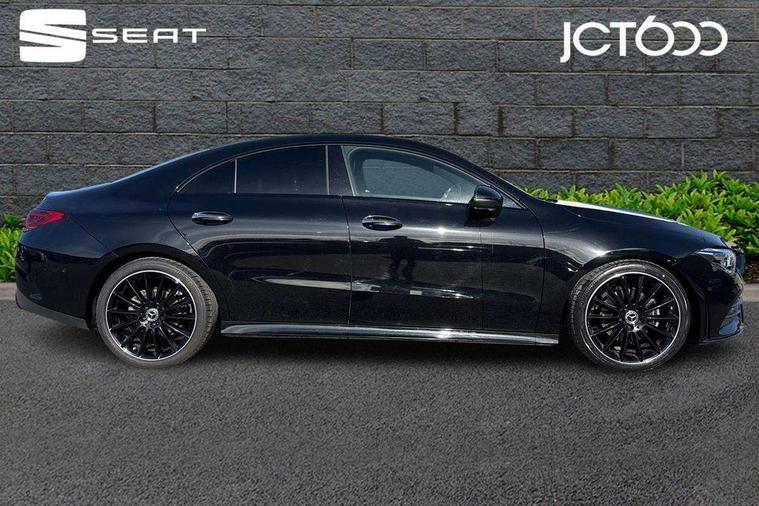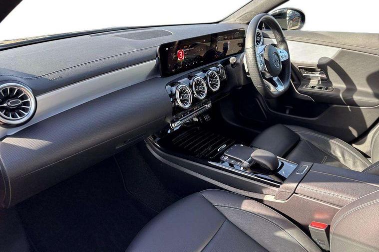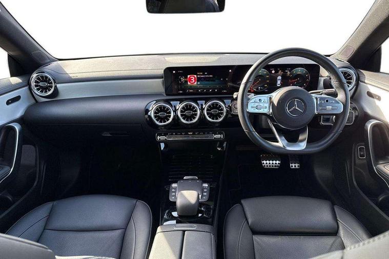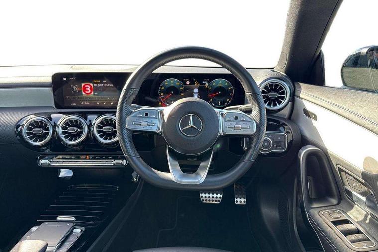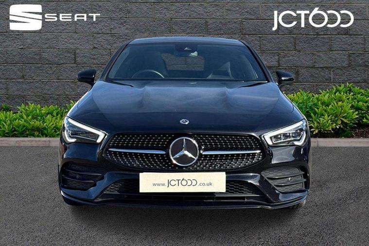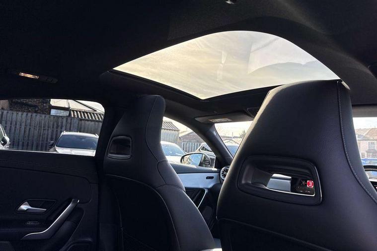 10.25 inch Instrument display with digital cockpit, 10.25 inch touchscreen central media display, Active lane keeping assist, Attention assist - Monitors steering behaviour and long journey fatigue, Blind spot assist, Bluetooth connection, Car wash mode, Cruise control with limiter, Direct steer system with speed sensitive power steering, DYNAMIC SELECT with a choice of driving modes (ECO, Comfort, Sport and Individual), ECO start/stop function, Fluid level warning indicator for fuel, oil, coolant and washer fluid, Hard-disk navigation, Hey Mercedes Voice activation, Lamp failure indicator, Mercedes me connect including emergency call system, accident recovery, breakdown and maintenance management, Mercedes me remote services, Outside temperature gauge, Owners manual and service booklet in English, Pre-installation of private car share, Preinstallation for Mercedes Benz link, Radio aerial integrated into front and rear windshields, Service indicator (ASSYST), Smartphone integration with Apple CarPlay and Android auto, Speed limit assist, Traffic sign assist, Trip computer in multifunction display with current consumption indicator, Lowered comfort suspension, Rear axle multi-link, DAB digital radio tuner, MBUX multimedia system, Mid-range sound system, USB (type C) ports (2) in stowage compartment and 1 in front of centre console, Adaptive brake lights, AMG body styling with AMG front apron and rear apron and visible exhaust tailpipe in chrome trim elements, AMG bodystyling side skirts, Body colour bumpers, Body colour door handles, Chrome beltline strips, Diamond radiator grille pins in chrome, Electric panoramic sunroof with automatic tilt and convenience closing fuinctions, rain sensor auto closing and electronic roller sunblind, Electric windows, Electrically adjustable and heated door mirrors with integrated LED indicators, Exhaust system with 2 Visible tailpipe trim elements and rear apron with trim in chrome, Headlamp assist automatic headlamp activation, Heated glass rear windscreen + timer control, High level LED third brake light, Integrated LED daytime running lights, Interior mirror with black reading lamps and frameless, LED tail lamp, Multibeam LED headlamps with adaptive highbeam assist plus, Privacy glass with dark tinting on rear side windows and rear window, Rain sensing windscreen wipers with two sensitivity settings, Rear boot, Rear fog lamp, Rear side wing doors, Variable front intermittent wipers, Window line trim strip in chrome, 3 seat bench in 2nd row, 3 spoke flattened bottom nappa leather multifunction steering wheel with perforated leather in grip area, 40:20:40 split folding rear seat backrests, Air conditioning - Two zone thermotronic luxury automatic climate control with display, Air vents with surround in silver chrome, Artico man-made leather upholstery, Automatic child seat recognition sensor, Black roof lining, Brushed stainless steel sports pedals with rubber studs, Electrically adjustable front memory seats including lumbar support, Floor mats with stitched AMG lettering, Front centre armrest with stowage, Galvanished gear shift paddles on steering wheel, Heated front seats, Illuminated front door sills with changeable cover, Illuminated glove compartment stowage, Interior lighting - 64 colour Ambient lighting, Luggage net on driver/front passenger seat backrest, Manually adjustable front seats, Manually height and reach adjustable steering column, Rear armrest with two integral cup holders for drinks, Rear head restraints, Single front passenger seat, Sport seats with fixed head restraints, Stowage compartment in centre console with retractable cover, Sunvisors with illuminated vanity mirrors, Touchpad on center console, Twin front cupholders, Two outer rear seat isofix and top tether child seat fixing points, Keyless go comfort pack - CLA, Light and sight pack - CLA, Mirror pack - CLA, Night package - CLA, Parking package - CLA, Active bonnet pedestrain safety measure which detects an impact and raises bonnet by 65mm, Active brake assist includes forward collision warning system with autonomous braking, Adaptive brake assist with hold function and hill start assist, Anti lock braking system (ABS) with brake assist, Black seat belts, Bonnet with power domes, Brake pad wear warning indicator, Childproof locks manually operated for rear doors and electrically operated for rear power windows, Crash responsive emergency lighting, Driver and front passenger head and sidebags, Driver and front passenger windowbags, Drivers knee airbag, Dual stage driver and front passenger airbags, Electric parking brake, Electronic stability programme with acceleration skid control, ESP curve dynamic assist, Exit warning, Front and rear seatbelt reminder, Front passenger seat occupancy sensor, Three point rear seat belts, Tyre pressure monitoring system, Warning triangle and first aid kit, Guard 360 degree guard vehicle protection system with immobiliser and interior protection, Remote central locking and crash sensor with emergency opening function, Light aluminium with longitudinal grain interior trim, 19" AMG multi-spoke black painted light alloy wheels with high sheen rim finish, Summer tyres, Tirefit tyre sealant kit,