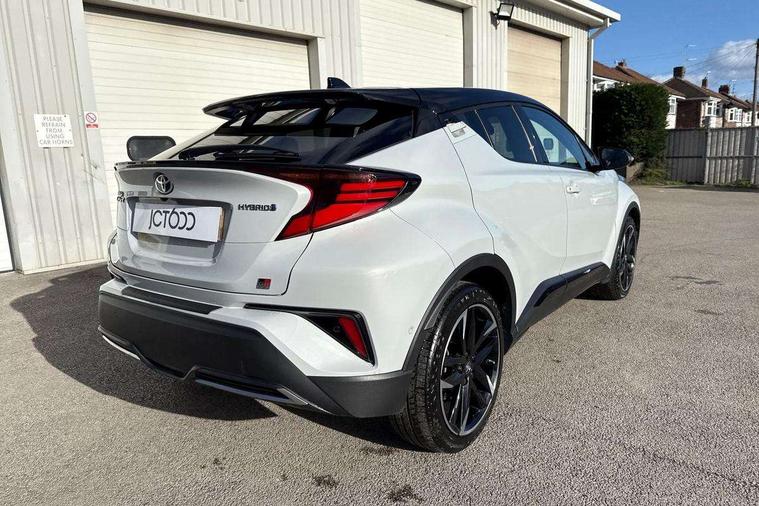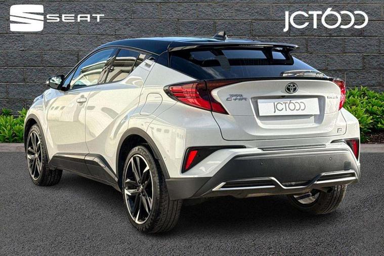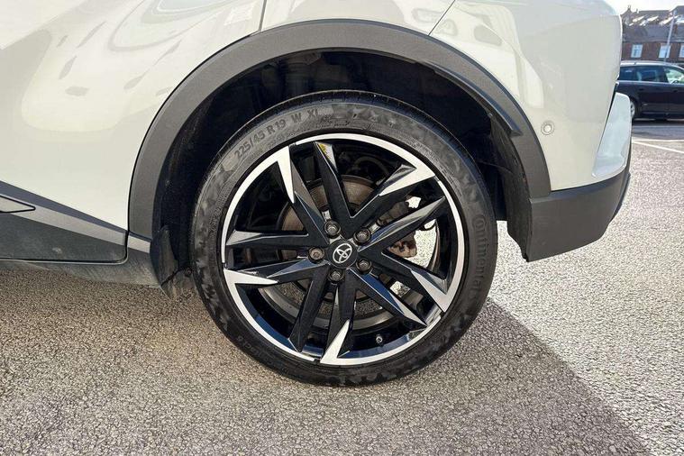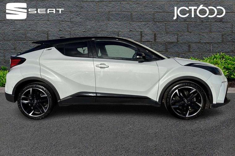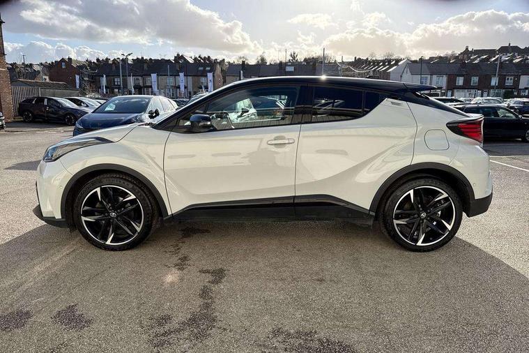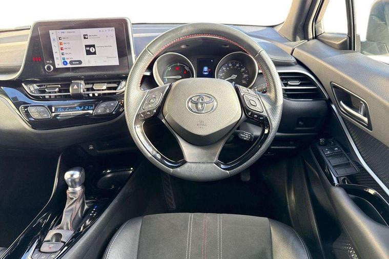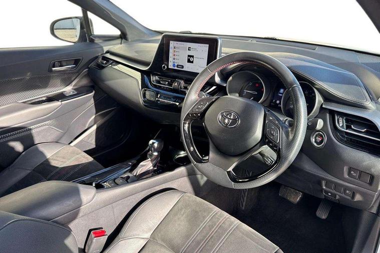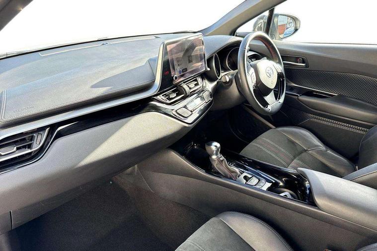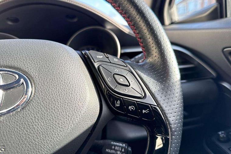 4.2" coloured TFT screen for multi-information display, Adaptive cruise control, Apple car play and Android auto, Bluetooth connectivity, E-call, Electric power steering, Hybrid system indicator, Lane departure alert with steering control, Lane trace assist, Push button tailgate release, Remote boot door release in cabin, Remote boot door release in key, Reversing camera, Road sign assist - RSA, Simple Intelligent parking assist, Smart voice assist, Touch 2 Go navigation system, Trip computer, Voice recognition, Wireless smartphone integration, Vehicle Stability Control (VSC), 6 speakers, AM/FM radio, DAB Radio (Digital Audio Broadcasting), Toyota touch 2 multimedia system with 8" display, USB connector, Wi-fi connectivity, Adaptive front light system, Adaptive LED Headlights, Anti-jam protection on power windows, Auto high beam, Auto up and down function on all power windows, Automatic headlight levelling, Automatic headlights, Automatic headlights cut-off, Black and body coloured rear bumper, Black upper front grille, Body colour door handles, Body colour door mirrors, Body coloured front bumper, Boot door release with push button, Chrome front lower bumper, Electric heated door mirrors, Follow me home headlights, Front and rear power windows, Front spoiler lip in black, Headlight cut off reminder, Honeycomb lower front grille, LED daytime running lights, LED fog lights, LED front light guide, LED High mounted stop light, LED rear brake lights, LED rear combination lights, Noise reduction layer on front windows and windscreen, Power adjustable door mirrors, Privacy glass, Rain sensor, Rear sequential indicators, Rear side wing doors, Rear spoiler, Rear tailgate, Rear window defogger, Rear window wiper, Shark fin antenna, UV-filter on driver and passenger windows, UV-filter on rear windows, Variable front intermittent wipers, 12v power outlet - front, 3 rear headrests, 3 seat bench in 2nd row, 3 spoke perforated leather steering wheel, 60/40 split folding rear seat, Adjustable rear headrests, Adjustable speed limiter switch on steering wheel, Assist grips front and centre pillar, Audio and telephone switches on steering wheel, Black front door assist grips, Blue ambient lighting on front cup holders, Blue ambient lighting on front doors, Boot light, Chrome interior door handles, Cloth upholstery, Driver and front passenger personal light, Driver and front passenger Whiplash Injury Lessening seats, Driver and passenger seatback pockets, Dual zone automatic air conditioning, Floor mats, Front cupholders, Front head restraints, Front sports seats, Glovebox with internal light, Hard tonneau cover, Heated driver and front passenger seats, Hooks for luggage holding net, Humidifying Nanoe air purifier, Illuminated entry system, Isofix attachments on outer rear seats, Leather gearshift, Light on driver sun visor, Light on passenger sun visor, Manual telescopic steering wheel, Manual tilt steering wheel, Manually height adjustable driver seat, Manually height adjustable front passenger seat, Manually reclining driver seat, Manually reclining front passenger seat, Manually sliding driver seat, Manually sliding front passenger seat, Microphone on front personal light, Mirror on driver sun visor, Mirror on passenger sun visor, Multimedia switches on steering wheel, Pollen filter, Power adjustable lumbar support on driver seat, Shopping bag hooks, Single front passenger seat, Slow opening on lower glovebox, Voice recognition switch on steering wheel, Tech with parking sensor pack - C-HR, 16 Disk front wheel brake, 3x3 point rear seatbelts, ABS+EBD+Brake assist, Electronic parking brake, Front and rear seatbelt reminder, Front passenger airbag on/off switch, Hill start assist control (HAC), Pre collision system with pedestrian detection, Pre-tensioners and force limiters, Rear door child safety locks, SRS Airbags - Driver + Front passenger, front side, front and rear curtain and driver's knee airbags, Toyota safety sense, Tyre pressure monitoring system, Tyre pressure warning system, Acoustic vehicle alert system (AVAS), Glass-breaking alarm sensors, Immobiliser, Intrusion alarm, Intrusion sensor, Motion sensor alarm, Power passenger window lock, Remote central locking, Black lower dashboard, Black upper dashboard, Piano black console, Silver deco line on upper dashboard, 19" Black machined alloy wheels, Tyre repair kit,
