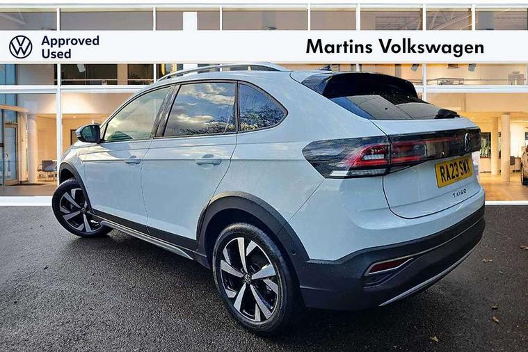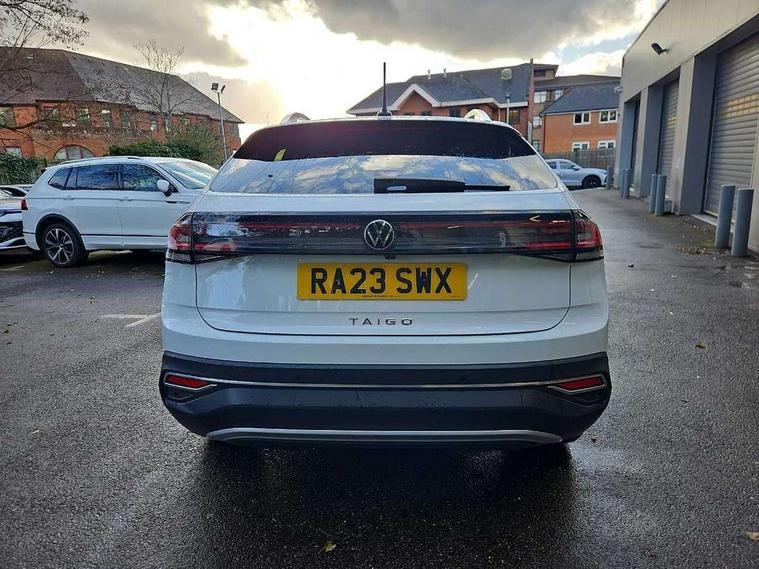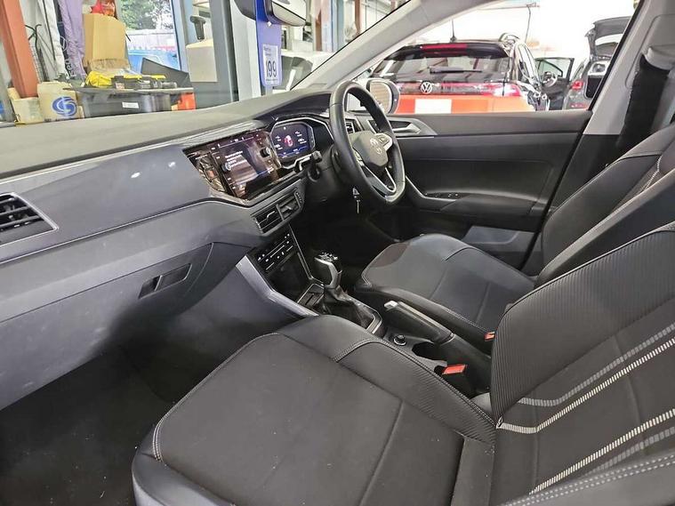 App-Connect including App-Connect Wireless, Digital cockpit pro - 10.25" high resolution TFT dash display screen with customizable menus and information, Driver alert system, e-Call (emergency call), Power Steering, Travel assist including emergency assist, Washer fluid level indicator, Wireless Charging including Bluetooth, Rear shock absorption, Start-stop system with battery regeneration (recuperation - energy recovery during braking), Digital radio reception (DAB+), Diversity antenna for FM reception, WeConnect plus, Aspherical driver's exterior mirror, Body coloured bumpers and radiator grille with chrome trim and front fog lamps with chrome bezel, Body coloured exterior mirror housings and door handles, Dual chrome twin tailpipes on left and right, Electric windows, External USB type C socket and charging sockets, LED rear combination lamp, LED third brake light, Left convex exterior mirror, Power folding adjustable/heated exterior mirrors and front passenger exterior mirror lowering function, Rear fog light on one side, reversing light on both sides, Rear side wing doors, Rear wash/wipe with intermittent wipe setting, 12V socket in centre console, 2 front reading lights, 3 rear head restraints, 3 seat bench in 2nd row, Air care climatronic air conditoning system with active combination filter and 2-zone temperature control, Ambient lighting with logo projection, Black carpets, Child seat anchor for child seat system i-Size, 2x top tether and child seat anchor in front on front passenger side, Chrome bezel for instrument cluster, vents, door handles + gear shift, Driver and front passenger seat height adjustment, Front + rear carpet mats, Front centre armrest, Front footwell illumination, Front sports comfort seats, Height and reach adjustable steering wheel, Interior ambient lighting and surround lighting, Leather trimmed gear knob, Leather wrapped multifunction steering wheel, Luggage compartment floor, Luggage compartment light, Lumbar support for driver's and front passengers seat, Single front passenger seat, Split folding backrest with centre armrest and unsplit rear seat bench, Storage compartment under front seats, Sun visors with illuminated vanity mirrors, Chrome Package - Taigo, Drivers assistance pack - Taigo, IQ.LIGHT - LED matrix headlights pack - Taigo, Light and sight pack - Taigo, 2 x 3-point seatbelts/outer rear seats with ECE label, 3-point seat belts in front with pretensioner and height adjustment, 3-point seatbelt for centre rear seat, Driver and front passenger airbags with front passenger airbag de-activation, front side and curtain airbags, Driver and front passenger safety-optimised head restraints, Electronic stability control, Extended and predictive pedestrian/ cyclist protection, Front and rear disc brakes, Front curtain and side airbags with center airbag, Hill start assist, Manual rear child locks, Single tone horn, Tyre pressure loss indicator, Anti-theft alarm system with interior monitoring, backup horn, and towing protection, Anti-theft wheel bolts, Low rolling resistance tyres,