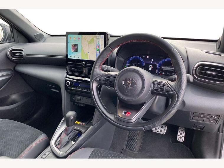 10.5" Multimedia display screen, 10.5" Toyota smart connect+ with navi multimedia system with wireless Smartphone integration incl Apple CarPlay, 12.3" Multi information display screen, Adaptive cruise control, multi info switches on steering wheel, Adjustable speed limiter, Bluetooth connectivity, Color multi-information display, Digital speedometer, Digital tachometer, Drive mode selector, Driver attention alert system, eCall emergency system, Electric power steering, Emergency driving stop system, Full range intelligent adaptive cruise control, Hybrid system indicator, Intersection turn assist, Key reminder warning, Lane trace assist, My T Connected services, Pre-collision system enhanced with emergency steering assist, Reversing camera, Road sign assist - RSA, Static guide lines on reversing camera, Telephone switch on steering wheel, Wireless Mobile Phone Charger, Steering assisted vehicle stability control, 6 speakers, DAB Digital radio, Front USB Type-C connector, Front USB-C device charger, 3rd brake light, Acoustic windscreen glass, Anti-jam protection on power windows, Auto dimming rear view mirror, Auto high beam [AHB] with on/off switch, Auto intermittent windscreen wipers, Automatic headlights, Automatic headlights cut-off, Black door moulding, Black lower front grille, Black protection moulding on side doors, Black rear bumper with diffuser, Black rear under run, Black roof rails, Black wheel arch mouldings, Body colour door handles, Body colour front bumper, Electric adjustable heated door mirrors, Follow me home headlights, Front and rear electric windows with auto up/down function, Gloss black upper front grille, GR Sport meshed lower front grille, GR Sport meshed upper front grille, GR sport scuff plates, Headlight cut off reminder, Indicators integrated on door mirrors, Intermittent rear wiper, LED daytime running lights guide, LED front fog lights, LED front light guide, LED Indicators, LED projector headlights, LED rear lights with sequential indicators, Manual headlight levelling, Noise reduction layer on windscreen, Privacy glass, Rain sensor, Rear side wing doors, Rear spoiler, Rear window defogger, Shark fin antenna, 12v power outlet - front, 12V power point in boot, 2x Rear coat hooks, 3 seat bench in 2nd row, 3 Spoke GR Sport leather steering wheel, 40/60 split deckboard, 40:20:40 split folding rear bench seat, Adjustable rear headrests, Adjustable speed limiter switch on steering wheel, Black roof lining, Boot light, Driver and front passenger personal lights, Driver and front passenger Whiplash injury Lesseing seats, Driver and passenger seatback pockets, Dual zone automatic air conditioning, Fabric door trim, Front console box, Front cup holders, Front door pockets, Front head restraints, Front sport seats, Front/rear assist grips, Gear shift indicator, GR sport floor mats, Heated driver and passenger seats, Height adjustable driver's seat, Height adjustable front passenger seat, Hooks for luggage holding belts, ISOFIX child restraint system, Lane departure alert switch on steering control, Leather gearshift, LED centre room light, Light on driver and passenger sun visor, Manual telescopic and tilting steering wheel, Mirror on driver and passenger sun visor, Nanoe-X air purifier, Pollen air filter, Power adjustable lumbar support on driver seat, Rear cup holders, Rear door pockets, Rear head restraints, Remote air-conditioning system, Single compartment glovebox, Single front passenger seat, Soft tonneau cover, Storage box under boot floor, Ultra suede cloth upholstery, Voice recognition switch on steering wheel, White ambient lighting in centre console, White ambient lighting in footwell, White ambient lighting on front doors, 3x3 point rear seat belts, ABS+EBD+Brake assist, Driver and passenger central airbags, Driver and passenger front airbags, Driver and passenger side airbags, Electronic parking brake, Emergency brake light system (EBS), Front seat belt reminder, Hill start assist control (HAC), Passenger airbag on/off switch, Pre-collision system with pedestrian and cyclist detection, Rear door child safety locks, Rear passenger side airbags, Rear seat belt reminder, Traction control, Tyre pressure warning system, Immobiliser, Intrusion alarm, Keyless smart entry with push button start, Power door locks, Power passenger window lock, Remote door lock, Tyre repair kit,