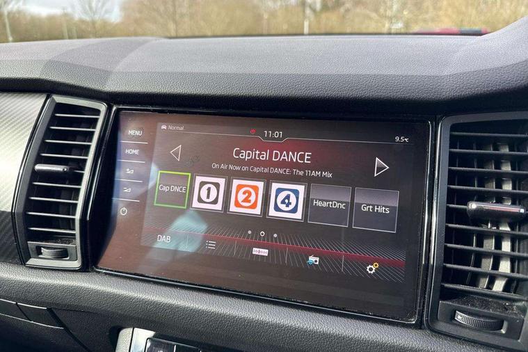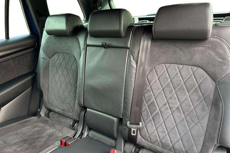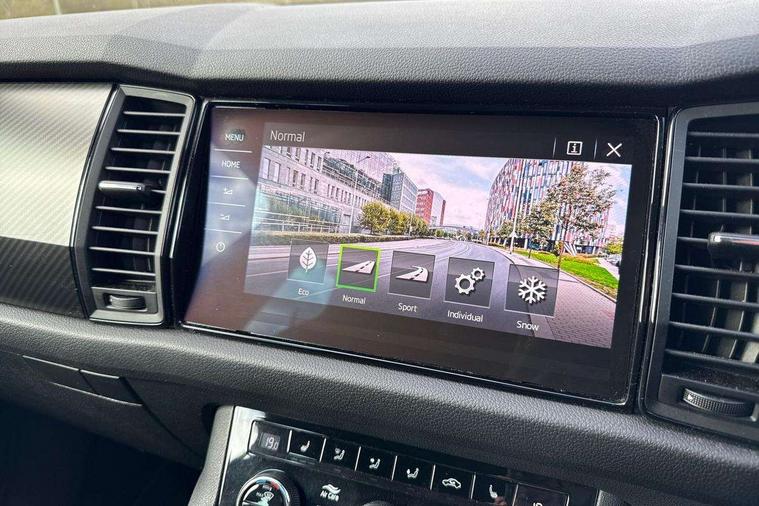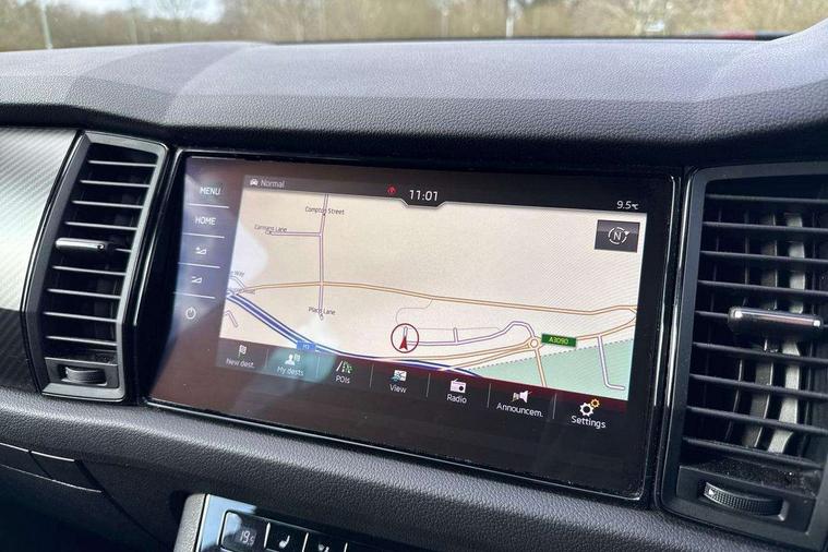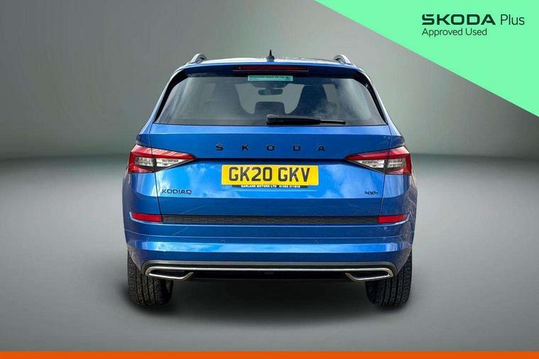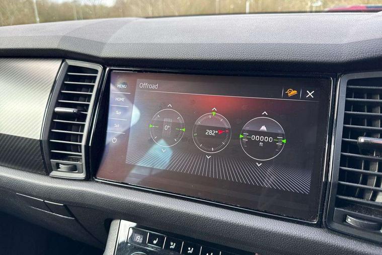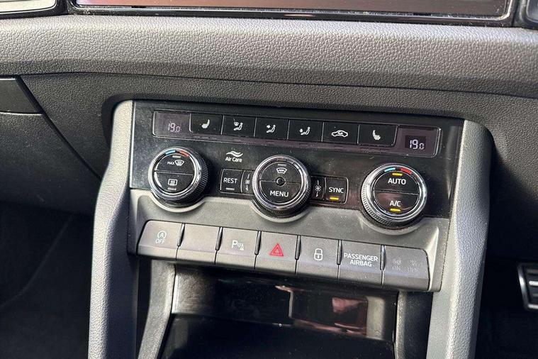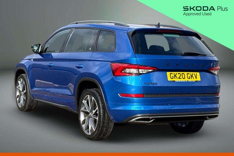 Bluetooth system, Colour multifunction trip computer, Columbus satellite navigation with 9.2" touch screen and integrated Wi-Fi + WLAN, Digital voice enhancement, ECO Stop/start function, Exterior temperature indicator, Map care, Progressive power assisted steering, SmartLink plus, Speed limiter, Sports dials, Bolero Radio, DAB Digital radio, DVD System, USB and SD card connectivity, Aero front windscreen wipers with intermittent function, Aero rear window wiper, Auto dimming rear view mirror, Automatic activation of hazard warning lights, Black electric window control buttons, Black roof rails and door mirrors with radiator grille and window surrounds, Black wheel arch surrounds, Body colour bumpers, Body colour door handles, Chrome exhaust tailpipe, Electric front and rear windows, Electrically adjustable/heated/foldable and auto dimming door mirrors with memory function, Front door steps with SportLine logo, Full LED Headlights with adaptive front light system and LED daytime running lights, Headlight washers, Heated rear window, LED front fog lights with static cornering light function, LED rear fog light, LED third brake light in rear spoiler, Light assistant (coming home/tunnel light), Rain and light sensors, Rear diffuser, Rear spoiler, Safety reflectors on front and rear doors, Sportline badge on front fender, Sports front and rear bumpers, Sunset privacy glass, Tailgate lettering in Black, Without engine designation, 12V socket in boot, 2 rails with 2 hooks including 4 hooks for net programme, 4 foldable roof handles with rear coat hooks, 4 lashing points on luggage floor, 60:40 foldable rear seat with sliding adjustment and backrest angle adjustment, Alcantara door panels, Alcantara upholstery with Sports seats with silver stitching, Aluminium pedals, Black roof headlining, Bottle holders in door panel in the 1.5 litre front and 1 litre rear, Cargo storage compartments, Centre console with open storage box, cup holder and 12V socket, Chrome headlight control button, Chrome interior door handles, Coat hooks on B pillar, Covered storage compartment on driver side, Front and rear door armrest with black adductor trim, Front centre armrest with storage compartment, Front courtesy lights, Gear shift lever with chrome frame and black gloss insert, Height adjustable front headrests, Height adjustable rear headrests, Illuminated and cooled glovebox, Illuminated luggage compartment, Isofix system on outer rear seats, Manually adjustable steering column, Net programme in boot (1x horizontal Net, 2x vertical Nets), Overhead glasses storage compartment, Pollen filter, Rear centre armrest with cupholders, Roll up luggage compartment cover with intermediate position, Small Bags on the inner sides of the front backrests, Small pockets on the inner side of the front backrests, Storage compartment in lower middle Instrument panel, illuminated with closing, Three rear height adjustable headrests, Ticket holder on A Pillar, Umbrella in door panel, LED Interior Light pack - Kodiaq Scout/Sport Line/VRS/Laurin + Klement, Auto door release and activation of warning lights, Driver and passenger airbags, Electronic parking brake with hill hold control, Emergency rear braking signal, ESC (incl. ABS+MSR+ASR+EDS+HBA+DSR+RBS+MKB), Front and rear three point safety belt on all seats, Front assist includes AEB city/urban, Front side airbags, Fuel cut off safety device, Head and knee airbags, Passenger airbag deactivate switch, Rear disc brakes, Safety vest holder in door, Seat belt reminder for all seats, Tailgate unlocking from outside, Two tone horn, Tyre pressure monitor, Warning lights in front doors, Alarm with interior monitoring and tilt sensor with safe function, Immobiliser, Keyless entry and start system (KESSY), Remote central locking, Carbon finish dashboard and door inserts, Chrome air vent surrounds, Sportline plaque on the dashboard, 20" Vega Anthracite alloy wheels with anti-theft wheel bolts,