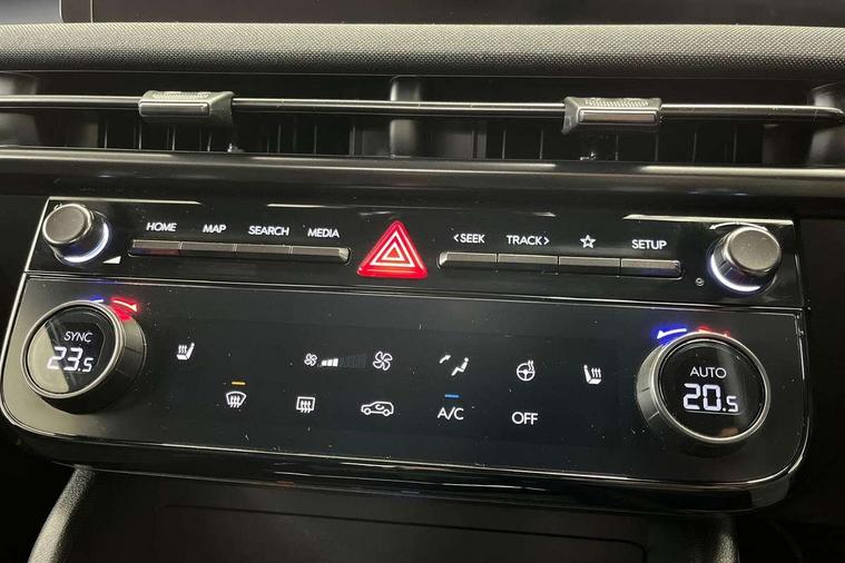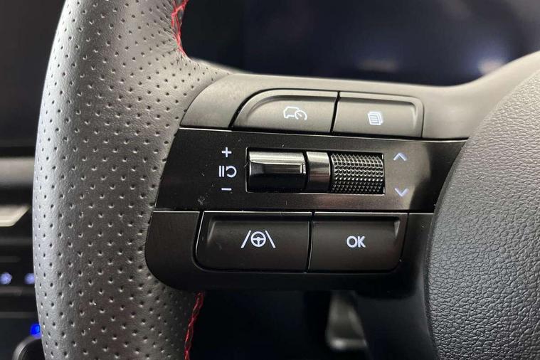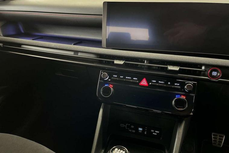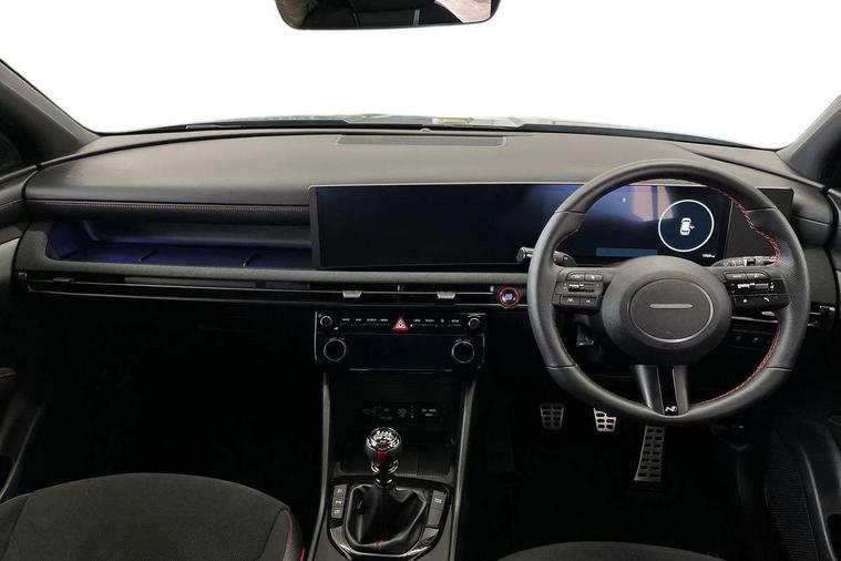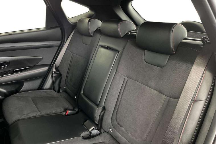 12.3" LCD display with driver's supervision instrument cluster, 12.3" widescreen navigation with bluelink and mapcare/Google POI, Bluetooth system, Cruise control, Digital clock, Drive mode selector, Driver attention warning, E-call, Emergency stop signalling system, Forward Collision Avoidance Assist (FCA) - Car, Pedestrian and Cycle, Forward Collision Avoidance Assist Junction Turning (FCAJX), Front and rear parking sensors, Hyundai road side assistance, Intelligent speed limit assist III, Lane follow assist, Lane keep assist, Over the air updates(OTA), PAS, Rear camera and guidance parking system, Rev counter, Smart power tailgate, Tailgate open warning light, Trip computer, Trip odometer, Voice recognition, Water temperature gauge, Windscreen washer fluid sensor and warning indicator, Wireless Apple CarPlay/Android Auto, Wireless phone charging pad, 2 front and 2 rear speakers with 2 tweeters, 2 front and 2 rear USB-C ports, DAB Digital radio, Steering wheel mounted audio/phone controls, Adjustable intermittent front windscreen wipers with aero wiper blade, Auto dimming electrochrome rear view mirror, Automatic defog system, Automatic headlights with dusk sensor, Automatic windscreen wipers with rain sensor, Body colour bumpers, Body colour door mirrors with integrated indicators, Body colour exterior door handles, Body coloured wheel arches, Electrically adjustable, heated and power folding door mirrors, Follow me home headlights, Front and rear electric windows with anti-trap mechanism and one touch control, Front fog lights, Glossy black bumper mouldings, LED 3rd brake light, LED daytime running lights, LED Headlights, LED rear lights, Positioning Lights - LED, Privacy glass - Rear windows and tailgate, Rear side wing doors, Rear wash/wipe with intermittent wipe setting, Roof rails, Soft touch rear door paneling, Tinted glass with windscreen shade band, Trailer stability assist, 12V power outlets in front console and luggage compartment, 3 seat bench in 2nd row, 40/20/40 split folding rear seat, 64 colours interior ambient lighting, Adjustable head restraints (Up and down), Cupholders in rear armrest, Door courtesy lights, Driver and passenger sunvisors with illuminated LED vanity mirrors, Driver's seat manual height adjust, Dual zone climate control, Front and rear door pockets, Front armrest with storage box, Front centre console and door bottle holders, Heated front seats, Heated steering wheel, Height/reach adjustable steering column, Illuminated/air conditioned glove compartment, ISOFIX child seat anchorage points attached on outer rear seats, Leather wrapped steering wheel and gear knob, Leather/faux textile suede upholstery, LED interior lighting, Luggage compartment lighting, Luggage cover, Luggage hooks, Luggage net, Manual height adjustable front passenger seat, Map and reading lights, Metal pedals, Rear seat remote folding function, Rear side window sunblind, Reclining rear seats, Retractable load cover, Single front passenger seat, Sunglasses holder, Touch sensitive climate controls with temperature dials, TUCSON branded metal door scuff plate, Underfloor boot compartment, N Line design package - Tucson, N Line interior design package - Tucson, Trailer wiring package - Tucson, 3x3 point rear seatbelts, Active bonnet, Airbag - Front, front side, curtain and centre front airbags, Anti-lock brake system (ABS), Brake assist function, Childproof rear door locks, Curtain airbag roll over sensor, Downhill brake control, Electric parking brake, Electronic stability control, Front and rear seatbelt reminder, Front passenger airbag deactivation switch, Front seatbelt pretensioners, Hill start assist control (HAC), Multi-Collision braking, Outer rear seatbelt height adjustment, Seatbelt height adjustment for front seats, Traction control, Tyre pressure monitoring system with individual tyre pressure display - TPMS, Vehicle stability management, Deadlocks, Immobiliser, Locking wheel nuts, Remote control central locking, Smart key with keyless entry and engine start/stop button, Speed sensitive auto door locking, Thatcham category 1 alarm, 19" Alloy wheels, Tyre repair kit,