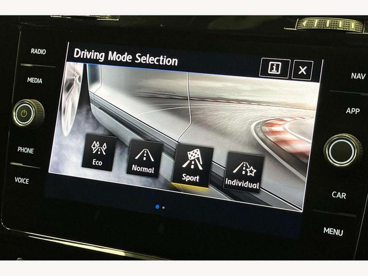 'Lights On' Reminder warning buzzer, 8" touch screen, Adaptive Cruise Control with pedestrian detection and speed limiter, App-Connect, Bluetooth hands free telephone connection, Brake pad wear indicator warning light, Driver alert system, Driver profile selection, Exterior temperature gauge, Front assistant collision mitigation, Instrument cluster in white, Multifunction computer, PAS - speed related, Rev counter, Trip and service interval display, Ultrasonic front and rear optical and audible parking sensors, Warning buzzer and light for front seatbelts unfastened, Lowered sports suspension, XDS electronic differential lock, CD/MP3/WMA, USB and SD card reader, aux-in, Composition media system, DAB Digital radio, Auto dimming rear view mirror, Automatic coming/leaving home lighting function, Automatic headlights, Black front air intake and radiator grille with chrome insert, Black sports rear diffuser, Body colour bumpers, Body colour door handles, Body colour door mirrors, Body colour rear roof spoiler, Chrome grille surround, Chrome trapezoidal exhaust, Electric front windows, Electric rear windows, Electrically adjustable and heated door mirrors, Heat insulated tinted glass 65% light absorbing from B pillar back, Heated rear windscreen, LED daytime running lights, LED rear lights, Rain sensor, Rear windscreen washer and wiper with interval delay, Stainless steel door sill protection, 12V socket in luggage compartment, 3 rear headrests, 3 spoke steering wheel, 60/40 split folding rear seat, Bag hook in luggage compartment, Black headlining, Boot lashing points, Cooled glovebox, Courtesy light delay, Cover for storage compartment in centre, Dust/pollen filter, Front + rear carpet mats, Front centre armrest with storage box and rear air vents, Front passenger seat height adjust, Front reading lights, Front seat back storage pockets, Grab handles, Height/reach adjust steering wheel, Illuminated vanity mirrors, Isofix preparation for 2 rear child seats, Leather gear knob and handbrake grip, Load through provision with rear centre armrest and cupholders x2, Luggage compartment cover, Luggage compartment lighting, Multifunction leather steering wheel with grey stitching leather trimmed gear knob including paddle shift, Overhead storage box, Stainless steel pedals, Storage box in luggage compartment, Storage compartments in doors, Sun visors, Variable boot floor, height adjustable and removable, Ambient lighting pack - Golf, Mirror pack - Golf, 3 point height adj front seatbelts + pretensioners, 3 rear 3 point seatbelts, ABS, Automatic post collision braking, Child locks on rear doors, Driver/Front Passenger airbags, Driver/Passenger whiplash optimised head restraints, Drivers knee airbag, Electronic parking brake with auto hold, ESP with EDL + ASR, Front and rear curtain airbags, Front passenger airbag deactivation, Front side airbags, Pre crash system, Tyre pressure monitor, Alarm with interior protection, Electronic engine immobiliser, Remote central locking with 2 remote folding keys, Chrome-plated light switch surround, Dark Diamond decorative inserts in dash and door panels, Piano black centre console with aluminium inlay, Steel space saver spare wheel,