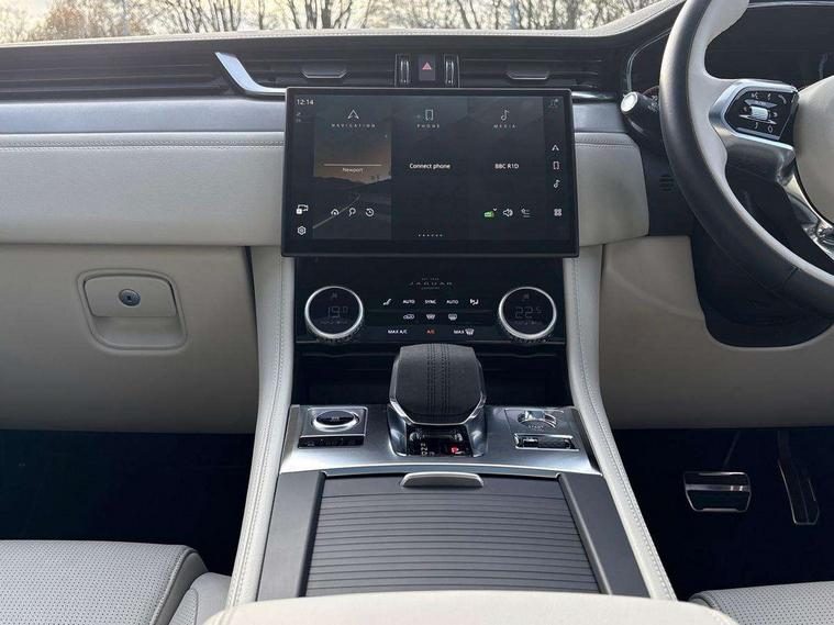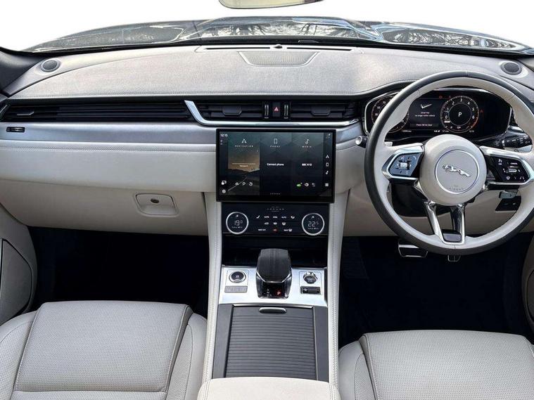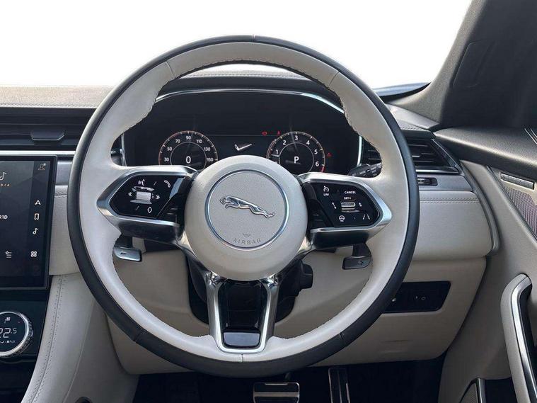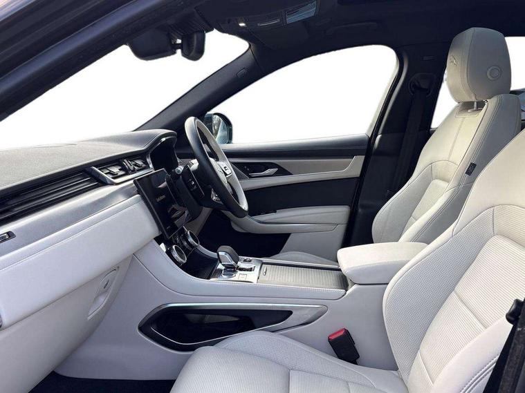 11.4" touchscreen, Android Auto, Apple car play, Blind spot assist, Bluetooth connectivity, Clear exit monitor, Driver alert system, Driver condition monitor, eCall emergency call system, Eco driving style assistant, Electric power assisted steering, InControl remote, Interactive driver display digital with 12" TFT display, Jaguar Toggle shift selector, Lane departure warning system, Lane keep assist, Outside temperature gauge, Personalisation profile management, Pivi pro connected navigation system with app interface and media storage, Pro services and wifi hotspot, Push button starter, Rear traffic monitor, Service interval indicator, Speed proportional steering, Start up sequence with movement in dials and lighting, Traffic sign recognition with adaptive speed limiter, Trip computer, Voice control system, Wireless device charging, 7 kW onboard charger, 8 speed automatic transmission, AC/DC charging, Adaptive dynamics, All terrain progress control, All Wheel Drive (AWD), Configurable dynamics, Home charging cable, Open differential with torque vectoring by braking, Public charging cable, AM/FM radio, Bluetooth streaming, DAB Radio (Digital Audio Broadcasting), Dynamic volume control, InControl apps, InControl protect, iPod integration, 3 flash lane change indicators, AHBA and animated directional indicators, Approach Illumination, Auto dimming rear view mirror, Automatic headlights, Electric heated/power fold memory door mirrors with approach lights and auto dimming driver side, Electric windows with one touch open/close and anti trap, F-Pace and R Dynamic badge, Green tinted glass, Heated front windscreen + heated washer jets, Heated rear window with timer, Jaguar script and leaper, LED High level third brake light, LED tail lights, Metal load space scuff plates, Non acoustic front windscreen, P400e AWD badge, Privacy glass (rear side windows and rear screen), R Dynamic badge on side door, Rain sensor windscreen wipers, Rear fog lights, Rear metal tread plates, Rear side wing doors, Rear wiper, Trailer stability assist, Variable front intermittent wipers, 12V power point front, 3 rear headrests, 3 seat bench in 2nd row, Additional power sockets - Two additional USB sockets in rear centre console and one 12V socket in trunk, Air distribution speed, Bright metal foot pedals, Centre armrest console, Centre console with side storage, Configurable cabin lighting, Deletion loadspace storage rails, Door sill tread plates, Fold flat front seats, Front centre armrest with storage compartment, Front door storage space, Glovebox finisher with jaguar script, Heated steering wheel, Hooks in loadspace, Illuminated glovebox, Interior front door handles with separate locking switches, ISOFIX on outer rear seats, Jaguar sense, Leather steering wheel, Luggage tie downs in loadspace, Mist sensing, Multifunction steering wheel, Overhead lighting console, Overhead stowage for sunglasses, Passive front head restraints, Premium carpet mats, Rear air vents, Rear armrest with twin cupholders, Rear centre headrest, Rear door storage space, Reversible boot floor, Satin chrome gearshift paddles, Shopping bag hook, Single front passenger seat, Sunvisors with illuminated vanity mirrors, Twin front cupholders with cover, Online Pack with data plan - F-Pace, 380mm front brakes and 325mm rear brakes, 3x3 point rear seatbelts, ABS, All surface progress control (ASPC), Brake pad warning light, DSC - Dynamic Stability Control, Electric parking brake (EPB), Emergency brake assist, Front airbags with passenger seat occupant detector, Front and rear seatbelt reminder, Front side airbags, Full length side window curtain airbag, Hill launch assist, Power operated child locks, Traction control, Tyre pressure monitoring system, Immobiliser, Keyless entry, Keyless start, Locking wheel nuts, Perimeter alarm, Remote central locking, Valet mode,