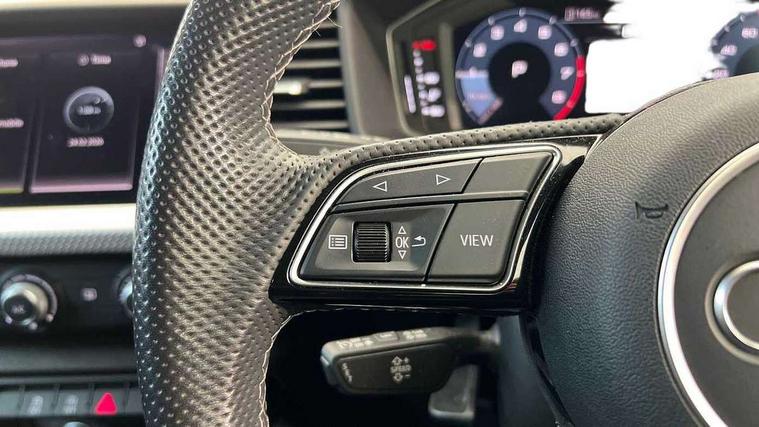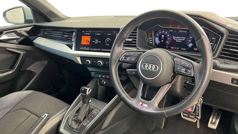 10.25" Digital instrument cluster display classis style instrument dials + speed, odometer, time, outside temperature, telephone menu + fuel level warning, Audi connect safety emergency and service including E-call, Audi drive select - power steering assistance + engine + gear shift 3 preset modes (auto, dynamic, efficiency and an Individual mode), Audi smartphone interface with connect compatible smartphone via USB directly MMI display + Nav, music, third party apps controlled via MMI controller, Automatic start/stop system, Bluetooth interface, Cruise control, Driver's information system, Electromechanical power steering, Lane departure warning system, Rear parking sensor, Service interval indicator, Speed limiter, Voice control system, Washer fluid level indicator, Sports suspension, 1 x SDXC card reader, 1 x USB type C and 1 USB type A charging points, DAB Digital radio, MMI radio plus with 8.8" colour MMI display screen and MMI touch, Auto dimming rear view mirror, Body coloured door mirrors, Door sills with aluminium inlays and S Line logo, Electric front and rear windows, Electrically adjustable, heated, folding door mirrors with integrated LED side indicator, Front side air inlets in grained matt black and C frame in titanium black, Heat insulating glass windscreen and side windows, Heated rear windscreen, LED headlights with LED rear lights + dynamic rear indicators + headlight adjustment and high beam, turning light + LED daytime running lights, Radiator grille and rear diffuser in matt titanium black, Radiator protective grille frame in matt aluminium silver, Rain and light sensors, Rear fog lights, Rear wiper, S line badges on front wings, Side front spoiler lips in grained matt black, 12V socket in centre console with two cup holders, 3 rear seats with headrests, 40:60 Split folding rear seat or folded fully, Black cloth headlining, Driver and passenger seat with manual height adjust with forward and backwards adjustment, Front and rear black floor mats with contrast stitching in fine silver, Front head restraints, Height and reach adjustable steering wheel, ISOFIX child seat mounting for front passenger and outer rear seats including top tether attachment point of outer rear seats, Leather gear knob with aluminium trim, Luggage compartment light with front and rear reading lights, Manually adjustable lumbar support in front seats, Stainless steel pedals, LED interior lighting pack - A1, Luggage compartment pack - A1, S line exterior styling pack - A1 Sportback, 3x3 point rear seatbelts, Audi pre-sense front with pedestrain and cyclist recognition, Brake assist function, Driver and front passenger airbag with front side and head airbags, Electronic Stability Control including ABS, EBD, ASR and EDL, Front and rear seatbelt reminder, Front passenger airbag deactivation switch, Hill hold assist, Seatbelt height adjustment for front seats, Seatbelt monitoring, Tyre pressure warning light, Warning triangle and first aid kit, Anti theft alarm, Anti theft wheel bolts and loose wheel warning, Immobiliser, Remote central locking with 2 foldaway keys, Aluminium trim for control switches, air vents and digital instrument cluster, Silver grey inlays polygon structure in diamond paint finish, Structured grey accent areas including air vents, door handle recesses and centre console in quartz paint finish,