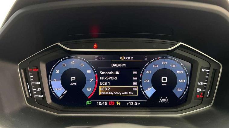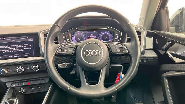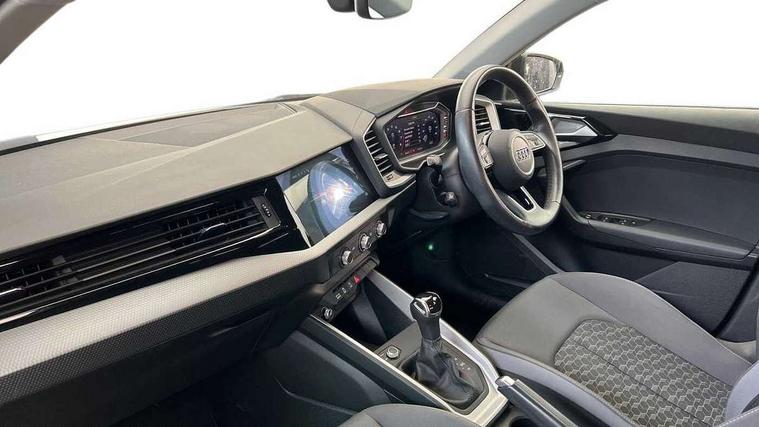 10.25" Digital instrument cluster display classis style instrument dials + speed, odometer, time, outside temperature, telephone menu + fuel level warning, Audi connect safety emergency and service including E-call, Audi drive select - power steering assistance + engine + gear shift 3 preset modes (auto, dynamic, efficiency and an Individual mode), Audi smartphone interface with connect compatible smartphone via USB directly MMI display + Nav, music, third party apps controlled via MMI controller, Automatic start/stop system, Bluetooth interface, Cruise control, Driver's information system, Electromechanical power steering, Lane departure warning system, Service interval indicator, Speed limiter, Voice control system, Washer fluid level indicator, Dynamic suspension, 1 x SDXC card reader, 2 x USB type C connection points, DAB Digital radio, MMI radio plus with 8.8" colour MMI display screen and MMI touch, Auto dimming rear view mirror, Body coloured bumpers, Body coloured door mirrors, Electric front and rear windows, Electrically adjustable, heated, folding door mirrors with integrated LED side indicator, Front side air inlets in grained matt black and C frame in titanium black, Heat insulating glass windscreen and side windows, Heated rear windscreen, LED headlights with LED rear lights + dynamic rear indicators + headlight adjustment and high beam, turning light + LED daytime running lights, Radiator grille and rear diffuser in matt titanium black, Radiator protective grille frame in matt aluminium silver, Rain and light sensors, Rear fog lights, Rear wiper, Scandium grey tailpipe trim, Side front spoiler lips in grained matt black, 12V socket in centre console with two cup holders, 3 rear seats with headrests, 40:60 Split folding rear seat or folded fully, Door sill trims with aluminium inlay, Driver and passenger seat with manual height adjust with forward and backwards adjustment, Front head restraints, Front/rear floor mats, Height and reach adjustable steering wheel, ISOFIX child seat mounting for front passenger and outer rear seats including top tether attachment point of outer rear seats, Leather gear knob with aluminium trim, Leatherette handbrake grip, Luggage compartment light with front and rear reading lights, Manually adjustable lumbar support in front seats, Novum cloth upholstery with front sport seats, Titanium grey cloth headlining, Luggage compartment pack - A1, 3x3 point rear seatbelts, Audi pre-sense front with pedestrain and cyclist recognition, Brake assist function, Driver and front passenger airbag with front side and head airbags, Electronic Stability Control including ABS, EBD, ASR and EDL, Front passenger airbag deactivation switch, Hill hold assist, Seatbelt height adjustment for front seats, Seatbelt monitoring, Tyre pressure warning light, Warning triangle and first aid kit, Anti theft alarm, Anti theft wheel bolts and loose wheel warning, Immobiliser, Remote central locking with 2 foldaway keys, Aluminium trim for control switches, air vents and digital instrument cluster, Silver grey accent areas including air vents, door handle recesses and centre console in diamond paint finish, Slate grey inlays polygon structure in fine paint finish,