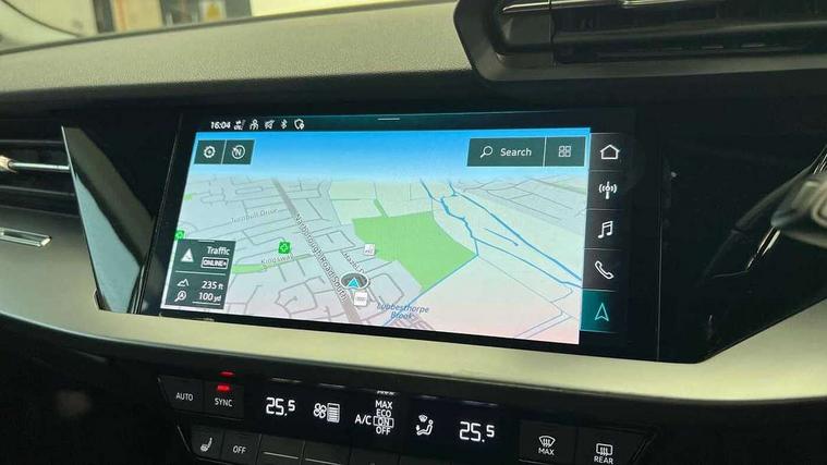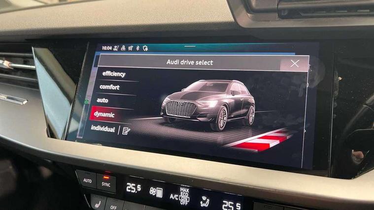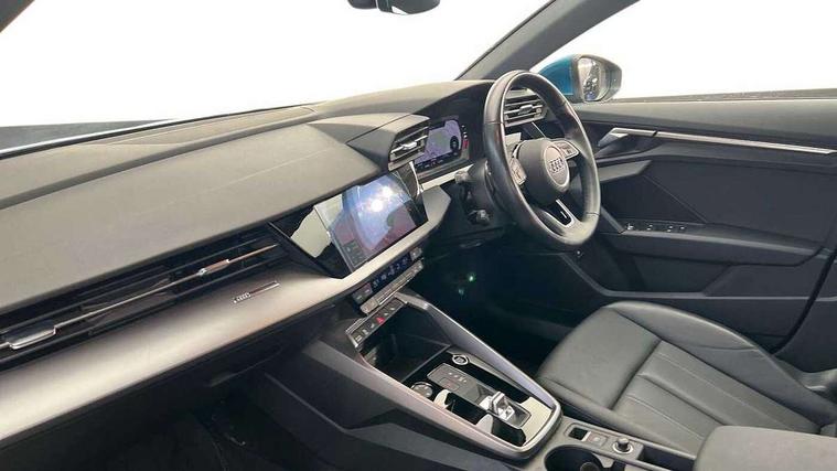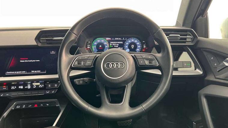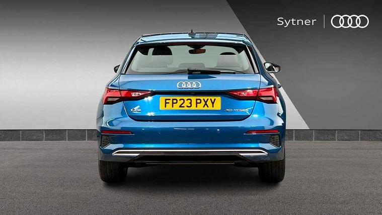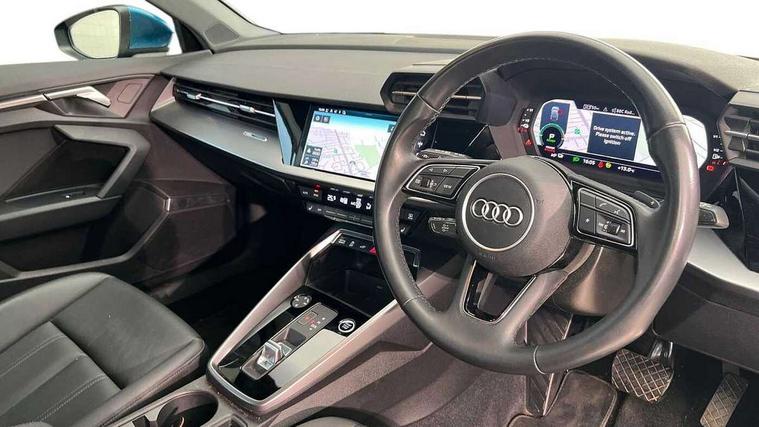 Audi drive select (Auto, Comfort, Dynamic, Efficiency and Individual), Audi smartphone interface, Audi Virtual Cockpit - 10.25" digital and colour instrument cluster, Automatic start/stop system with recuperation, Bluetooth interface, Camera based traffic sign recognition, Collision avoidance assistant, e-Call (emergency call), Electromechanical power speed sensitive steering, Lane departure warning system, MMI Navigation Plus with high resolution 10.1" colour touch screen display, Service indicator, Trip computer, Voice control system with natural language interaction, 3 pin 10 amp domestic charging cable, 3.6 kw On-board charger, Standard suspension, Type 2 mode 3 32 amp charging cable, Type 2 socket for AC charging, 2xUSB-C connection with data and charging functions, 6 passive loudspeakers, DAB Digital radio, 3rd brake light, Acoustic glass windscreen, Aluminium window trim, Auto dimming frameless rear view mirror, Body colour exterior mirrors, Body colour roof spoiler, Electrically adjustable/heated/folding/auto dimming door mirrors with integrated LED indications + kerb view function for passenger side, Front electric windows, LED daytime running lights, LED headlights and halogen rear lights, Light and rain sensors, Rear electric windows, Rear side wing doors, Rear window, rear door windows and rear side windows in clear glass, Rear wiper, 12V socket and storage compartment in front centre console, 3 seat bench in 2nd row, 3 spoke leather multifunction steering wheel with paddle shift, 4 way electrically adjustable lumbar support for driver and front passenger, 60/40 split folding rear seat bench, Dual zone electronic climate control, Front and rear headrests, Front centre armrest, Front door sill trims with aluminium inlay, Front/rear floor mats, Height and reach adjustable steering wheel, Interior lighting - Front and rear roof module including reading lights, glove compartment light and right hand side, Interior lighting - glove compartment light and right hand side, Luggage compartment floor covering, Manual boot compartment lid, Manually adjustable front seats, Routine cloth upholstery with front sports seats, Seat side bolsters, Single front passenger seat, Steel grey cloth headlining, Aluminium interior elements pack - A3 Sportback, LED interior lighting pack - A3 Sportback, Sport styling pack - A3 Sportback, 3x3 point rear seat belts, Driver and front passenger airbag with passenger airbag deactivation, Electronic Stabilisation Control (ESC) including ABS, ASR and EDL, First aid kit with warning triangle and 2 safety vests, Front side airbags with head airbags and interaction airbag, Pre-sense front with pedestrian and cyclist detection, Seatbelt monitoring, Tyre pressure loss indicator, Anti theft alarm, Anti-theft wheel bolts, Electronically operated child lock, Immobiliser, Remote control central locking, Inlays with silk effect paint in platinum grey, Tool kit, Tyre repair kit,