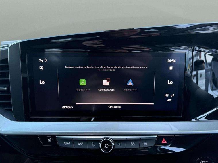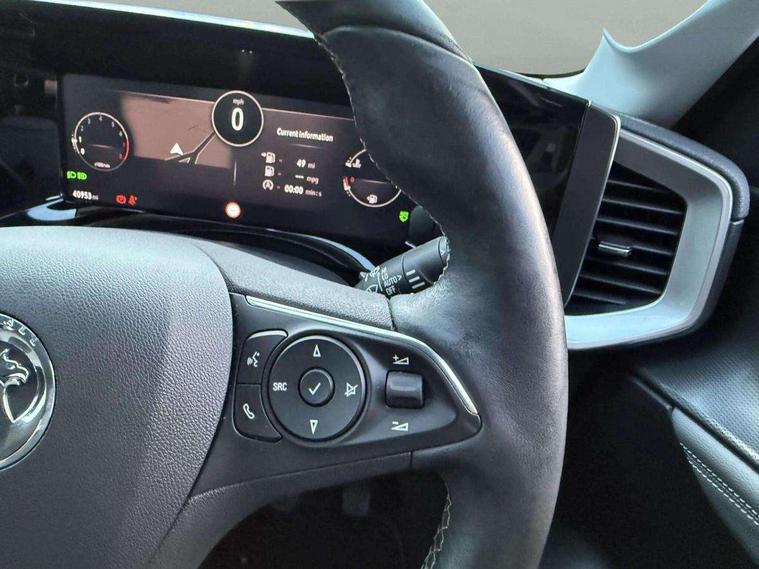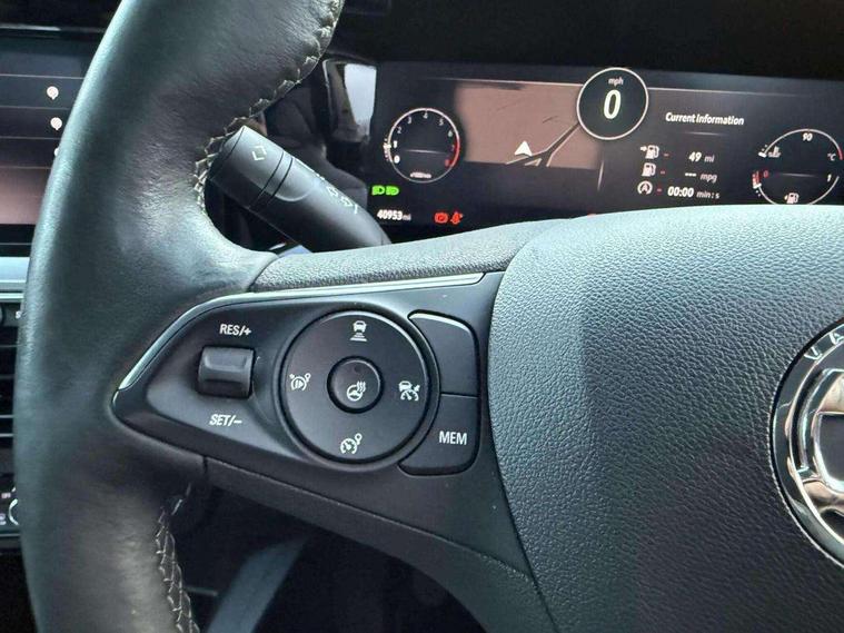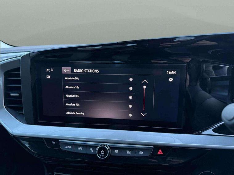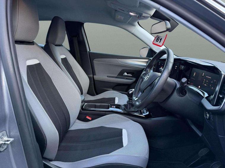 Automatic adaptive cruise control, Driver drowsiness alert system, Engine start/stop button, Front and rear parking distance sensors, Front camera system, Lane keep assist system (LAS) with Lane departure warning system (LDWS), Lights on audible warning, Multi function trip computer, Panoramic rear view camera, Power assisted speed sensitive steering, Side blind spot alert and flank guard, Smartphone integration compatible with Apple CarPlay and Android Auto, Speed sign recognition, Start/stop system, Vauxhall connect, 6 speed manual transmission, Chassis drive line front wheel drive, Electronic fuel system, Front chassis equipment, Rear chassis equipment, Standard chassis suspension system ride handling, Bluetooth A2DP audio streaming function (Advanced audio distribuition profile), Flexible Roof Mounted Radio Aerial, Front USB connection, Mobile phone portal - bluetooth connect, vehicle microphone, handsfree calls, SMS read out and reply, phone book access, Multimedia Navi pro infotainment with satellite nav, 10" colour touchscreen, 6 speakers, DAB radio, 12" instrument panel, Apple carplay/Android auto, Steering wheel mounted controls, Two rear USB sockets, Adaptive brake lights, Automatic lighting control with tunnel detection, Automatically dimming anti dazzle rear view mirror, Black door mirror housings, Black rear spoiler, Body colour door handles, Body colour front and rear bumpers, Chrome effect skid plates, Electrically adjustable, heated and folding door mirrors, Hazard warning lights, Heated rear window+rear wash/wipe, High beam assist, LED daytime running lights, LED front fog lamps, LED Headlights, LED side repeat indicators, LED tail lights, Manual headlamp level control, Rear foglight, Rear wiper, Reversing light, Solar heat absorbing windscreen and windows, Two speed rain-sensitive windscreen wipers with variable intermittent wipe, Windscreen and side window demist vents, 12V Accessory socket, 3 spoke flat bottomed leather steering wheel with satin chrome bezel, 3 stages driver and co driver heated seats, 4 speed fan with illuminated controls, 6 way manual adjustable driver fore/aft, up/down with reclining seatback, 6 way manual adjustable front passenger fore/aft, up/down with reclining seatback, Air recirculation system, Cabin particulate filter - removes dust, airborne particles and pollen, Centre console with two cup holders at front and one in rear, Chrome effect interior door handles, Cloth / Artificial leather upholstery, Door pockets with two litre capacity, Driver and passenger seat pocket, Driver and passenger sun visors with vanity mirror, Electronic climate control (ECC), Four adjustable facia vents, Four load restraint lashing eyes, Front centre armrest with storage, Front map reading lights, Fully carpeted load area, Heated steering wheel, Height adjustable front/rear head restraints, Illuminated load area, Interior courtesy light, Interior tailgate handle, Luggage compartment cover, Luggage compartment lighting, Reach + rake adjustable steering column, Twin gas assisted tailgate struts, 2x Isofix child seat fitting on outer rear seats, 3x3 point rear seat belts, Anti-lock braking system (ABS), Automatic emergency city braking, Child proof locks on rear doors, Cornering brake control, Deactivation switch for front passenger front and side impact airbags, Drag torque control, Driver and front passenger airbags, front seat side impact airbags, full size curtain airbags, Electronic brake force distribution, Electronic Stability Programme (ESP), Emergency brake assist, Forward collision alert at all speed, Hill start assist, Inertia reel lap and diagonal seatbelts for all seats, Seatbelt unfastened audible warning and warning light, Straight line stability control, Traction control, Tyre pressure monitoring system, Electronically protected audio equipment, Freewheeling door locks, Immobiliser, Key left in ignition audible warning, Keyless entry and start, Locking wheel nuts, Remote control ultrasonic security alarm system, Visible vehicle identification number, Atlantis black trim inserts of front doors, Black facia with silver trim insert, Instrument panel bar in Light Gravel, 17" bi colour diamond cut alloy wheels, Emergency tyre inflation kit,