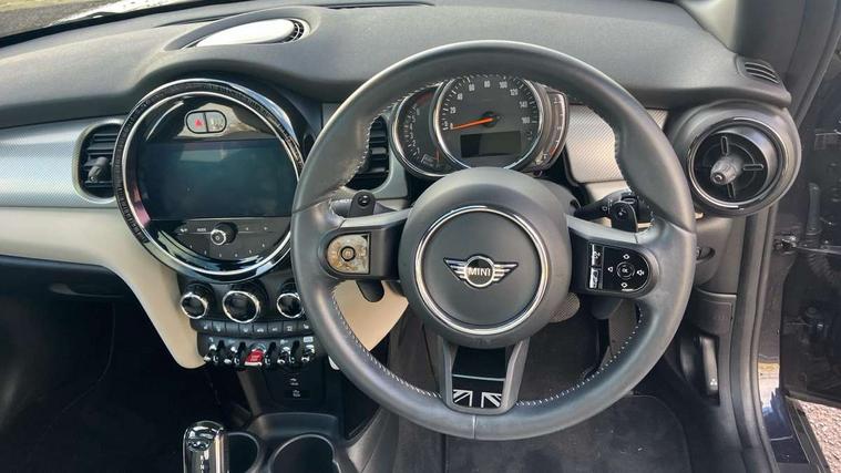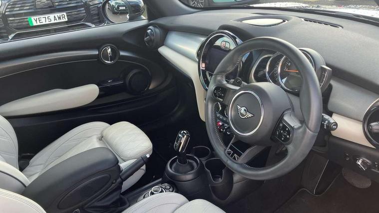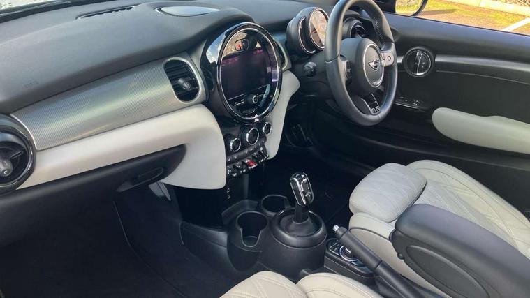 Apple CarPlay, Automatic start/stop function with brake energy recuperation, Compatible mobile phone bluetooth with audio streaming, Cruise control with brake assist, Electro-mechanical speed dependant steering assistance, Flexible car sharing preparation, Instrument cluster, MINI Driving Modes - centre toggle switch to control driving setting (sport, mid and green), Mini E-call, MINI TeleServices, On board computer, Rear park distance control, Service interval indicator, Double Vanos system, Fully variable valve control, High precision injection, Performance Control, Steptronic sport transmission with double clutch and steering wheel paddles, 8.8" touchscreen with LED ring, FM tuner and DAB digital radio, 3rd brake light, Automatic headlight activation switch, Bonnet scoop, Chrome line exterior - radiator grille bars, tailgate handle, lower front grille grating and rear central fog-light, Dynamic brake lights, Electric front windows, Heated rear window, Heated windscreen washer jets, LED headlight with closed ring and daytime driving lights, Metal door sill strips with Cooper S, Model logo Cooper S on right of tailgate, Rain sensor window wipers, Rear fog lights, Rear LED lights with union jack design, Rear window wiper, Side scuttle panel with integrated indicator, Sun/heat protection glass, White indicator lenses, 12V Accessory socket in centre console, 2 seat bench in 2nd row, 4 lashing eyes in luggage compartment, 60/40 split folding rear seat, Carbon black colour line - Knee roll and door armrest, Chrome interior highlights, Chrome line interior - air vents, gear lever base, door handles and speakers in doors, Cupholders, Front and rear head restraints, Front and rear isofix with front passenger airbag deactivation, Front floor mats in velour, Glove compartment, Height and length steering column adjustment, Interior lighting with 12 different colours across the dashboard, underneath door bezel with illuminated laser-engraved design on central display, Leatherette gearshift lever and handbrake gaiters, LED reading lights, vanity mirror lights, front foot well light and spotlight on front seats, Manual air conditioning, Mechanical seat adjustment - forward/back & backrest for front seats and driver seat height adjust, MINI yours badge on exterior pillar, Multifunction steering wheel, Passenger seat height adjuster, Satellite grey headlining including grab handles and clothes hooks, Single front passenger seat, Storage compartments in doors, Storage pocket on back of front seats, Sunvisors with vanity mirrors, Walknappa leather steering wheel with grey seam and MINI Yours badge on Piano Black lower steering wheel spoke, 3 point seatbelts on all four seats, 6 Airbags - front, side, head and seat belt tensioners, Anti-lock braking system (ABS), DSC - Dynamic Stability Control, Front and rear disc brakes, Two tone horn, Tyre pressure monitoring system, Alarm system with tilt sensor, monitoring doors, bonnet interior and tailgate, Electronic vehicle immobiliser, Start/stop toggle with keyless go, Tool kit,