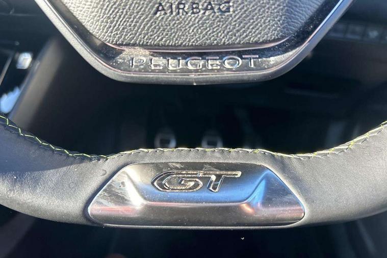 Blind spot monitoring, Bluetooth telephone facility, Connected 3D navigation, Driver attention warning, Exterior temperature indicator with ice warning, Front and rear parking sensors, Lane keep assist, Mirror screen with mirror link, apple carplay and android auto, Multi function trip computer, PEUGEOT i-Cockpit with 10" capacitive colour touchscreen, PEUGEOT i-Cockpit with compact steering wheel, PEUGEOT i-Cockpit with configurable 3D headup instrument panel, PEUGEOT SOS and assistance, Smart phone docking station, Smartphone charging plate, Speed limit recognition and recommendation, Visio Park 1 with 180 degree Colour reversing camera, 2 front USB socket with USB-C, 2 USB sockets in rear, DAB Radio (Digital Audio Broadcasting), Voice recognition for radio, navigation and telephony features, 2 X Rear number plate lights, Automatic front windscreen wipers, Automatic hazard light activation upon heavy brake application, Black diamond roof, Black front wing trim with gloss black detail and GT badging, Body coloured exterior door handles, Chrome Lion Badge front and rear, Dark tinted rear side and tailgate windows, Diamond black mirror shells, Diamond black rear spoiler (roof), Electric, heated, and power folding door mirrors, Frameless electrochrome interior rear view mirror, Front bumper - Silver lower trim, Full LED headlights with smartbeam assist, Gloss black finish on B pillar, Gloss black longitudinal roof rails, Gloss black rear cluster connecting strip, Gloss black roof bars, Gloss black window surround, GT model designation badging on tailgate, Headlights left on audible warning, LED daytime running lights with 3 claw headlight with distinctive tooth design, LED side indicator lights integrated into door mirrors, LED third brake light, Model designation badges front and rear, One touch electric front/rear windows with pinch protection, Radiator grille - Dark chrome chequered and gloss black edge trim, Radiator grille - gloss black top edge trim, Rear full LED 3D peugeot signature claw effect lights with daylight function, Rear reversing lights, Rear side wing doors, Rear windscreen wiper triggered automatically in reverse gear, Stainless steel door sill scuff plates, Tailgate with heated rear windscreen and wiper blade, Twin chromed exhaust pipes, Welcome lighting, Wheel arch extensions, 1/3 to 2/3 split folding rear seats, 12V socket, 3 seat bench in 2nd row, 8 Colour personalisable ambient lighting, Aluminium pedals, Automatic air conditioning with pollen and active carbon filter, Central front armrest with storage compartment, Driver and front passenger sport seats, Electric power steering with reach and rake adjustable steering column, Front and rear carpet mats in black with lime green stitch detail, Front LED interior light with 2 reading spotlights and rear interior light with timer, Front passenger seat manual adjustment - height, longitudinal and back rest angle, Gear lever top - manual in full grain leather, Gear shift indicator, Heated front seats, High centre console, ISOFIX child seat mounting points on passenger seat, Lime green contrast stitching to front centre console, door panels and dashboard facia, Mistral full-grain perforated leather steering wheel with Lime Green stitch detail and satin chrome 'GT' emblem, Modular boot floor, Piano keys: Gloss black and chrome toggle switches to access main functions of the vehicle and touchscreen functions, Roof lining - Mistral black, Seatbelt unfastened on the move audible and visual alert for front and rear seats, Single front passenger seat, Switch for Push Button Start finished in black with chrome surround, Visibility pack - 2008, 2x 2nd row ISOFIX child seat mountings, ABS (Anti-lock Braking System) with EBD (Electronic Brakeforce Distribution) and EBA (Emergency Braking Assistance), Acoustic vehicle alerting system, Active safety brake with night function/cyclists/pedestrians, Adaptive driver and front passenger airbags with passenger airbag deactivation function, Child locking functionality on rear doors, Driver/front passenger side airbags, Electric parking brake, ESP (Electronic Stability Program) + Hill Start Assist, Front and rear curtain airbags, Front and rear disc brakes, Front and rear three-point retractable seatbelts, with force limiters, Front optimised safety headrests and rear retractable headrests (x3), height adjustable, Tyre pressure sensor, Alarm system with anti-lift sensor, Automatic door locking when moving off, Deadlocks, Electronic code immobiliser, Exterior door lock x1 (Left-hand or passenger’s side), Carbon effect Dashboard, front and rear door panel finish, 17" Salamanca diamond cut alloy wheels,