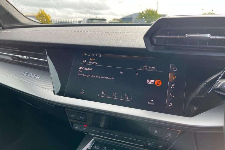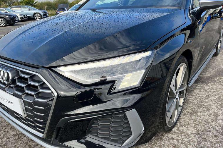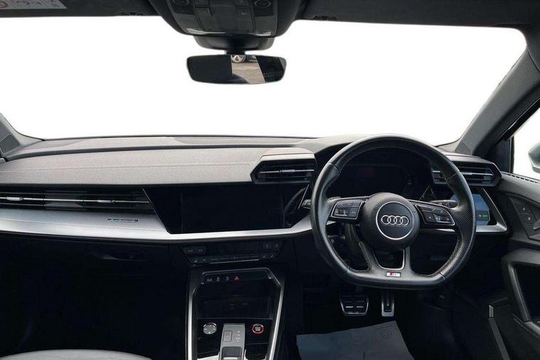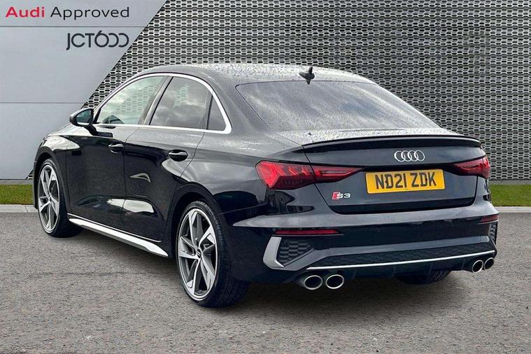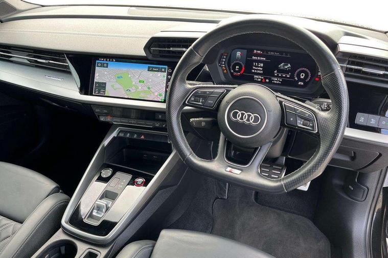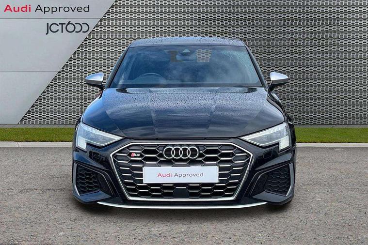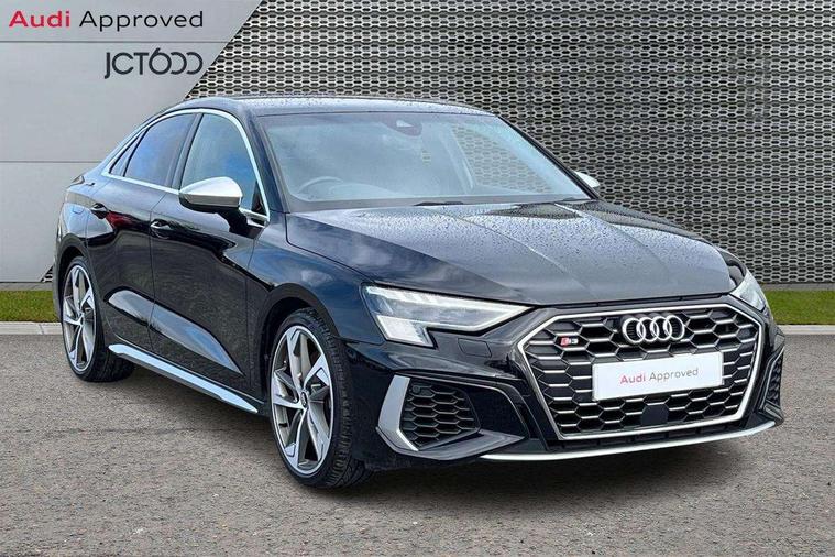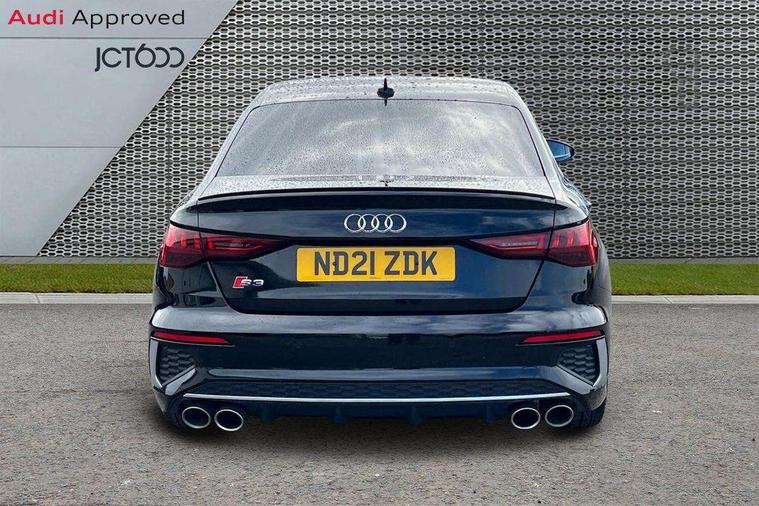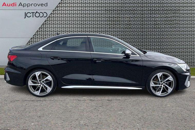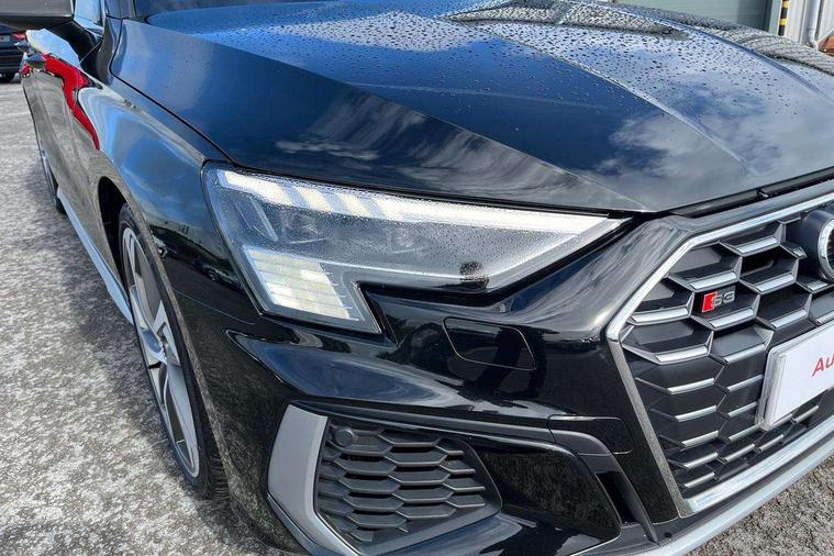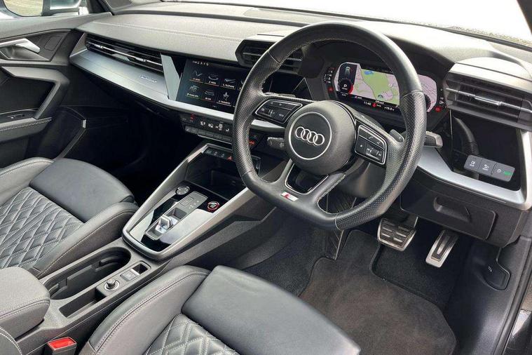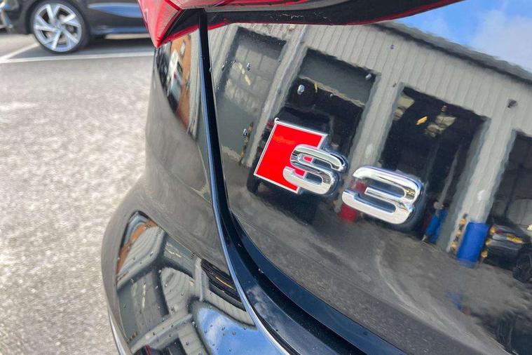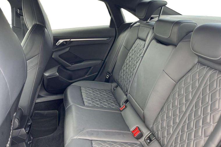 2x USB Type C ports (for charging and data transfer), Audi connect emergency call and service, Audi drive select (Auto, Comfort, Dynamic, Efficiency and Individual), Audi smartphone interface, Audi Virtual Cockpit - 10.25" digital and colour instrument cluster, Automatic start/stop system with recuperation, Bluetooth interface, Collision avoidance assistant, Lane departure warning system, MMI Navigation Plus with high resolution 10.1" colour touch screen display, Progressive steering, Service indicator, Voice control system with natural language interaction, Quattro permanent all wheel drive, S sport suspension with spring damper adjustment and lowering by 15mm, 6 passive loudspeakers, CD player, DAB Digital radio, Acoustic glass windscreen, Audi Beam uses LEDs to project the Audi logo onto the ground as you exit your S3, Auto dimming frameless rear view mirror, Dual branch oval twin tailpipes in chrome plated finish, Electrically adjustable/heated/folding/dimming door mirrors with kerb view includes integrated LED indications + kerb view function for passenger side, Front electric windows, Headlight washers, Illuminated door sills with aluminium inserts at the front with S logo, LED daytime running lights, LED headlights with LED rear lights and dynamic rear indicators, Light and rain sensors, Model and engine designation badges at rear, Privacy glass - dark tinted rear window, rear door and side windows, Rear electric windows, 12V socket and storage compartment in front centre console, 40/20/40 split folding rear seat bench with cupholder, Black cloth headlining, Dual zone electronic climate control, Front and rear centre armrest in leather, Front and rear headrests, Front/rear floor mats, Heated front seats, Height and reach adjustable steering wheel, Interior lighting - glove compartment light and right hand side, Luggage compartment floor covering, Manual boot compartment lid, Seat side bolsters, Stainless steel pedals and front footrest, Body styling design pack - S3, Storage pack - A3/S3 Saloon, 3x3 point rear seat belts, Driver and front passenger airbag with passenger airbag deactivation, Electronic Stabilisation Control (ESC) including ABS, ASR and EDL, First aid kit with warning triangle and 2 safety vests, Front side airbags with head airbags and interaction airbag, Hill hold assist, Pre-sense front with pedestrian and cyclist detection, Seatbelt monitoring, Tyre pressure loss indicator, Anti theft alarm, Anti-theft wheel bolts, Electronically operated child lock, Immobiliser, Remote control central locking, Aluminium air vent surrounds, Aluminium trim elements, Dark spectrum aluminium inlays, accent surfaces in the dashboard and centre console in platinum grey silk effect paint finish,