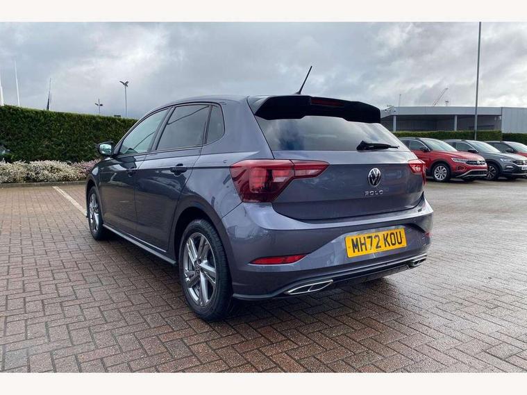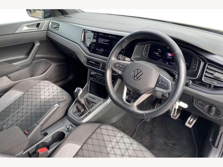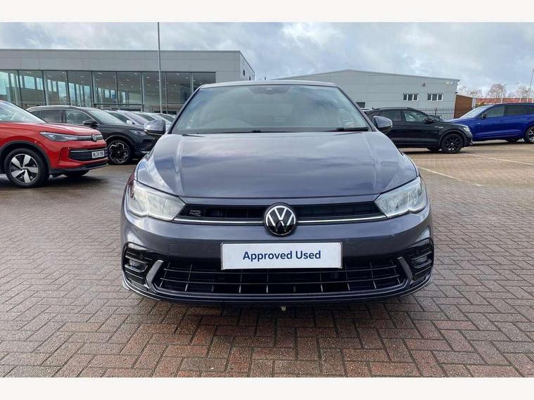 Adaptive cruise control without follow-to-stop and speed limiter, Bluetooth mobile phone interface, Digital Cockpit Pro with 10.25" Display, Driver alert system, Dynamic road sign display, Emergency call service, Power assisted speed sensitive steering, Preparation for We connect and We connect plus, Speedo and rev counter, electronic odometer, trip, service interval display and fuel gauge, Standard rear axle, Travel Assist - Lane keeping system and traffic jam assist, Travel assist including emergency assist, Trip computer, Warning signal and warning light for front and rear seatbelts not fastened, Washer fluid level indicator, Wireless app connect, Front wheel drive, Rear shock absorpion, Start-stop system with battery regeneration (recuperation - energy recovery during braking), DAB Digital radio, Diversity antenna for FM reception, Front and rear 6 speakers, Body colour bumpers, Body colour door handles, Electric front windows, Front scuff plates with R-Line logo, Heat insulating darkened glass in side and rear windows, Heat insulating glass windscreen, Power folding adjustable/heated exterior mirrors and front passenger exterior mirror lowering function, Rear electric windows, Rear fog light, Rear side wing doors, Rear windscreen washer and wiper with interval delay, Third brake light, 12V power socket in centre console, 2 USB-C ports in the front, 2 USB-C charging sockets on the center console in the rear, 3 rear head restraints, 60/40 split folding rear seat and rear seat bench not split, Air care climatronic air conditoning system with active combination filter and 2-zone temperature control, Black roof lining, Chrome plated radiator grille inserts, air vent surrounds and light switch surrounds, Door and side trim panel, Driver and front passenger seat height adjustment, Driver/passenger sunvisors with illuminated vanity mirrors, Front + rear carpet mats in recycled material, Front centre armrest, Front footwell illumination, Front seat backrest storage pockets, Front sports comfort seats, Handbrake lever handle in leather, Headliner in recycled material, Isofix child seat preparation easy-fit (for two outer rear seats, and front passenger seat) compatible with I-size, Karoso artvelours cloth upholstery, Leather trimmed gear knob, LED interior light with switch off delay and dimmer, 2 reading lights front and rear, Luggage compartment cover, Luggage compartment floor, Luggage compartment lighting, Lumbar adjustment for front seats, Multifunction steering wheel, Single front passenger seat, Stainless steel pedals, Standard pedal cluster, Light and sight pack - Polo R-Line/Black Edition, 3 point height adj front seatbelts + pretensioners, 3x3 point rear seatbelts, ABS, Driver and front passenger airbag with front passenger airbag deactivation, Drivers and front passengers safety optimised head restraints, ESC (Electronic stability control) + EDL (Electronic Differntial lock) and ASR (Traction control), Extended and predictive pedestrian/ cyclist protection, Front curtain and side airbags with center airbag, Hill hold control, Manual child lock in rear doors, Single tone horn, Tyre pressure loss indicator, Alarm with interior protection, Anti-theft alarm system with interior monitoring, backup horn, and towing protection, Anti-theft wheel bolts, Electronic engine immobiliser, Chrome applications on rotary light, mirror adjustment, window regulator switches, outlet with frame in black, Dark grey anodised matt decorative inserts in dash and front door panels, Low rolling resistance tyres,