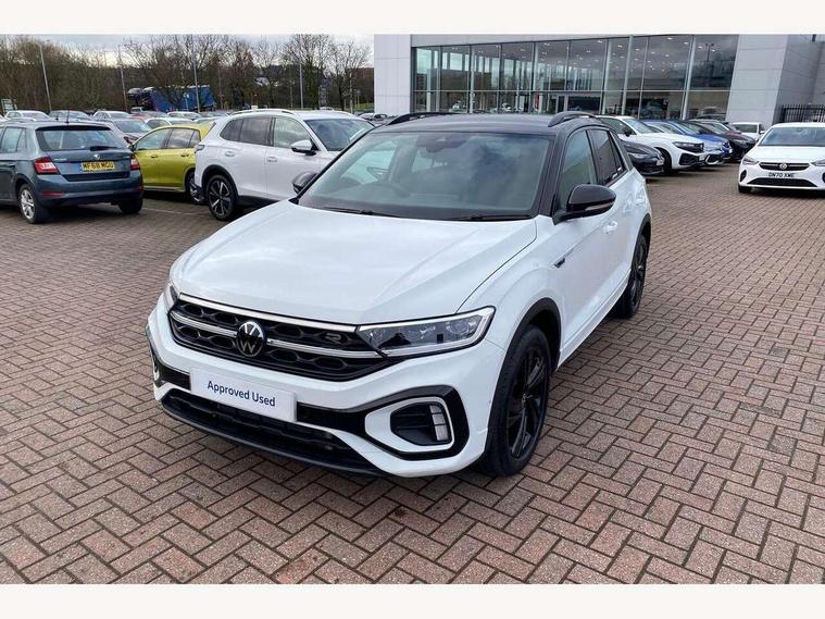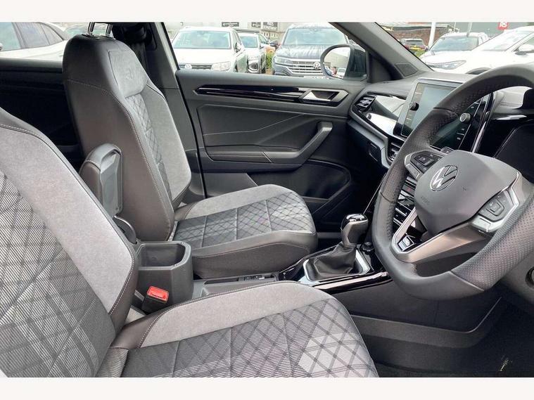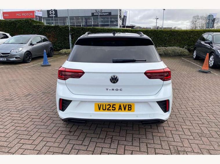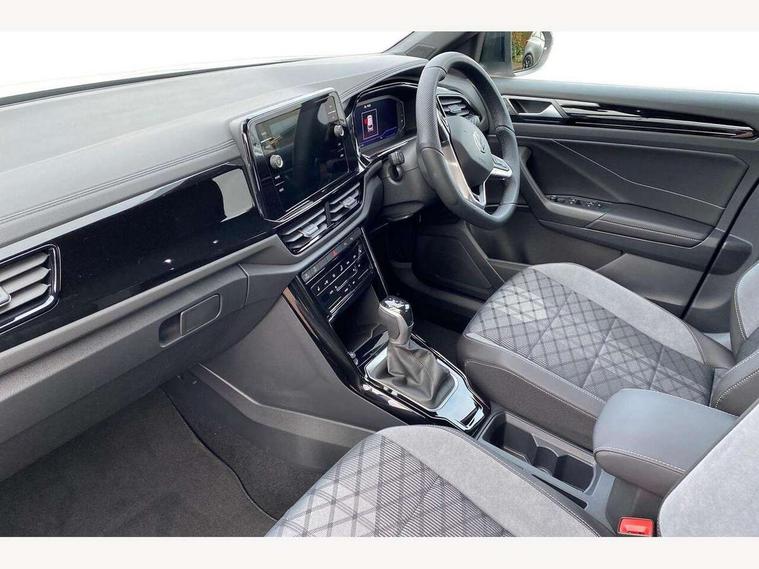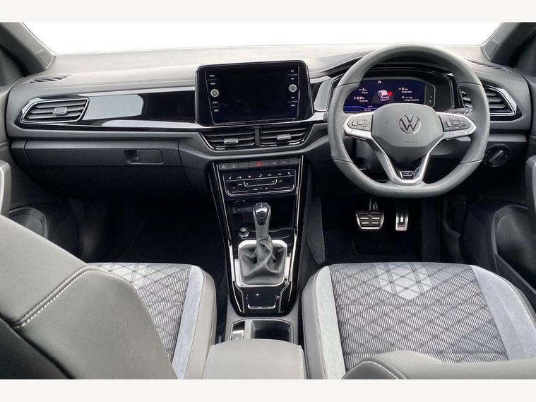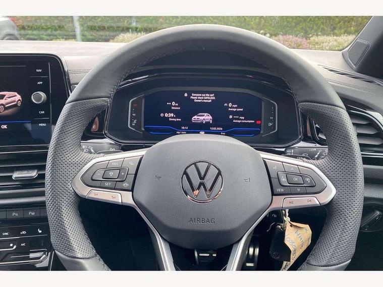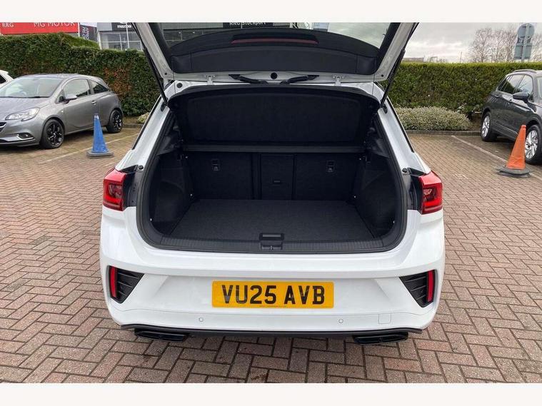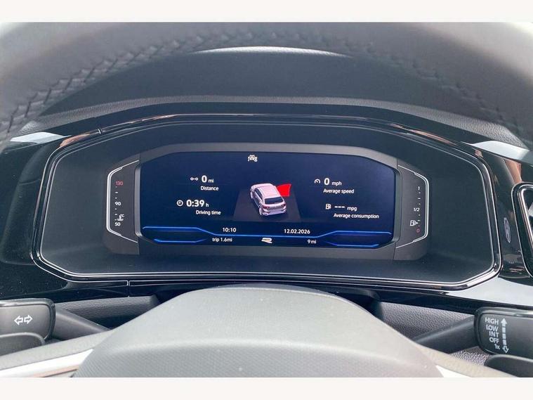 10.25" Digital cockpit pro, Advanced driver attention and drowsiness monitor, Emergency call service, Lane keeping system Lane Assist, Mobile phone interface, Modified key software - reduce switch off time for key status change to Long no motion, Online services, Park assist including front and rear parking sensors, Power assisted speed sensitive steering, Service interval indicator, Tailgate/trunk lid release from outside, Think blue trainer driver tips and journey analysis, Warning sound and light for front seatbelts unfastened, Wireless app connect, Battery regeneration during braking, Rear shock absorption chassis with increased ride height, Start/stop function with battery regeneration, DAB Digital radio, Diversity antenna for FM reception, Front and rear 6 speakers, Music playback - MP3, WMA and AAC files, Premium USB cable in choice of either Apple or Android smartphone compatibility, SD card slot, Simultaneous pairing of 2 compatible mobile devices, Title and cover art display, We Connect and We Connect Plus functionality, Auto dimming interior rear view mirror, Automatic hazard lights activation under emergency braking, Automatic headlight control with LED separate daytime running lights with coming/leaving home function, Dynamic cornering light, Electrically adjustable and heated door mirrors, Extended roof spoiler, Exterior mirrors aspherical on driver side, convex on front passenger side, External USB type C socket and charging sockets, Front windscreen wiper with intermittent wipe and 4 position delay, Heated rear window, Illuminated front grille, IQ LED matrix headlights, LED 3rd brake light, LED rear number plate lights, LED rear tail lights with dynamic turn signal, Light mode for poor weather, rain, fog or snow, Power windows with comfort operation and circuit breaker, R-Line design body coloured bumpers, Rain sensor, Rear exhaust tailpipe, Rear fog light on one side and reversing lights on both sides, Rear side wing doors, Rear wash/wipe with intermittent wipe setting, Remote electrically foldable door mirrors, puddle lights and reverse activated passenger's door mirror, 12V power socket in centre console, 3 rear head restraints, 3 seat bench in 2nd row, 4 load lashing points in luggage compartment, Air care climatronic air conditoning system with active combination filter and 2-zone temperature control, Artvelours cloth upholstery, Black roof lining, Chrome plated radiator grille inserts, air vent surrounds and light switch surrounds, Door and side trim panel with leatherette insert, Drawer under drivers seat, Driver seat height adjust, Driver's seat lumbar support, Front + rear carpet mats, Front centre armrest, Front comfort sports seats, Front cupholders x 2, Front footwell illumination, Front reading light, Front scuff plates with R Line logo, Front seat back storage pockets, Glove compartment door with light, Instrument lighting, white adjustable panel illumination, Interior ambient lighting and surround lighting, Interior light delay, Isofix child seat preparation, Leather gearshift handle, Leather wrapped multifunction steering wheel with paddle shift, Load-through provision with cup holder when folded down ('Unsplit rear seat bench, split folding backrest, with centre armrest), Luggage compartment lighting, Non-folding front passenger seat backrest, Passenger seat height adjuster, Passenger seat lumbar support, Single front passenger seat, Stainless steel pedals, Storage compartment in left and right luggage area, Storage compartment in rear doors, Storage compartments in driver and front passenger doors, Sunvisors with illuminated vanity mirrors, Variable boot floor, height adjustable and removable, Winter pack without heated windscreen washer jets - T-Roc, 3 point height adj front seatbelts + pretensioners, 3 point seatbelts in outer rear with ECE label, ABS, Child locks on rear doors, City emergency braking and pedestrian monitoring, Driver and front passenger airbag with front passenger airbag deactivation, Driver and front passenger safety-optimised head restraints, Drivers seatbelt reminder, Electronic parking brake, Electronic Stability Control (ESC) inc EDL (Electronic Differential Lock) and ASR (Traction Control), Front and rear passengers curtain airbag system including front side airbags, Front disc brakes, Hill start assist, Predictive pedestrian protection, Rear disc brakes, Two tone horn, Tyre pressure loss indicator, Volkswagen roadside assistance, Tool kit, Trims for alloy wheels, Tyre mobility kit including compressor and sealing foam,