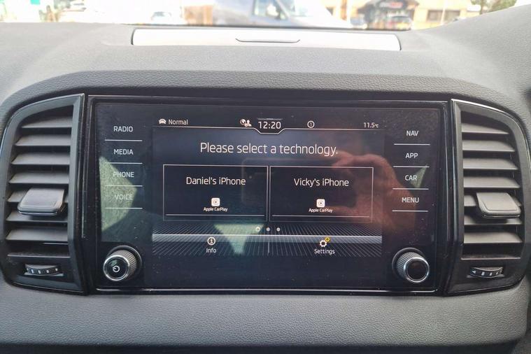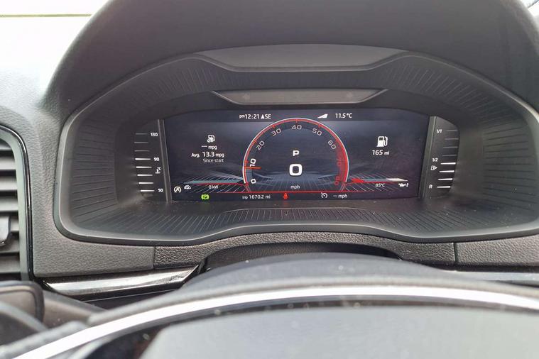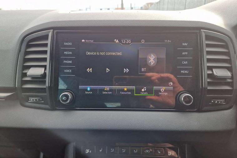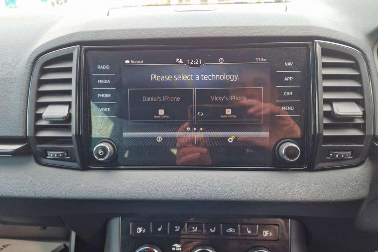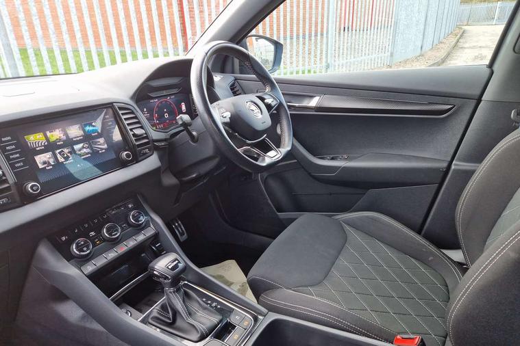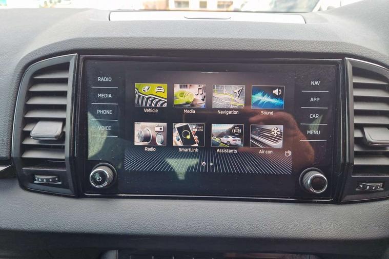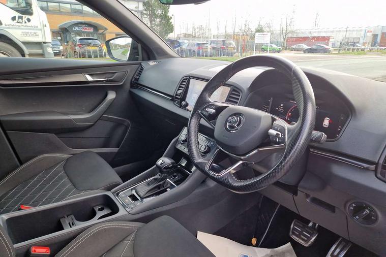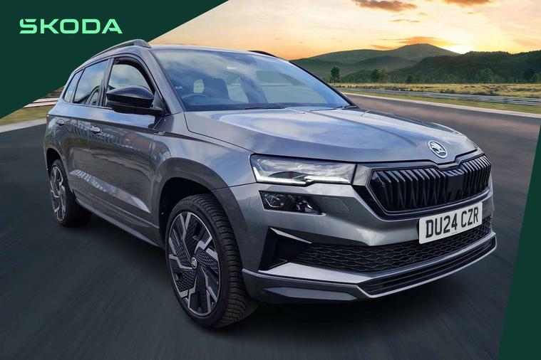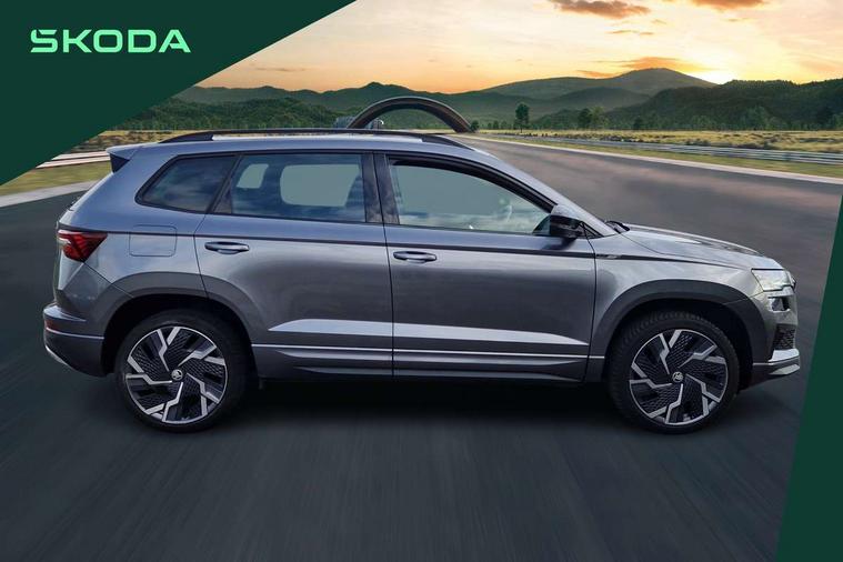 8" Digital display, Advanced driver attention and drowsiness monitor, Emergency services call system, Outside temperature gauge, Sensor for driver assistance systems, Service interval indicator, SmartLink wireless for Apple and wired for Android, Start/stop system with regenerative braking, USB C Port x 2 in front centre console, Virtual Cockpit - 10.25" digital display, Virtual pedal with electrically operated boot door, Wireless smartphone charging, Canton sound system, DAB radio with Bluetooth, USB connection, Acoustic glass, Aero front windscreen wipers with intermittent function, Auto dimming rear view mirror with light and rain sensors, Black door mirrors, Black electric window control buttons, Black radiator grille, Black roof rails, Body colour door handles, Electric front and rear windows with child proof lock, Front door steps with SportLine logo, Heated rear windscreen, LED 3rd brake light, LED daytime running lights, LED rear lights with high functionality welcome effect and dynamic indicators, Light assistant (coming/leaving home/tunnel light), Panoramic sliding sunroof, Plastic scuff plates in door apertures, Privacy glass, Protective door side sills in body colour, Rear diffuser, Rear side wing doors, Rear spoiler, Rear window wiper with washer system and intermittent control, Safety reflectors on front doors, Skoda lettering on tailgate in black, Sportline badge on front fender, Sportline decorative inserts with badging, Sports front and rear bumpers, 1.5 litre bottle holders in driver and front passenger door panels, 12V socket in boot, 12v socket in front centre armrest with storage compartment and rear air vents, 2 x Tablet holder, 3 rear height adjustable headrests, 3 seat bench in 2nd row, 3 spoke leather sports multifunction steering wheel and silver stitching with gear shift paddles, 4 foldable roof handles with rear coat hooks, Black floor carpet, Chrome inner door handles, Double sided boot floor, Foldable hooks in the boot, Front head restraints, Height adjustable front three point seats belts with tensioners, Height/reach adjust steering wheel, Ice scraper, Illuminated glovebox, Illuminated luggage compartment, Isofix child seat preparation for front passenger seat, Isofix child seat preparation outer rear, Manual lumbar support for front seats, Pen holder, Pollen filter, Rear boot cover, Rear reading lights, Rear seats fixed folding and divided 60:40, Rubbish bin door, Safety vest holder, Single front passenger seat, Storage box in upper central dashboard closed, Sunvisors with illuminated vanity mirrors, Textile floor mats, Ticket holder, Titan black interior ceiling, Umbrella under passenger seat, Under passenger seat storage compartment, Welcome animation with sportline logo, Light Pack - Karoq, Non Smokers pack, Automatic door unlocking in case of crash, Automatic fuel cut off in case of crash, Driver airbag, Electronic parking brake with auto hold function, Emergency rear braking signal, ESC including ABS, MSR, ASR, EDS, HBA, DSR, RBS, MKB and traction control, Front side airbags, Head airbags, Hill hold control, Knee airbags, Passenger airbag with switch-off function, Pedestrian monitor, Seatbelt reminder signalisation and pretensioner for all seats, Three point seatbelts rear, Two tone horn, Tyre pressure monitor, Alarm with interior monitoring, back up horn and tilt sensor with safe function, Electronic engine immobiliser, Keyless entry and start/stop, Remote central locking with 2 remote folding keys, Black air vent surround, Black centre console, carbon door decor, Satin black dashboard, Satin black door trim, 19" Sagittarius anthracite alloy wheels, Anti-theft wheel bolts protection, Breakdown and tool kit,