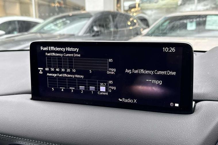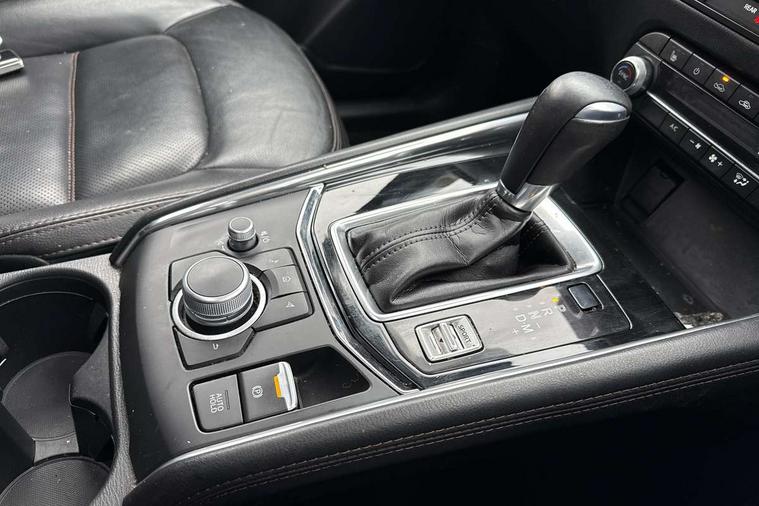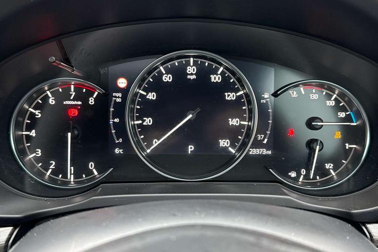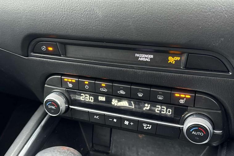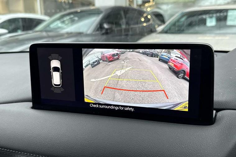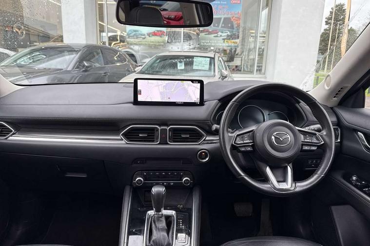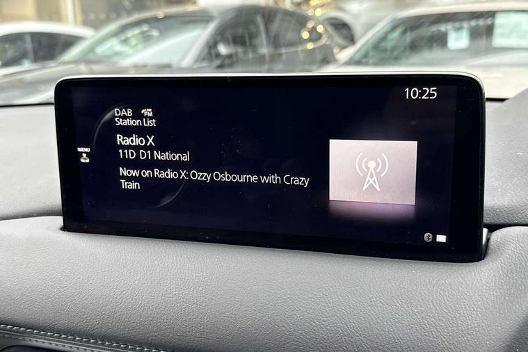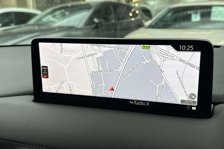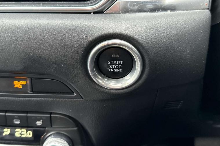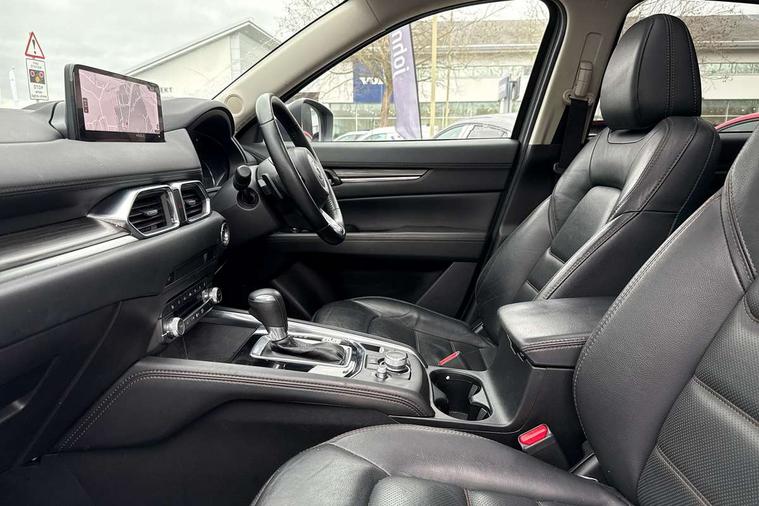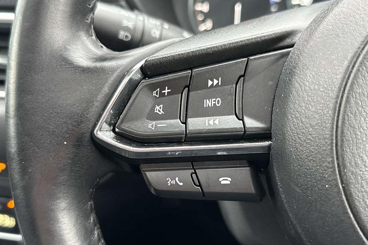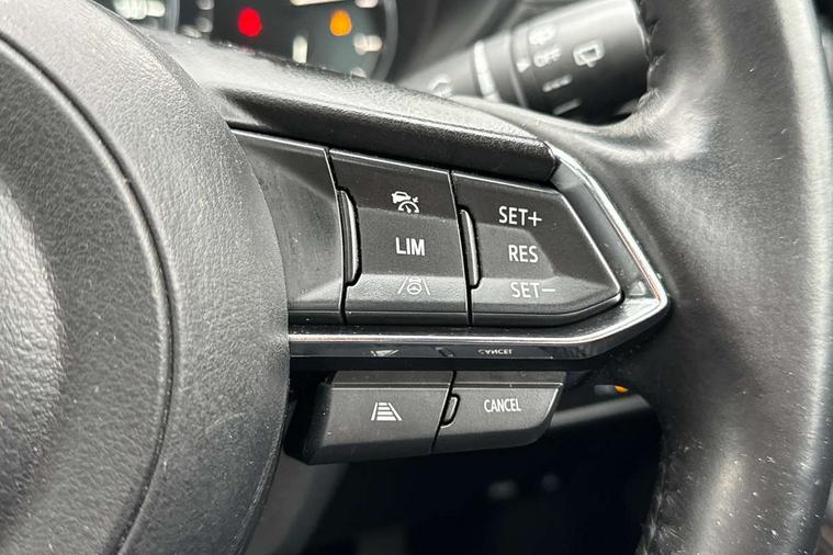 10.25" display with Mazda Connect infotainment, 7" colour TFT display, Advanced blind spot monitoring, Apple car play/Android Auto, Bluetooth connectivity with voice control, Collision prevention assist, Connected services, Cruising Traffic Support, Drive mode selector, Electric power steering, Emergency stop signalling system, Engine start/stop button, Forward collision warning, Front and rear parking sensors, Integrated navigation system, Intelligent speed assist, Lane departure warning system, Lane keep assist, Radar cruise control with Stop and Go, Reversing camera, Service indicator, Traffic sign recognition (TSR), Trip computer, Windscreen projected colour active driving display (HUD) with memory, i-stop, 2 USB sockets in rear, 2x USB sockets in front, 6 speakers, AM/FM radio, Bluetooth audio streaming, DAB Digital radio, Multimedia Commander including separate volume dial, Steering wheel mounted audio controls, Adaptive front lighting system, Auto dimming rear view mirror, Automatic headlights, Black inlay dashboard panel, Body colour door mirrors, Body colour roof spoiler, Body coloured front and rear black lower bumper mouldings, Bright finish signature wing, Coming/leaving home lighting function, Door mirror integrated indicators, Dual chrome tailpipes, Dusk sensitive headlamps, Electric front/rear windows with one touch auto up/down, Front grille in gloss black finish, Gloss black B and C pillars garnish, High beam assist, Intermittent rear wash/wipe, LED auto levelling, LED daytime running lights, LED front fog lights, LED Headlights, LED third brake light, Power folding and heated door mirrors, Power tilt/slide sunroof, Privacy glass (rear side windows only), Rain sensing front wipers, Rear side wing doors, Satin black side mouldings, Scuff plates, Shark fin antenna, Signature LED rear combination lights, Vinyl with wood grain metal inlay door trim panel, Windscreen wiper de-icer, 12v electrical power outlet, 3 seat bench in 2nd row, 3 stage heated front seats, 40:20:40 Karakuri fold-flat seat system, 6 way electric adjustable passenger seat, 8 way electric driver seat with lumbar support + memory, Cargo room flat floor board with waterproof undertray, Driver seat power slide, recline and height adjustment, Driver, Front passenger and two rear grab handles with coat hooks, Driver/passenger front seatback pockets, Driver/passenger sunvisors + illuminated vanity mirrors (drivers with ticket holder), Dual zone climate control, Folding centre armrest with 2 cup holders, Front and rear door pockets, Front centre storage with two cupholders, Front passenger seat power slide, recline and height adjustment, Heated steering wheel, Humidity sensor, Illuminated glovebox, Interior dome light with integral spotlight, ISOFIX child seat anchorage points attached on outer rear seats, Karakuri tonneau cover, Leather upholstery, Leather wrapped steering wheel and gear knob, Light roof lining, Luggage compartment LED lighting, Luggage compartment power outlet, Paddle shifts, Rear air vents, Rear headrests, Rear seat recline, Roof mounted sunglasses holder, Single front passenger seat, Three height adjustable head restraints, Tilt/height adjustable steering wheel, White interior LED illumination lighting, 3 point front seatbelts with pre-tensioners, 3 rear 3 point seatbelts, ABS, Advanced Smart City Brake Support - SCBS, Child locks on rear doors, Driver and front passenger side airbags, DSTC-Dynamic Stability and Traction Control, Dual front airbags, Electronic brake force distribution, Electronic parking brake with auto hold, ESP, Front and rear curtain airbags, Front passenger airbag deactivation, G-Vectoring control, Hill hold assist, Seatbelt reminder front and rear, Single stage passenger airbags, Smart brake support with forward obstruction warning, Tyre pressure monitoring system, Automatic door locking when moving off, Deadlock, Immobiliser, Power door locks, Remote central locking, Smart keyless entry, Thatcham Cat.1 alarm, 19" diamond cut black alloy wheels, Tyre repair kit,