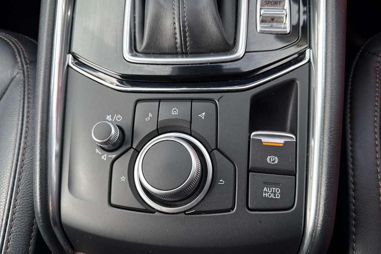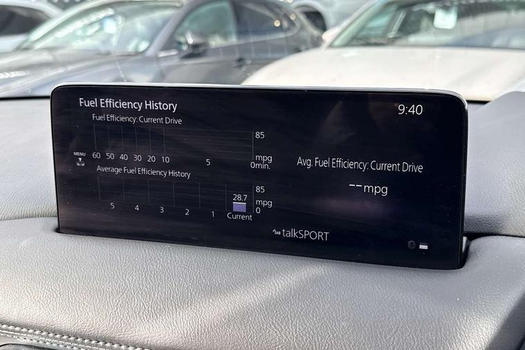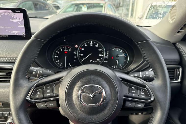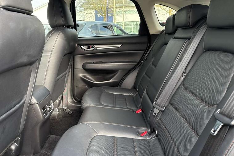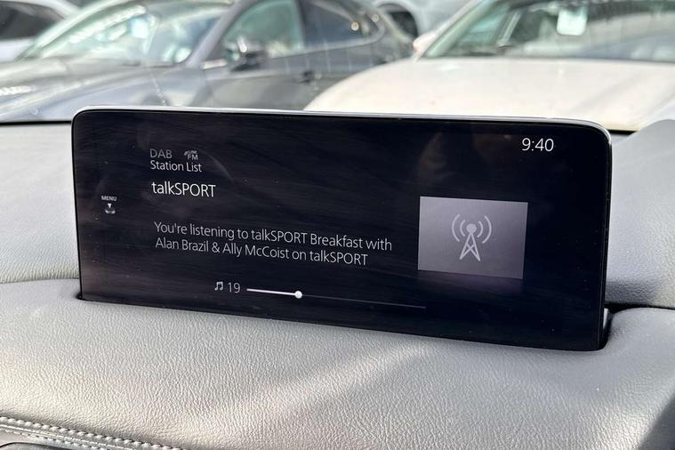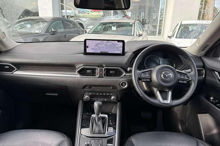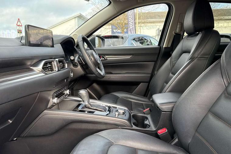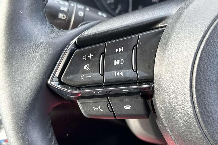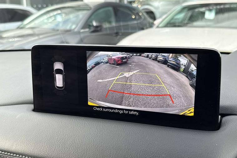 10.25" display with Mazda Connect infotainment, 7" colour TFT display, Advanced blind spot monitoring, Apple car play/Android Auto, Bluetooth connectivity with voice control, Collision prevention assist, Connected services, Cruising Traffic Support, Drive mode selector, Electric power steering, Emergency stop signalling system, Engine start/stop button, Forward collision warning, Front and rear parking sensors, Integrated navigation system, Intelligent speed assist, Lane departure warning system, Lane keep assist, Radar cruise control with Stop and Go, Reversing camera, Service indicator, Traffic sign recognition (TSR), Trip computer, Windscreen projected colour active driving display (HUD) with memory, i-stop, 2 USB sockets in rear, 2x USB sockets in front, 6 speakers, AM/FM radio, Bluetooth audio streaming, DAB Digital radio, Multimedia Commander including separate volume dial, Steering wheel mounted audio controls, Adaptive front lighting system, Auto dimming rear view mirror, Automatic headlights, Black inlay dashboard panel, Body colour door mirrors, Body colour roof spoiler, Body coloured front and rear black lower bumper mouldings, Bright finish signature wing, Coming/leaving home lighting function, Door mirror integrated indicators, Dual chrome tailpipes, Dusk sensitive headlamps, Electric front/rear windows with one touch auto up/down, Front grille in gloss black finish, Gloss black B and C pillars garnish, High beam assist, Intermittent rear wash/wipe, LED auto levelling, LED daytime running lights, LED front fog lights, LED Headlights, LED third brake light, Power folding and heated door mirrors, Power tilt/slide sunroof, Privacy glass (rear side windows only), Rain sensing front wipers, Rear side wing doors, Satin black side mouldings, Scuff plates, Shark fin antenna, Signature LED rear combination lights, Vinyl with wood grain metal inlay door trim panel, Windscreen wiper de-icer, 12v electrical power outlet, 3 seat bench in 2nd row, 3 stage heated front seats, 40:20:40 Karakuri fold-flat seat system, 6 way electric adjustable passenger seat, 8 way electric driver seat with lumbar support + memory, Cargo room flat floor board with waterproof undertray, Driver seat power slide, recline and height adjustment, Driver, Front passenger and two rear grab handles with coat hooks, Driver/passenger front seatback pockets, Driver/passenger sunvisors + illuminated vanity mirrors (drivers with ticket holder), Dual zone climate control, Folding centre armrest with 2 cup holders, Front and rear door pockets, Front centre storage with two cupholders, Front passenger seat power slide, recline and height adjustment, Heated steering wheel, Humidity sensor, Illuminated glovebox, Interior dome light with integral spotlight, ISOFIX child seat anchorage points attached on outer rear seats, Karakuri tonneau cover, Leather upholstery, Leather wrapped steering wheel and gear knob, Light roof lining, Luggage compartment LED lighting, Luggage compartment power outlet, Paddle shifts, Rear air vents, Rear headrests, Rear seat recline, Roof mounted sunglasses holder, Single front passenger seat, Three height adjustable head restraints, Tilt/height adjustable steering wheel, White interior LED illumination lighting, 3 point front seatbelts with pre-tensioners, 3 rear 3 point seatbelts, ABS, Advanced Smart City Brake Support - SCBS, Child locks on rear doors, Driver and front passenger side airbags, DSTC-Dynamic Stability and Traction Control, Dual front airbags, Electronic brake force distribution, Electronic parking brake with auto hold, ESP, Front and rear curtain airbags, Front passenger airbag deactivation, G-Vectoring control, Hill hold assist, Seatbelt reminder front and rear, Single stage passenger airbags, Smart brake support with forward obstruction warning, Tyre pressure monitoring system, Automatic door locking when moving off, Deadlock, Immobiliser, Power door locks, Remote central locking, Smart keyless entry, Thatcham Cat.1 alarm, 19" diamond cut black alloy wheels, Tyre repair kit,