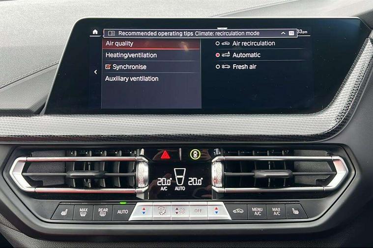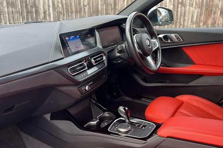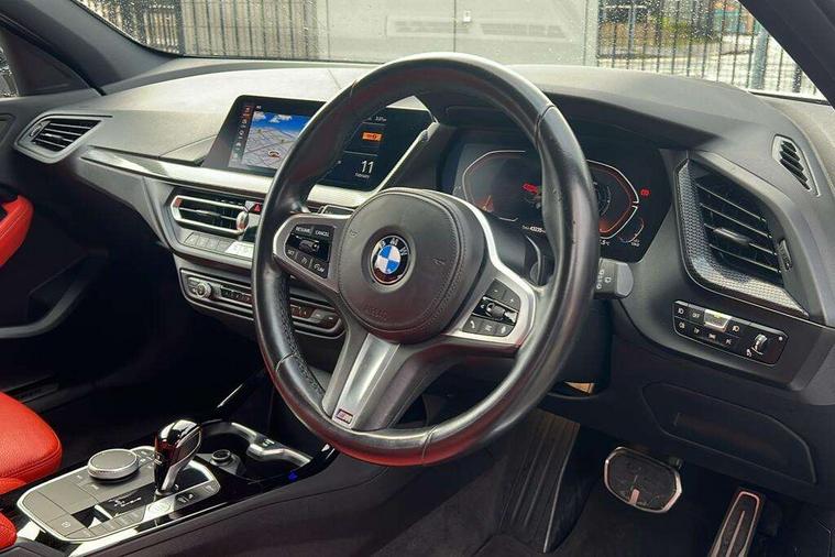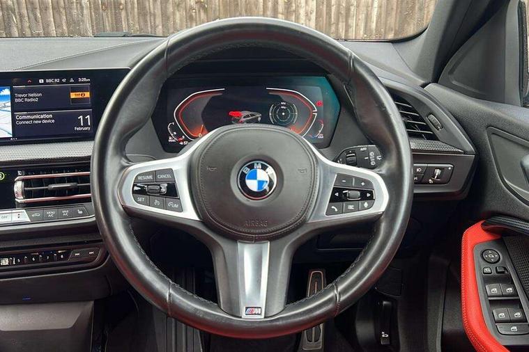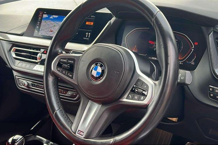 Active guard plus, Attentiveness assist, BMW Online services, BMW Teleservices, Check Control warning system for monitoring of lights and door/luggage compartment open warning, Connected eDrive Services, Eco pro mode, Integrated owners handbook, Oil sensor for level and grade, On board computer, Optimum shift indicator, Personal Profile, Pull away assistant, Speed limiter, Aluminium lightweight construction, Anti roll bar front and rear, Balancer shaft, Diesel particulate filter, Drive Performance Control, Electronic differential lock, M sport suspension, Bluetooth audio streaming, DAB Digital radio, Auto dimming rear view mirror, Automatic headlight beam throw control, Automatic windscreen wipers and automatic headlight, Body colour door handles, Body colour mirror caps, Chrome 'M' logo side designation, Chrome exhaust tailpipe in single, round (Exhaust tailpipe, stainless steel - single, round), Chrome kidney grille frame with Satin Aluminium struts, Direction indicator side lights in exterior mirrors, Electric folding and anti dazzle exterior mirrors, Fading support, Follow me home headlights, Front and rear bumper system with replaceable deformation elements, Front and rear electric windows with open and close fingertip control, anti trap facility and comfort closing, Front door sill finishers in black plastic with M designation in metallic look, Green tinted heat protection glazing, Heated, electrically adjustable exterior mirror aspheric on driver side, convex on passenger side, High gloss shadowline window frame, Recess cover mirror frames and B/C pillar embelisher trim, High level third brake light, LED daytime running lights, LED eyebrow turn indicators, LED front fog lights, Lightweight engineering, Matt black air guide grilles, Model designation on right side of tailgate, Nearside reverse light in rear light cluster, Preparation for high beam assistant, Rain sensor including auto headlights activation, Rear fog lights, Rear window wiper, Shark fin antenna, Visible VIN plate, Welcome lighting, 12V power socket in centre console, 3 rear seat head restraints, 3 spoke M sports design leather steering wheel finished in nappa leather with specific M badge, Anthracite headlining, Anthracite Velour floor mats, Child seat ISOFIX attachment for two outer rear seats and front passenger seat with anchorage points, Conditioned based service, Dakota leather upholstery with perforation and contrast stitching, Driver and front passenger seat heating, Folding rear clothes hook, Four grab handles integrated in roof lining, Front and rear door pockets, Front and rear door pockets with bottle holders, Front and rear side armrest integrated into door trim, Front armrest foldable with integrated storage compartment, Front sports seats with electric side bolster adjustment, Glove compartment, Height adjustable front head restraints, Manual adjust steering wheel, Multi-function controls for steering wheel, Storage compartment in centre console, Sun visors with vanity mirrors and insert tab, Two zone automatic air conditioning, Additional interior lighting pack - 1 Series, Connected pack professional - 1 Series, Extended storage pack - 1 Series, Interior lights pack - 1 Series, Luggage compartment pack - 1 Series, M Sport exterior styling aerodynamics pack - 1 Series, 2 tone horn, 3 point seatbelts on all seats, front pyrotechnic belt tensioners, stopper and belt force limiters, rear coded belt buckles, Airbags - front driver/passenger, front & rear curtain, front side, Anti lock braking system (ABS) with brake assist, BMW emergency call, Brake drying, Braking readiness, Crash sensor activating central locking release, hazard warning lights, fuel cut off, interior lighting + activation of safety battery terminal clamp, Driver and front passenger seat belt security check, Dynamic stability control + (DSC+), Dynamic Traction Control - DTC, Electrically operated hand brake, Front and rear disc brakes, Front passenger manual airbag deactivation, Seatbelt warning, Side impact protection, Tyre pressure monitoring system, Warning triangle and first aid kit, Automatic drive away locking facility, Central locking switch for all doors, fuel filler cap and luggage compartment, Deadlocking function system to all doors, Incorrect fuel protection system, Locking wheel bolts, Remote control with integrated key with High-gloss Black inlay and M designation and 1 button for open/ close lock, window, open luggage compartment, Start/stop button with comfort go keyless engine start and auto start stop deactivation button, Thatcham Cat.1 alarm and immobiliser, Contrast stitching on instrument panel, Reduced rolling resistance tyres,