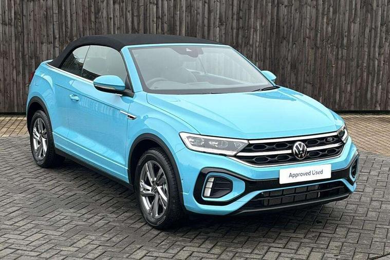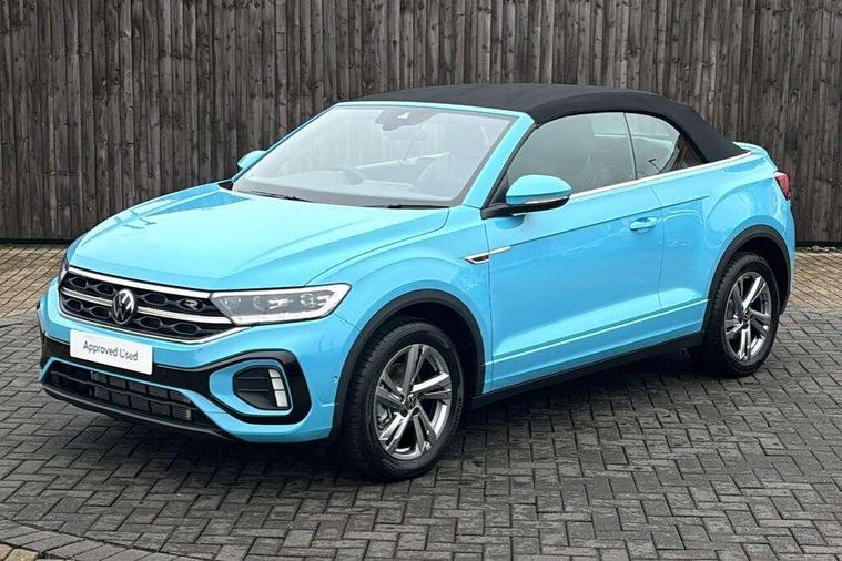 Adaptive cruise control and speed limiter, Advanced driver attention and drowsiness monitor, Brake pad wear indicator, Car information display, Digital Cockpit Pro with 10.25" Display, Driver tips and journey analysis, Dynamic road sign display, Emergency call service, Modified key software - reduce switch off time for key status change to Long no motion, Multifunction computer with visual gear change recommendation for fuel consumption, Multifunction front facing camera, Online services, Park assist including front and rear parking sensors, Speedo and rev counter, electronic odometer, trip, service interval display and exterior temperature gauge, Start/stop system with brake energy recovery, Tailgate/trunk lid release from outside, Warning sound and light for front seatbelts unfastened, Wireless App-Connect for apple Carplay and android Auto, Digital radio reception (DAB), Diversity antenna for FM reception, Mobile phone interface with inductive charging feature, Music playback - MP3, WMA and AAC files, SMS functionality - read, compose and send SMS messages using touch-screen display, Title and cover art display, USB-C Interface and USB charging socket, We Connect and We Connect Plus functionality, Ambient lighting with logo projection, Auto dimming interior rear view mirror, Automatic hazard lights activation under emergency braking, Automatic headlight control with LED separate daytime running lights with coming/leaving home function, Black roof, Body colour door handles, Body colour rear boot spoiler, Chrome effect left and right trapezoid exhaust tailpipe fascia surround, Chrome trim on upper and lower radiator grille, Dark red rear combination lamps in LED technology, Dusk sensor, Exterior mirrors aspherical on driver side, convex on front passenger side, Heat insulating glass windscreen, LED 3rd brake light, LED rear number plate lights, Power operated canvas convertible top, Power windows with comfort operation and circuit breaker, R-Line design body coloured bumpers, Rain sensor, Rear boot, Rear exhaust tailpipe, Rear fog light on one side and reversing lights on both sides, Remote electrically foldable door mirrors, puddle lights and reverse activated passenger door mirror, Volkswagen roundel, Windscreen wiper with intermittent wipe light, Without exterior ambient lighting, 12V socket in centre console storage area, 2 LED front reading lights, 2 seat bench in 2nd row, 50:50 Split folding rear seat backrests with fixed rear seat bench, Air care climatronic air conditoning system with active combination filter and 2-zone temperature control, Black door lower parts with chrome trim, Chrome plated surround to light, mirror and window switch, Door and side trim panel with leatherette insert, Easy entry backrest release, Front and rear carpet mats with black stitching, Front centre armrest, Front cupholders x 2, Front door pockets, Front seat back storage pockets, Front sports comfort seats with manual height adjustment, Heated multifunction leather sports steering wheel, Height/reach adjust steering wheel, Inserts of front seats and outer rear seats in ArtVelours titan black, Instrument lighting, white adjustable panel illumination, Interior light delay, Interior light in footwell, Interior lighting with switch off delay and contact switches on all doors, Interior white ambient lighting and surround lighting, Isofix child seat preparation, Lockable glove compartment with light, Luggage compartment lighting, Power adjustable lumbar support in front, Rear head restraints, Single front passenger seat, Stainless steel pedals, Sun visors with illuminated vanity mirrors, Unique R Line door sill protectors, Driver assistance pack without proactive passenger protection - T-Roc cabriolet, 2 x 3-point seatbelts/outer rear seats with ECE label, Driver and front passenger airbag with front passenger airbag deactivation, Driver and front passenger safety-optimised head restraints, Drivers seatbelt reminder, Electronic parking brake, Electronic Stability Control (ESC) including ABS, ASR and EDL, Front and rear disc brakes, Front assist with autonomous emergency braking, Pedestrian monitoring, Predictive pedestrian protection, Rigid safety cell with front and rear crumple zones, Side airbag/thorax airbag system, for front passengers, Three point height adjust front seatbelts + pretensioners, Two tone horn, Tyre pressure loss indicator, Volkswagen roadside assistance, Anti-theft alarm system with interior protection and central locking system with SAFELOCK, radio remote control and 2 remote control folding keys, Electronic engine immobiliser, Trims for alloy wheels,