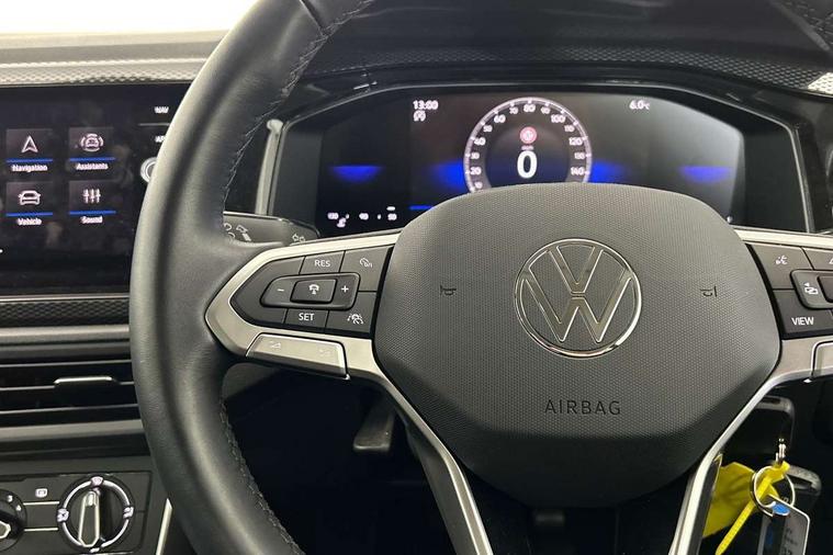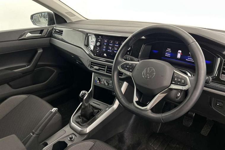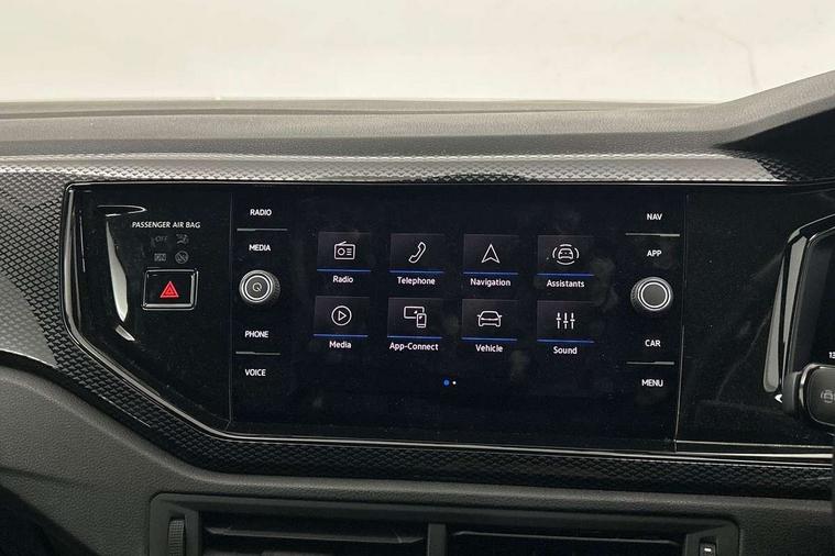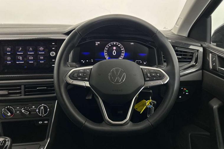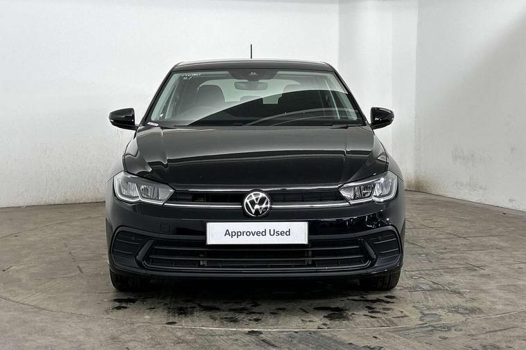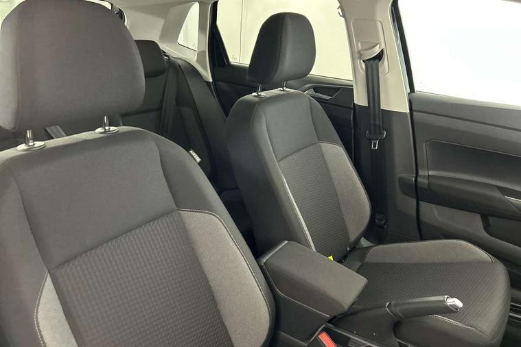 Adaptive cruise control without follow-to-stop and speed limiter, Advanced driver attention and drowsiness monitor, Bluetooth mobile phone interface, Dynamic road sign display, Emergency call service, Multifunction front facing camera for distance control, Park distance control, Power assisted speed sensitive steering, Preparation for navigation system with media and internet package, Preparation for We connect and We connect plus, Rear view camera, Speedo and rev counter, electronic odometer, trip, service interval display and exterior temperature gauge, Standard rear axle, Travel Assist - Lane keeping system and traffic jam assist, Travel assist including emergency assist, Trip computer, Warning signal and warning light for front and rear seatbelts not fastened, Washer fluid level indicator, Wireless app connect, Front wheel drive, Rear shock absorpion, Start-stop system with battery regeneration (recuperation - energy recovery during braking), DAB Digital radio, Diversity antenna for FM reception, Front and rear 6 speakers, Automatic dimming interior rear view mirror, Automatic headlight control with LED separate daytime running lights with coming/leaving home function, Body colour bumpers with chrome inserts, Body colour door handles, Body colour door mirrors, Electric front windows, Engine badge deletion, Headlight range adjustment, Heat insulating and laminated safety glass windshield, LED Headlights, LED rear combination lamps, Power folding adjustable/heated exterior mirrors and front passenger exterior mirror lowering function, Rain sensor, Rear electric windows, Rear fog light, Rear side wing doors, Rear tinted glass from B-pillar backwards approx 65% tinted, Rear windscreen washer and wiper with interval delay, Third brake light, 12V power socket in centre console, 2 front and 2 rear reading lights with switch off delay and dimmer, 2 USB-C ports in the front, 2 USB-C charging sockets on the center console in the rear, 3 rear head restraints, 60/40 split folding rear seat and rear seat bench not split, Ceramique roof lining, Chrome plated radiator grille inserts, air vent surrounds and light switch surrounds, Door and side trim panel, Driver and front passenger seat height adjustment, Driver/passenger sunvisors with illuminated vanity mirrors, Front centre armrest, Front seat backrest storage pockets, Front standard seats, Handbrake lever handle in leather, Hartley/Thomas cloth upholstery, Headliner in recycled material, Isofix child seat preparation easy-fit (for two outer rear seats, and front passenger seat) compatible with I-size, Leather trimmed gear knob, Luggage compartment cover, Luggage compartment lighting, Removable luggage compartment floor, Single front passenger seat, Standard climatic zones, Standard pedal cluster, Three spoke leather wrapped multifunction steering wheel, Light and vision pack - Polo, 3 point height adj front seatbelts + pretensioners, 3 point seat belt for centre rear seat, 3 point seatbelts, outer rear with ECE lable, ABS, Driver and front passenger airbag with front passenger airbag deactivation, Drivers and front passengers safety optimised head restraints, ESC (Electronic stability control) + EDL (Electronic Differntial lock) and ASR (Traction control), Extended and predictive pedestrian/ cyclist protection, Front assist with autonomous emergency braking (for Adaptive Cruise Control ACC up to 130 mph), Front curtain and side airbags with center airbag, Front disc brakes, Hill hold control, Manual child lock in rear doors, Rear drum brakes, Single tone horn, Tyre pressure loss indicator, Alarm with interior protection, Anti-theft alarm system with interior monitoring, backup horn, and towing protection, Anti-theft wheel bolts, Electronic engine immobiliser, Lava stone black gloss/matt decorative inserts in dash and front door panels, 16" Torsby alloy wheels, Low rolling resistance tyres,