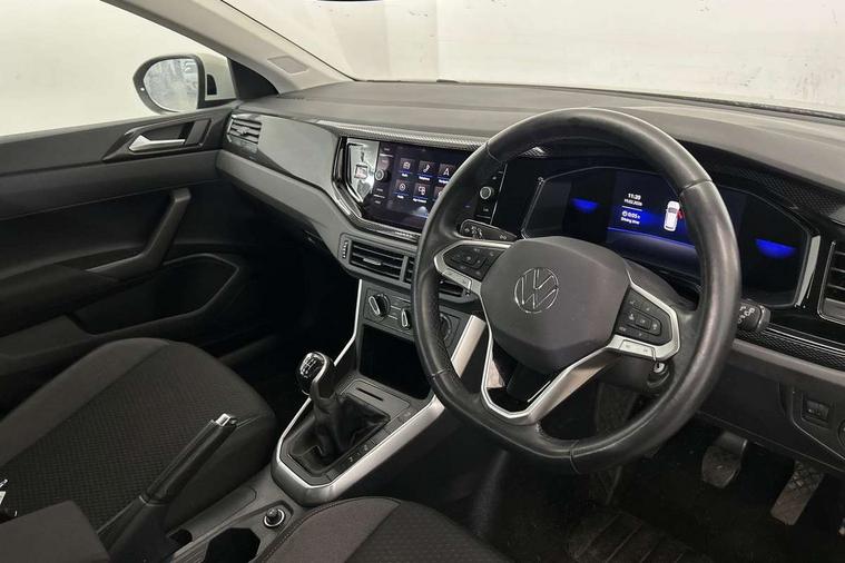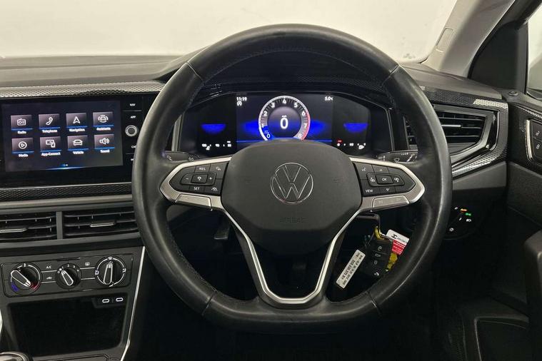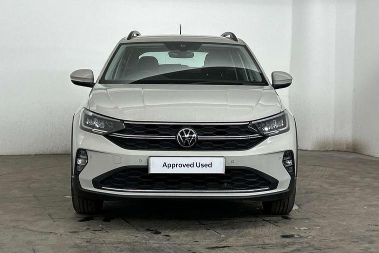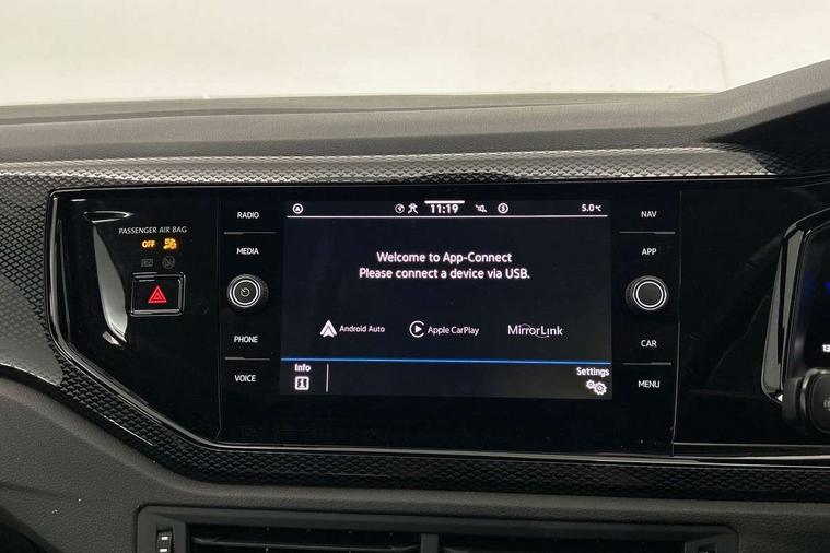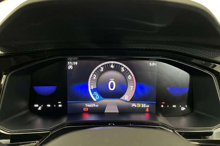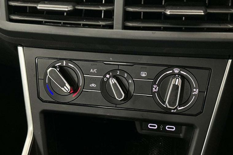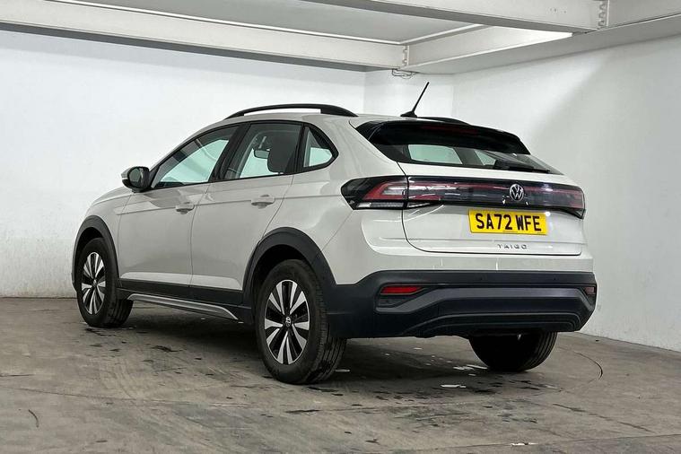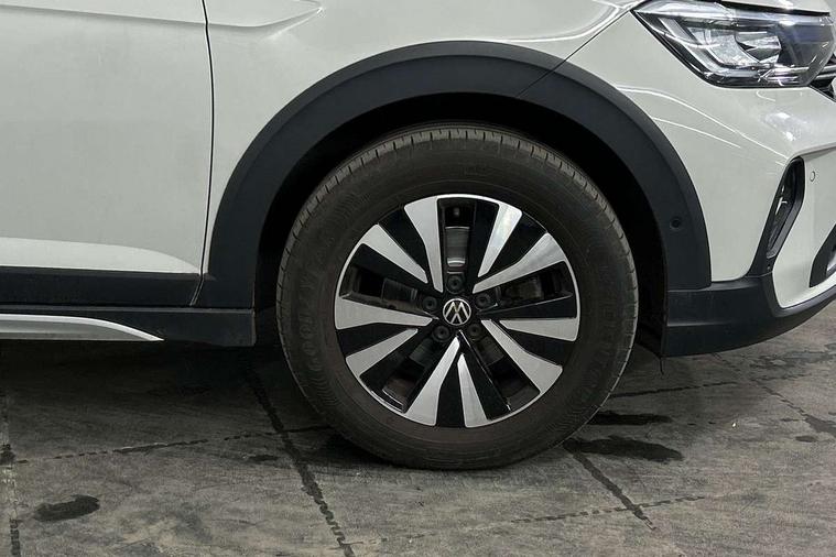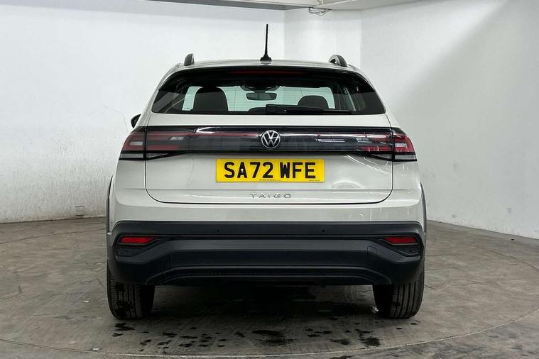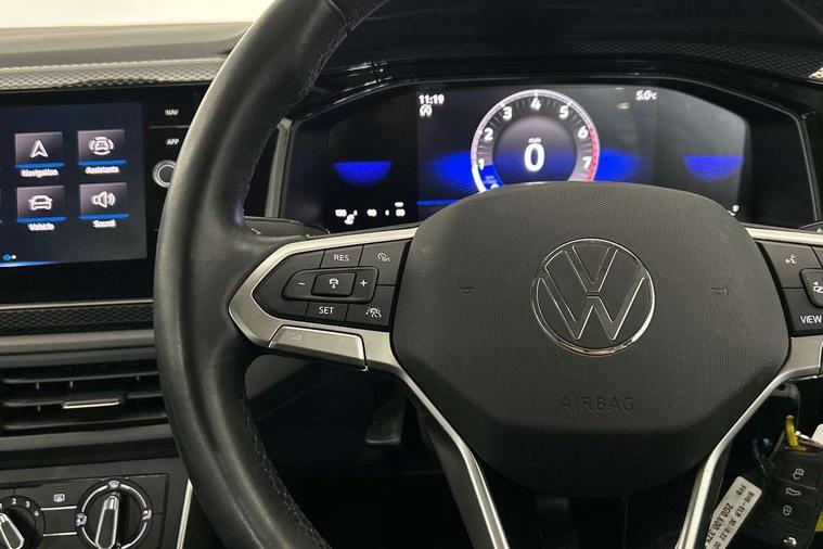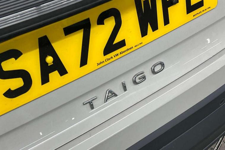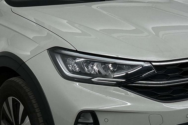 Driver alert system, e-Call (emergency call), Power Steering, Travel assist including emergency assist, Washer fluid level indicator, Wireless Charging including Bluetooth, Start-stop system with battery regeneration (recuperation - energy recovery during braking), WeConnect plus, Ambient lighting with logo projection, Aspherical driver's exterior mirror, Auto headlights, Body coloured bumpers, Body coloured exterior mirror housings and door handles, Electric windows, External USB type C socket and charging sockets, Front fog lamps with cornering function, Headlight range control, Heat insulating glass windscreen, LED headlamps, LED rear combination lamp, LED third brake light, Left convex exterior mirror, Power folding adjustable/heated exterior mirrors and front passenger exterior mirror lowering function, Rear fog light on one side, reversing light on both sides, Rear side wing doors, Rear wash/wipe with intermittent wipe setting, 'Slash/ Austin' Cloth upholstery, 12V socket in centre console, 2 front reading lights, 3 rear head restraints, 3 seat bench in 2nd row, Black carpets, Child seat anchor for child seat system i-Size, 2x top tether and child seat anchor in front on front passenger side, Door and side trim panels in titan black, Driver and front passenger seat height adjustment, Front centre armrest, Handbrake lever handle in leather, Height and reach adjustable steering wheel, Leather trimmed gear knob, Leather wrapped multifunction steering wheel, Luggage compartment floor, Luggage compartment light, Lumbar support for driver's and front passengers seat, Seat covers in titanium black, Single front passenger seat, Split folding backrest with centre armrest and unsplit rear seat bench, Storage compartment under front seats, Sun visors with illuminated vanity mirrors, Chrome Package - Taigo, Drivers assistance pack - Taigo, Light and Sight pack including High beam assist - Taigo, 2 x 3-point seatbelts/outer rear seats with ECE label, 3-point seat belts in front with pretensioner and height adjustment, 3-point seatbelt for centre rear seat, Driver and front passenger airbags with front passenger airbag de-activation, front side and curtain airbags, Driver and front passenger safety-optimised head restraints, Electronic stability control, Extended and predictive pedestrian/ cyclist protection, Front and rear disc brakes, Front curtain and side airbags with center airbag, Hill start assist, Manual rear child locks, Single tone horn, Tyre pressure loss indicator, Anti-theft alarm system with interior monitoring, backup horn, and towing protection, Anti-theft wheel bolts, Lava stone black gloss/matt decorative inserts in dash and front door panels, Low rolling resistance tyres,