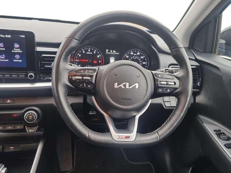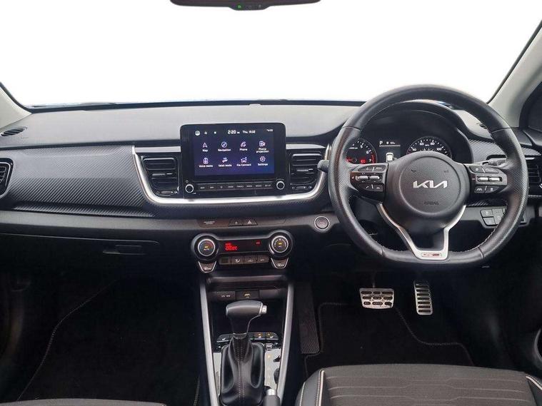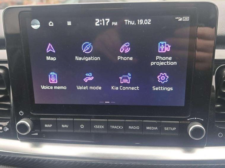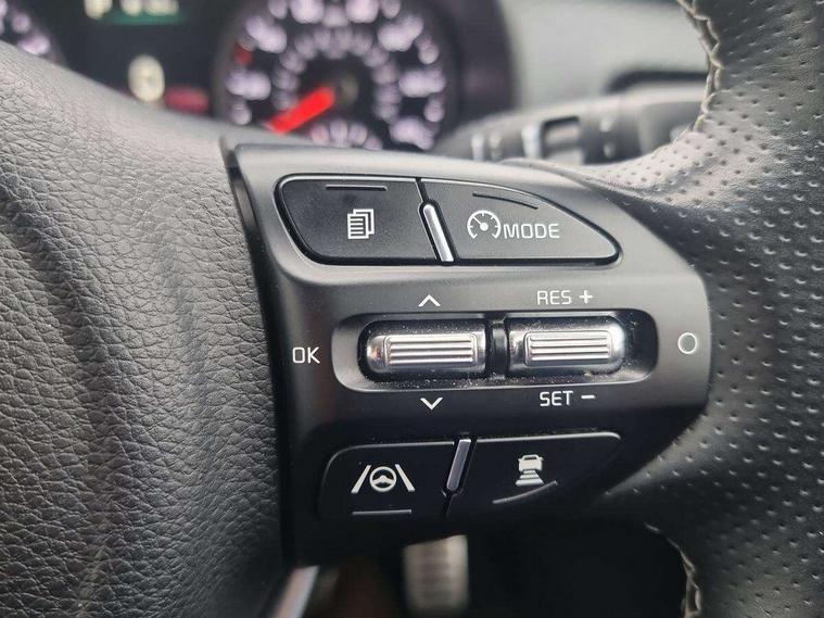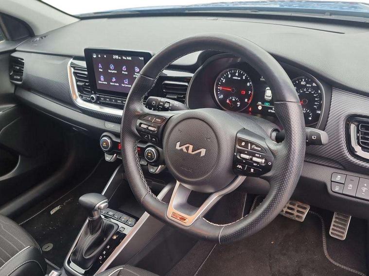 4.2" supervision colour cluster display, 8" touchscreen navigation, Apple car play/Android Auto with voice control, Blind spot collision avoidance rear, Blind spot collision warning, Drive mode selector, Electric power steering, Emergency call service, Emergency stop signalling system, External temperature display, Forward Collision-Avoidance Assist (FCA) - City/Pedestrian/Cyclist, Front parking sensors, Intelligent speed limit assist, Kia connected services featuring TomTom live, Lane keeping assist system (LKAS), Driver attention warning (DAW) and High beam assist (HBA), Rear parking sensor, Reversing camera system, Smart cruise control, Trip computer, UVO connect, Intelligent Stop and Go, Audio system with 6 speakers, Bluetooth with music streaming, Front USB port, Rear USB port, Steering wheel mounted controls, Aero blade type windshield wipers, All round electric windows with drivers auto up/down function, Auto dimming rear view mirror, Auto headlights, Automatic defog system, Automatic headlights control, Black side sill, door garnish and wheel arch trims, Black/body colour bumpers, Body coloured exterior door handles, Chrome side window trim, Electrically adjustable/heated/folding door mirrors with LED indicators, Front and rear silver skid plates, Gloss black door mirrors with matt black lower housing, GT-Line body kit, Headlight levelling device, Heated rear window, High gloss black and satin radiator grille, LED Bi-function projection headlights with static bending, LED daytime running lights, LED front fog lights, LED rear combination lights, Privacy glass - Rear windows and tailgate, Rain sensing front wipers, Rear fog lights, Rear side wing doors, Rear wash/wipe, Roof coloured rear spoiler with high mounted braking light, Roof rails, Shark fin antenna, Solar windshield glass, Speed variable front wipers, Tinted glass, Welcome and follow-me home light functionality, Windscreen Washer Level Warning, 12V power point front, 3 seat bench in 2nd row, 60/40 split folding rear seat, Air filter, All-round height adjustable headrests, Aluminium pedals, Automatic air conditioning, Centre armrest storage box, Centre console with cupholders, D-Cut perforated leather trimmed steering wheel, Dash illumination dimmer switch, Driver's seat height adjuster, Dual Height Luggage Area Floor, Front and centre cabin lights, Front and rear door map pockets with bottle holder, Gear shift indicator, Glovebox illumination, GT-Line cloth/faux leather upholstery, Heated front seats, Heated steering wheel, ISOFIX Child seat top tethers and anchor fixings outer rear seats, Leather trimmed gearshift, Luggage area light, Luggage area parcel shelf, Luggage net, Luggage net with hooks, Overhead console lamp, Overhead console with sunglasses cases, Passenger front seatback pockets, Passenger seat height adjuster, Satin chrome interior door handles, Single front passenger seat, Sunvisors with vanity mirror illumination (Driver and front passenger), Tilt/telescopic adjustable steering wheel, ABS with Electronic Brakeforce Distribution (EBD) and Brake Assist System (BAS), All round 3-point seatbelts, Electronic stability control (ESC) and vehicle stability management (VSM), Front passenger airbag cut-off switch, Front seatbelt pretensioners + load limiters, Height adjustable front seatbelts, Hill start assist control (HAC), Impact sensing auto door unlocking, Manual child lock in rear doors, Rear seat Occupancy alert, Seatbelt reminder warning, Twin curtain airbags, Twin front airbags, Twin front side airbags, Tyre pressure monitoring system, Alarm system, Door deadlocks, Engine immobiliser, Locking wheel nuts, Smart key with engine start/stop button, Speed sensitive auto door locking, Visible vehicle identification number, High gloss black centre fascia, 17" GT-Line alloy wheels, Tyre mobility kit,