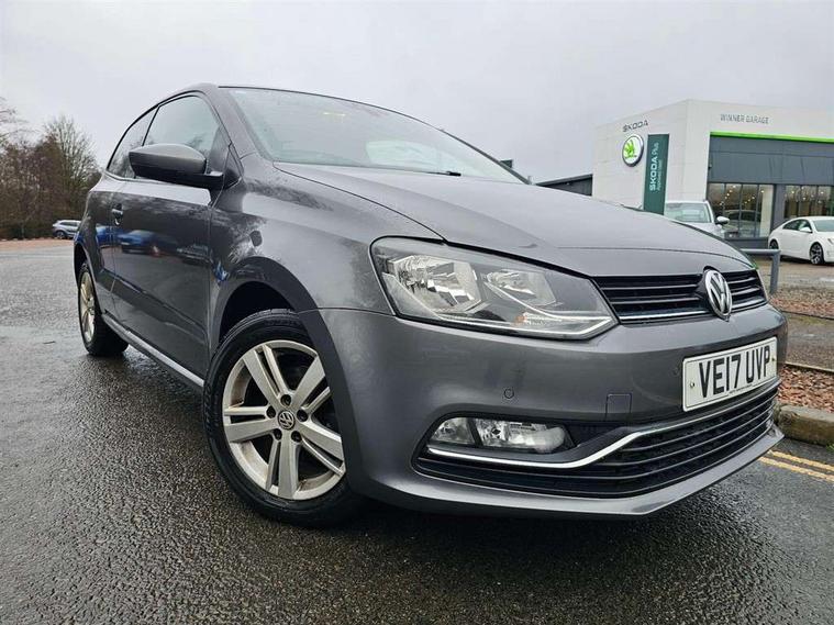 App-Connect, Bluetooth Telephone preparation, Cruise control + speed limiter, Driver alert system, Multi function display, Multifunction computer, PAS - speed related, Service interval indicator, Ultrasonic front and rear optical and audible parking sensors, Warning buzzer and light for front seatbelts unfastened, 6 speakers, Composition media system with radio, glovebox mounted CD, colour touch screen, SD card, aux-in, USB, multimedia interface, DAB Digital radio, Black grille with chrome surround, Body colour bumpers, Body colour door handles, Body colour door mirrors, Body coloured side sills, Chrome trimmed front air intake surrounds, Electric folding door mirrors, Electric front windows, Electric operated/heated door mirrors, Front fog lights with static cornering function, Front wash/wipe with interval delay, Heat insulated tinted glass 65% light absorbing from B pillar back, Heated rear window with auto timer, Rear windscreen washer and wiper with interval delay, 12V power socket in centre console, 2 bag hooks in luggage compartment, 2 cupholders, 3 rear head restraints, 3 spoke steering wheel, 4 grab handles, 60/40 split folding rear seat, Centre console storage, Chrome interior door handles, Driver and passenger sunvisors, Driver seat height adjust, Dust/pollen filter, Easy entry slide seats (access to rear seats), Front door pockets, Front passenger seat height adjust, Front seat backrest storage nets, Front/rear reading lights, Glovebox, Height/reach adjustable steering column, Illuminated vanity mirror, Interior light with delay, Isofix Preparation 2 Rear child seats, Luggage compartment cover, removable, Luggage compartment lighting, Matt chrome gear lever gaiter surround, Multifunction leather steering wheel with leather gear knob/handbrake grip, Storage compartment in front doors, Sunglasses holder, Variable boot floor, Light and sight pack - Polo, 3 point height adj front seatbelts + pretensioners, 3x3 point rear seatbelts, ABS, Automatic post collision braking, Driver/front passenger airbag, Driver/Passenger whiplash optimised head restraints, ESC - Electronic Stability Control + traction control, ESP with EDL + ASR, Hill hold control, Hydraulic Brake Assist (HBA), Tyre pressure monitoring system, Alarm with remote central locking and interior protection, Electronic engine immobiliser, Air vents in Matt chrome, Matt chrome interior trim, 15" steel spare wheel,