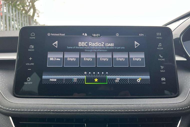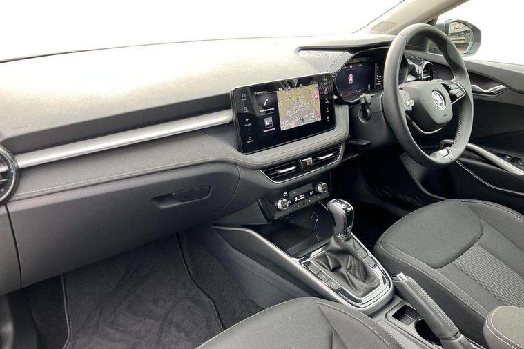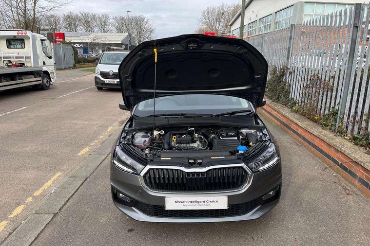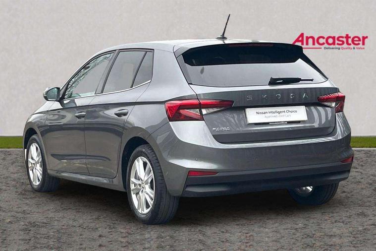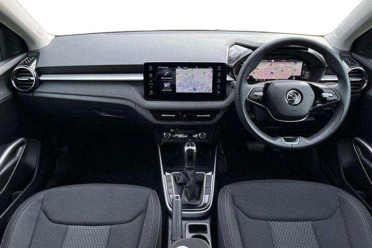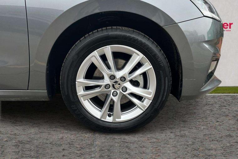 Advanced driver attention and drowsiness monitor, Bluetooth connection, Electromechanical power steering, Exterior temperature gauge, Service interval indicator, Traffic sign recognition, Virtual cockpit with 10.25" colour display, Wireless SmartLink for Apple CarPlay and Android Auto, 6 Speakers (4 in front and 2 in rear), 9.2" colour display skoda navigation system with voice control and web radio, Auxiliary socket for external MP3 player, DAB digital radio reception, Auto dimming rear view mirror, Body colour door mirrors, Body coloured bumpers, Chrome window surround, Door mirror integrated indicators, Front and rear electric windows, Front window wiper intermittent control, Headlight range control - Automatic, Ice scraper in fuel cap, LED daytime running lights with coming and leaving home feature, LED rear lights, Privacy glass, Rear LED fog light, Rear side wing doors, Rear window wiper with washing nozzles, Roof mounted spoiler, SKODA tailgate lettering in chrome, Third brake light, 2 reading lights in front and 2 reading lights in rear, 3 rear headrests, Backrest split and folding, Central console with removable cup holder and storage box, Chrome handbrake release button, Comfort seats, Door sills with fabia badging, Dual zone air conditioning with climatronic electronic control, Fabric upholstery, Front centre armrest, Gearshift knob/handle in leather, Hand brake lever handle in leather, Height adjustable front headrests, Height adjustable front seats, Height adjustable steering wheel, ISOFIX and TopTether anchorage points to the outer rear seats, ISOFIX and TopTether on the front passenger seat, Luggage compartment lighting, Manually adjustable lumbar support in front seats, Metallic grey interior door handles, Pollen filter, Rear seat bench unsplit, Single front passenger seat, Storm grey headlining, Sun visors with mirror and airbag label on passenger side, Textile floor mats, Ticket holder, Umbrella in drivers door, 3-point height adjustable front seats belts with pretensioner and force limiter, Automatic warning lights in case of crash, Driver and passengers airbag with switch off function, e-Call+, ESC including ABS, MSR, ASR, EDS, HBA and XDS, Front and rear seat belt warning, FRONT ASSIST (AEB City and AEB Inter Urban), Front side airbags, Head airbags, Hill hold control, One tone horn, Pedestrian protection, Three rear 3-points safety seat belts with pretensioner and force limiter including stop function for outer rear seat belts, Tyre pressure monitoring system, Anti-theft alarm system including immobiliser, interior monitoring, backup horn, and towing protection, Central locking with radio remote control, interior controls, SAFE function and 2 foldable keys, Chrome edged air vents, Metallic grey central console cover, Metallic grey upper decorative trim, Satin black door and side trim panel in front, Textile microsuede grey lower decorative trim with art grey stitching, Anti-theft wheel bolts protection, Super-low rolling resistance tyres,