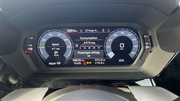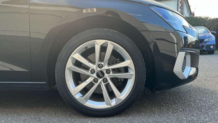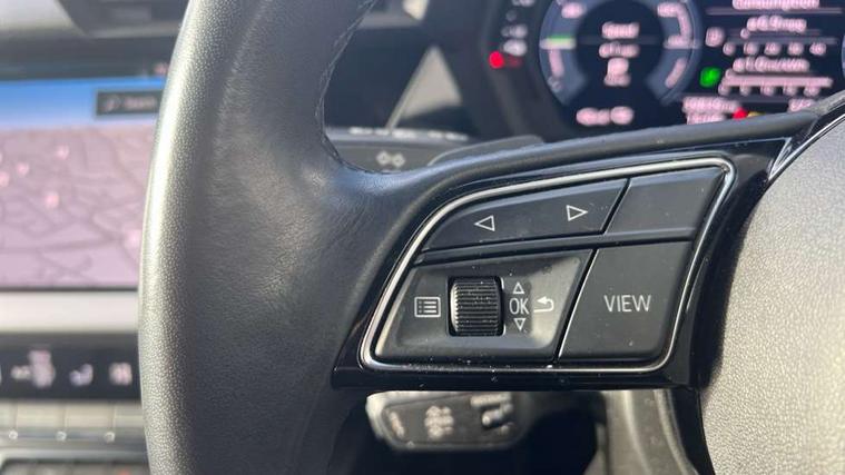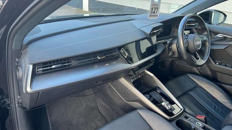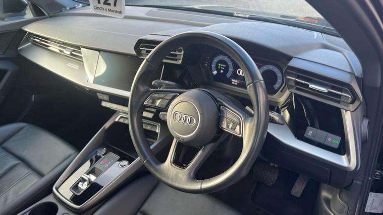 Audi drive select (Auto, Comfort, Dynamic, Efficiency and Individual), Audi smartphone interface, Audi Virtual Cockpit - 10.25" digital and colour instrument cluster, Automatic start/stop system with recuperation, Bluetooth interface, Collision avoidance assistant, e-Call (emergency call), Electromechanical power speed sensitive steering, Lane departure warning system, MMI Navigation Plus with high resolution 10.1" colour touch screen display, Service indicator, Trip computer, Voice control system with natural language interaction, 3 pin 10 amp domestic charging cable, 3.6 kw On-board charger, Standard suspension, Type 2 mode 3 32 amp charging cable, Type 2 socket for AC charging, 2xUSB-C connection with data and charging functions, 6 passive loudspeakers, DAB Digital radio, 3rd brake light, Acoustic glass windscreen, Aluminium window trim, Auto dimming frameless rear view mirror, Body colour exterior mirrors, Body colour roof spoiler, Electrically adjustable/heated/folding/auto dimming door mirrors with integrated LED indications + kerb view function for passenger side, Front electric windows, LED daytime running lights, LED headlights and halogen rear lights, Light and rain sensors, Rear electric windows, Rear side wing doors, Rear window, rear door windows and rear side windows in clear glass, Rear wiper, 12V socket and storage compartment in front centre console, 3 seat bench in 2nd row, 40/20/40 split folding rear seat bench with cupholder, Dual zone electronic climate control, Front and rear centre armrest, Front and rear headrests, Front door sill trims with aluminium inlay, Front/rear floor mats, Height and reach adjustable steering wheel, Interior lighting - Front and rear roof module including reading lights, glove compartment light and right hand side, Luggage compartment floor covering, Manual boot compartment lid, Manually adjustable front seats, Seat side bolsters, Single front passenger seat, Steel grey cloth headlining, Twin leather upholstery, Aluminium interior elements pack - A3 Sportback, Sport styling pack - A3 Sportback, 3x3 point rear seat belts, Audi pre sense front, Driver and front passenger airbag with passenger airbag deactivation, Electronic Stabilisation Control (ESC) including ABS, ASR and EDL, First aid kit with warning triangle and 2 safety vests, Front side airbags with head airbags and interaction airbag, Pre-sense front with pedestrian and cyclist detection, Seatbelt monitoring, Tyre pressure loss indicator, Anti theft alarm, Anti-theft wheel bolts, Electronically operated child lock, Immobiliser, Remote control central locking, Inlays with silk effect paint in platinum grey, Tool kit, Tyre repair kit,