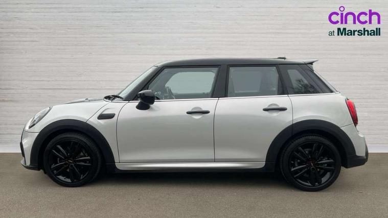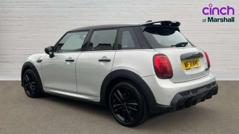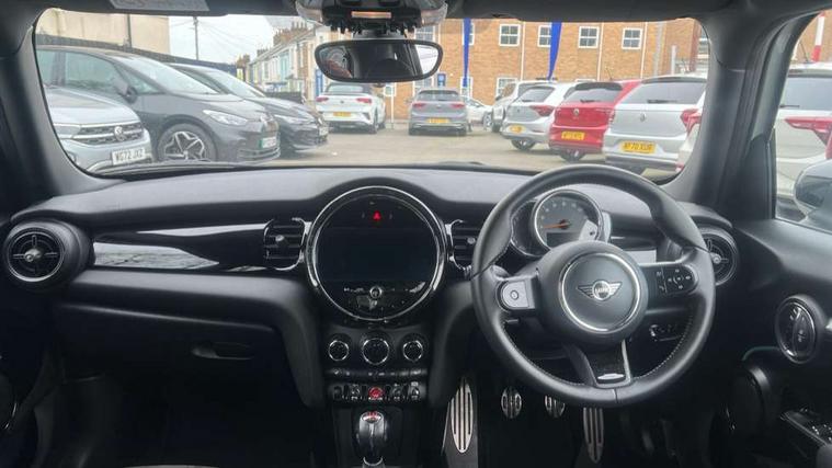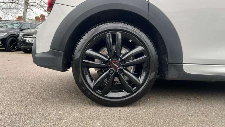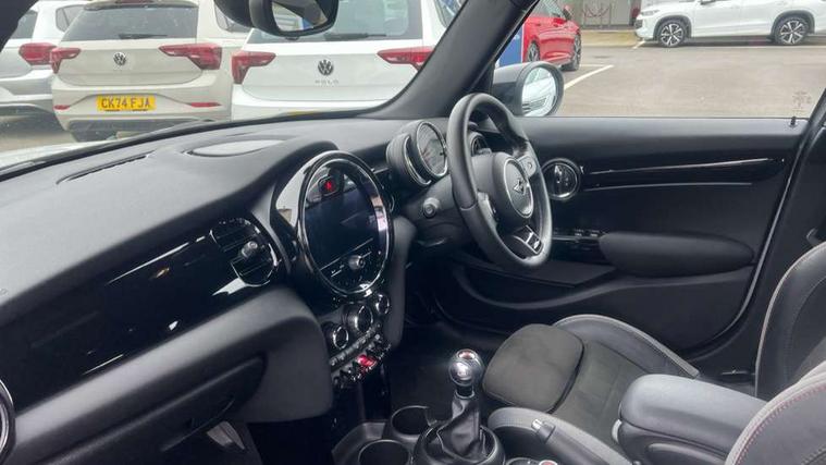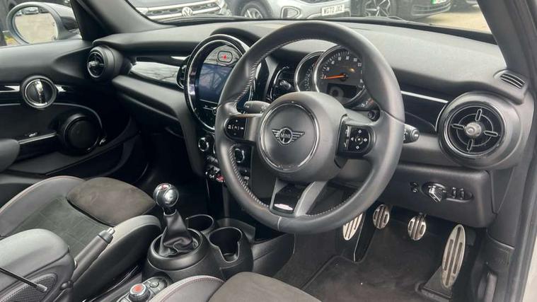 Automatic start/stop function with brake energy recuperation, Compatible mobile phone bluetooth with audio streaming, Cruise control with brake assist, Electro-mechanical speed dependant steering assistance, Flexible car sharing preparation, Instrument cluster, MINI Driving Modes - centre toggle switch to control driving setting (sport, mid and green), Mini E-call, MINI TeleServices, On board computer, Rear park distance control, Service interval indicator, 6 Speed manual transmission including gear change indicator display, Adaptive suspension, Double Vanos system, Fully variable valve control, High precision injection, Performance Control, 6 speakers in front door trims and underneath front seats, 8.8" touchscreen with LED ring, FM tuner and DAB digital radio, Automatic headlight activation switch, Body colour fuel filler cap, Chrome border high gloss black slats radiator grille, Dynamic brake lights, Electric front+rear windows, Exhaust tailpipe on left with chrome finisher, Heated rear window, Heated windscreen washer jets, JCW Aerodynamic kit - Front and rear bumpers with sporty JCW styling and part-painted side sills with MINI John Cooper Works door sill finishers, John Cooper Works rear spoiler, LED headlight with closed ring and daytime driving lights, Metal door sill strips with MINI imprint, Model logo Cooper on right of tailgate, Rain sensor window wipers, Rear fog lights, Rear LED lights with union jack design, Rear window wiper, Side scuttle panel with integrated indicator, Sun/heat protection glass, White indicator lenses, 12V Accessory socket in centre console, 4 lashing eyes in luggage compartment, 60/40 split folding rear seat, Anthracite headliner including grab handles and clothes hooks, Carbon black colour line - Knee roll and door armrest, Chrome interior highlights, Cupholders, Front and rear isofix with front passenger airbag deactivation, Glove compartment, Height and length steering column adjustment, Interior lighting with 12 different colours across the dashboard, underneath door bezel with illuminated laser-engraved design on central display, JCW Sport seats with integrated headrests, adjustable thigh support and John Cooper Works logo, Leatherette gearshift lever and handbrake gaiters, LED reading lights, vanity mirror lights, front foot well light and spotlight on front seats, Manual air conditioning, Mechanical seat adjustment - forward/back & backrest for front seats and driver seat height adjust, Multifunction steering wheel, Storage compartments in doors, Sunvisors with vanity mirrors, Velour floor mats, Walknappa leather steering wheel with grey seam and John Cooper Works badge on Piano Black lower steering wheel spoke, Piano black exterior pack - Mini Hatchback Cooper, 3 point seatbelts on all five seats, 6 Airbags - front, side, head and seat belt tensioners, Anti-lock braking system (ABS), DSC - Dynamic Stability Control, Front and rear disc brakes, Hill start assist, Single tone fanfare horn, Tyre pressure monitoring system, Alarm system with tilt sensor, monitoring doors, bonnet interior and tailgate, Electronic vehicle immobiliser, Start/stop toggle with keyless go, Piano black interior trim, Tool kit,