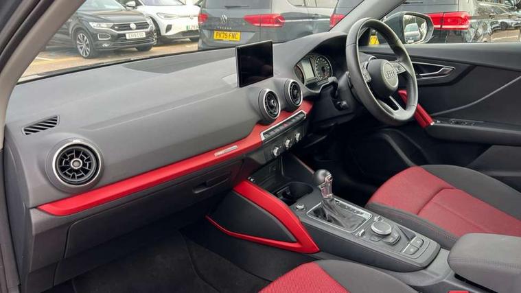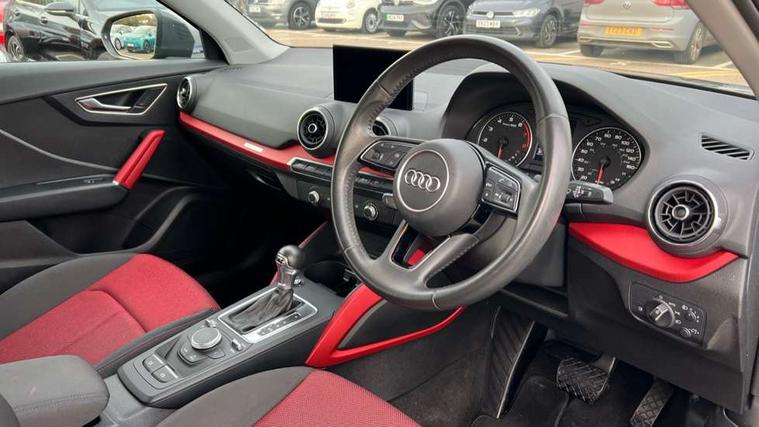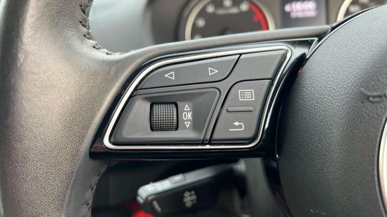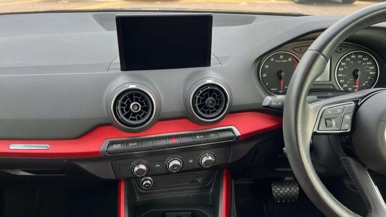 Audi drive select, Audi smartphone interface, Bluetooth hands free telephone connection, MMI - Multi Media Interface control system, MMI SD card Navigation, PAS, Service interval indicator, Voice control system, Dynamic suspension, Audi music interface, Aux input, CD player, DAB digital radio module, MMI radio plus with 7" colour MMI screen and MMI controller, USB port, Body colour door mirrors, Chrome exhaust tailpipe, Door mirror integrated indicators, Electrically adjustable and heated door mirrors, Front and rear electric windows, Rear wiper, Sunband for windscreen, Aluminium door sill trims, Centre console with storage/cupholders, Front and rear door pockets, Front and rear headrests, Front and rear velour floor mats, Front centre armrest, Front sports seats, Glovebox, Height adjustable front seats, Height/reach adjust steering wheel, ISOFIX on front passenger and rear outer seats, Storage compartment in rear centre console, Titanium grey cloth headlining, Non smoking pack - Q2, 3x3 point rear seatbelts, ABS+Electronic Brake force Distribution, Curtain airbags, Driver and passenger airbags, Driver and passenger side airbags, EDL + ASR, Electrically operated child locks on rear doors, Electromechanical parking brake, ESP, Multi-Collision braking, Pre-sense front with pedestrian recognition, Seatbelt warning light, Tyre pressure monitoring system, Warning triangle and first aid kit, Locking wheel bolts, Remote central locking, Thatcham category 1 alarm + immobiliser, Aluminium interior trim,
