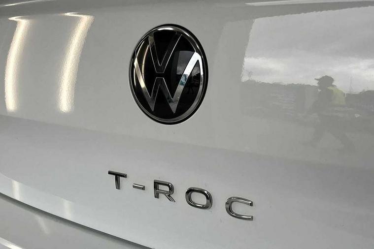 10.25" Digital cockpit pro, Bluetooth mobile phone interface, Driver alert system with fatigue detection, Driver tips and journey analysis, Emergency call service, Lane keeping system Lane Assist, Modified key software - reduce switch off time for key status change to Long no motion, Online services, Park assist including front and rear parking sensors, Service interval indicator, Tailgate/trunk lid release from outside, Think blue trainer driver tips and journey analysis, Warning sound and light for front seatbelts unfastened, Wireless app connect, Battery regeneration during braking, Start/stop function with battery regeneration, Diversity antenna for FM reception, Front and rear 6 speakers, Music playback - MP3, WMA and AAC files, Premium USB cable in choice of either Apple or Android smartphone compatibility, SD card slot, Simultaneous pairing of 2 compatible mobile devices, Title and cover art display, We Connect and We Connect Plus functionality, 3rd brake light, Auto dimming interior rear view mirror, Automatic hazard lights activation under emergency braking, Automatic headlight control with LED separate daytime running lights with coming/leaving home function, Body colour sports bumpers with silver metallic underbody fascia, Dynamic headlight range control with self adjusting whilst driving, Extended roof spoiler, Exterior mirrors aspherical on driver side, convex on front passenger side, External USB type C socket and charging sockets, Front windscreen wiper with intermittent wipe and 4 position delay, Heated rear window, LED Plus headlamps, LED rear combination lamps, LED rear number plate lights, LED tail lamp rear comination lamps, Light mode for poor weather, rain, fog or snow, Power windows with comfort operation and circuit breaker, Rain sensor, Rear exhaust tailpipe, Rear fog light on one side and reversing lights on both sides, Rear side wing doors, Rear wash/wipe with intermittent wipe setting, Remote electrically foldable door mirrors, puddle lights and reverse activated passenger's door mirror, 12V power socket in centre console, 3 rear head restraints, 3 seat bench in 2nd row, 4 load lashing points in luggage compartment, Air care climatronic air conditoning system with active combination filter and 2-zone temperature control, Chrome plated radiator grille inserts, air vent surrounds and light switch surrounds, Door and side trim panel with leatherette insert, Drawer under drivers seat, Front + rear carpet mats, Front centre armrest, Front comfort sports seats, Front cupholders x 2, Front footwell illumination, Instrument lighting, white adjustable panel illumination, Interior ambient lighting and surround lighting, Interior light delay, Isofix child seat preparation, Leather gearshift handle, LED interior light with switch off delay/dimmer and 2 front/rear LED reading lights, Load-through provision with cup holder when folded down ('Unsplit rear seat bench, split folding backrest, with centre armrest), Luggage compartment lighting, Non-folding front passenger seat backrest, Single front passenger seat, Storage compartment in left and right luggage area, Storage compartment in rear doors, Storage compartments in driver and front passenger doors, Sunvisors with illuminated vanity mirrors, Variable boot floor, height adjustable and removable, Driver assistance pack without proactive passenger protection - T-Roc, 3 point height adj front seatbelts + pretensioners, 3 point seatbelts in outer rear with ECE label, ABS, Child locks on rear doors, Driver and front passenger airbag with front passenger airbag deactivation, Driver and front passenger safety-optimised head restraints, Drivers seatbelt reminder, Electronic parking brake, Electronic Stability Control (ESC) inc EDL (Electronic Differential Lock) and ASR (Traction Control), Front and rear passengers curtain airbag system including front side airbags, Front assist with city emergency braking and pedestrian monitoring, Front seat side impact airbags, Predictive pedestrian protection, Rear disc brakes, Single tone horn, Tyre pressure loss indicator, Volkswagen roadside assistance, Alarm with interior protection, Anti-theft alarm system with interior monitoring, backup horn, and towing protection, Remote central locking with SAFELOCK, radio remote control with 2 remote control folding keys, Trims for alloy wheels,