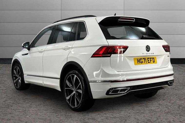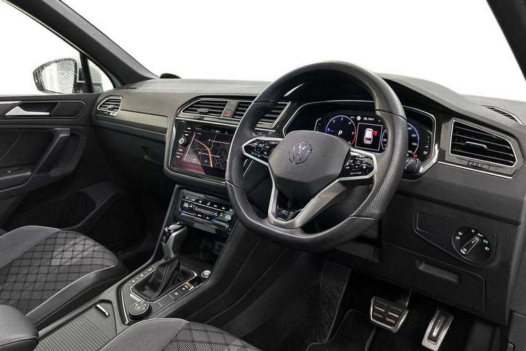Adaptive cruise control ACC stop and go including speed limiter, App-Connect incl. App-Connect Wireless for Apple CarPlay and Android Auto, Bluetooth phone integration system, Digital Cockpit Pro - Active info display, Distance control assist, Driver alert system, Driver profile selection, Dynamic road sign display, eCall emergency call system, Electromechanical speed sensitive power steering, Engine start/stop button, Lane keeping system Lane Assist, Lights on warning, Multifunction front facing camera, Outside temperature display, Premium multifunction display with multi colour display, Remote control boot opening, Rev counter, Revision / skills operating concept travel assistant, Service interval indicator, Speed limit display, Start/stop system with regenerative braking, Trip computer, Warning sound and light for doors and tailgate open, All wheel drive - 4Motion, Battery regeneration during braking, Diesel particulate filter, Misfuel prevention device for diesel engine, Selective Catalytic Reduction, XDS electronic differential lock for improved traction and handling, 2 USB-C ports in the front, 1 USB-C charging socket on the center console in the rear, Diversity antenna for FM reception, Radio, SD card slot, Simultaneous pairing of 2 compatible mobile devices, SMS functionality - read, compose and send SMS messages using touch-screen display, Title and cover art display, Auto dimming interior rear view mirror, Automatic headlight control system, Black roof rails, Body colour door handles, Body coloured bumpers in R Line style, Body coloured door mirrors with integrated indicators, Chrome moldings on the side windows, Coming/leaving home lighting function, Dynamic headlight range control, Front and rear electric windows, Heated rear window, High level 3rd brake light, Laminated safety glass windshield, heat and sound insulating, LED rear number plate lights, License plate carrier in front and rear, Poor weather light and cornering light, Privacy glass for rear side windows and rear window, R Line body kit, R Line side sills, Rain sensor windscreen wipers, Rear exhaust tailpipe, Rear fog lamp, Rear side wing doors, Rear spoiler in R style, Rear windscreen washer and wiper with interval delay, Side and rear windows in heat insulating glass, Trailer Stability Programme, Unique R Line badging, Windscreen wipers/ intermittent wipe + 4 position delay, 12V outlet in center console rear and in luggage compartment, 12V outlet in front and tray, 2 cup holders in front, 2 LED front reading lights, 2 LED rear reading lights, 3 bench rear seats in 2nd row, 3 rear headrests, 4 load lashing points, 40:20:40 split folding rear seats, Air Care Climatronic 3 zone automatic climate control with enhanced air filter and controls in the rear, Backrest release for left front seat, Black headlining, Brushed stainless steel pedals and footrest, Carpet mats in front and rear with decorative stitching in Gray, Climate control unit rear with touch function, Door and side trim panel in foam film, insert in leatherette, Front centre armrest, Front footwell illumination, Front seats head restraints (x-adjustment), Height adjustable front seats, Height/reach adjust steering wheel, Instrument lighting white adjustable panel illumination, Interior light with delay, Isofix Preparation 2 Rear child seats, Leather gear knob, Lockable cooled glovebox, Luggage compartment lighting, Luggage net, Rear bench seat asymetrically split folding, longitudinally movable and folding with load-through hatch and center armrest, Remote unlocking for rear seat backrest, Removable luggage cover, Removable rear headrests, Safety optimised front head restraints, Single front passenger seat, Sliding/reclining rear seats, Standard rear seat release, Storage compartment in driver's door, Storage compartment in passenger's door, Storage compartment in rear doors, Storage compartments in luggage area left and right, Storage tray on dashboard, Sun visors with illuminated vanity mirrors, Top front comfort seats, Variable boot floor, height adjustable and removable, Ambience pack - Tiguan R Line, Driver assistance pack plus - Tiguan DSG, Park assist pack - Tiguan, 3 point seat belt for centre rear seats, 3 point seat belts with seat belt pretensioners for the outer rear seats, Active bonnet, Curtain airbags for front and rear passengers, Driver/Front Passenger airbags, Drivers knee airbag, Electronic parking brake with auto hold, Electronic Stability Control with driver steering recommendation, ABS, ASR, EDL, EDTC and trailer stabilization, Front assist with autonomous emergency braking (for Adaptive Cruise Control ACC up to 130 mph), Front disc brakes, Front passenger airbag deactivation, Front side airbags, Height adjustable front 3 point seatbelts + pretensioners, Hill hold control, Manual child proof rear door locks, Pedestrian monitoring system, Power assisted brakes, Proactive passenger protection system in combination with front assist, Rear disc brakes, Rigid safety cell with front and rear crumple zones, Two tone horn, Warning sound and light for front seat belts if unfastened, Anti theft alarm system with interior monitoring, backup horn and towing protection, Anti theft wheel bolts, Electronic engine immobiliser, 20" Misano black with diamond turned surface alloy wheels with Airstop tyres, Tool kit,