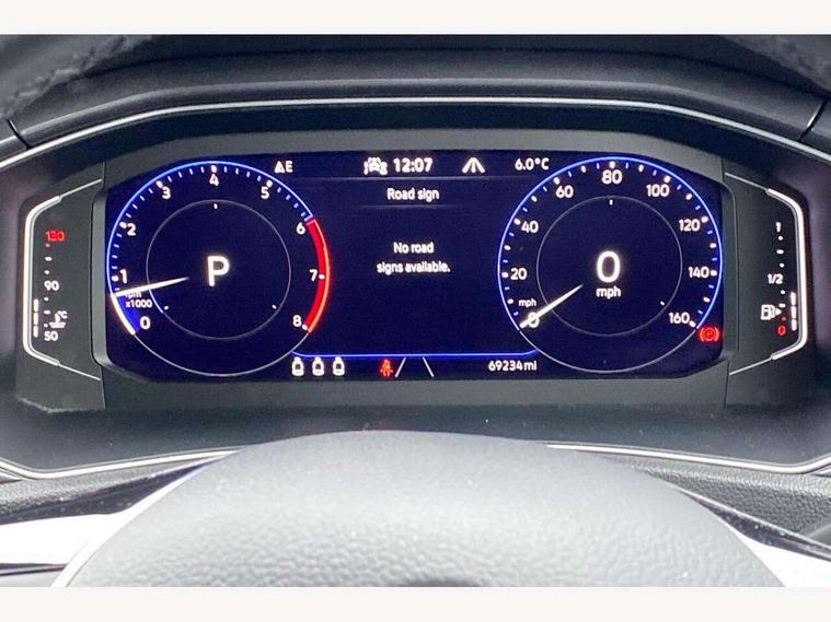 'Lights On' Reminder warning buzzer, Adaptive cruise control, Bluetooth telephone and audio connection for compatible devices, Car information display, Digital Cockpit Pro - Active info display, Driver alert system with audible and visual fatigue detection system, Driver tips and journey analysis, Emergency call service, Lane assist with warning text instrument cluster, Modified key software - reduce switch off time for key status change to Long no motion, Multifunction camera, Multifunction computer with visual gear change recommendation for fuel consumption, Navigation system discover media including streaming and internet, Service interval indicator, Think blue trainer driver tips and journey analysis, Traffic sign recognition, Voice activation, Warning sound and light for front seatbelts unfastened, Wireless app connect for apple carPlay, Battery regeneration during braking, Start/stop function with battery regeneration, DAB Digital radio, Diversity antenna for FM reception, Music playback - MP3, WMA and AAC files, Premium USB cable in choice of either Apple or Android smartphone compatibility, SD card slot, Simultaneous pairing of 2 compatible mobile devices, SMS functionality - read, compose and send SMS messages using touch-screen display, Storage compartment with longitudinal and height adjustable in armrest and two rear air vents, Three route options - Fast, Short, Eco, Title and cover art display, USB-C Interface and USB charging socket, Auto dimming interior rear view mirror, Automatic coming/leaving home lighting function and daytime running lights, Automatic hazard lights activation under emergency braking, Black grained lower door protectors, Black grained wheel arches, Body colour door handles, Body colour sports bumpers with silver metallic underbody fascia, Chrome effect left and right trapezoid exhaust tailpipe fascia surround, Chrome plated moldings, Chrome trim on upper and lower radiator grille, Dusk sensor, Dynamic headlight range control with self adjusting whilst driving, Electrically foldable, adjustable and heated door mirrors with puddle lights and reverse activated kerb-view adjustment on passenger's door mirror, External USB type C socket and charging sockets, Front and rear electric windows, Front fog lights with static cornering function, Front windscreen wiper with intermittent wipe and 4 position delay, Fully galvanised body, Heated rear window, High level 3rd brake light, LED darkened rear light clusters, LED headlamps with automatic range adjustment and unique signature LED separate daytime running lights, LED rear number plate lights, LED tail lamp rear comination lamps, Privacy glass, Rain sensor, Rear tinted glass from B-pillar backwards approx 65% tinted, Rear wash/wipe with intermittent wipe setting, Silver anodised roof rails, Volkswagen roundel, 12V socket in centre console storage area, 3 rear head restraints, 4 load lashing points in luggage compartment, Branded points of interest, Chrome plated radiator grille inserts, air vent surrounds and light switch surrounds, Climate control - 2 zone electronic air conditioning with automatic air recirculation and allergy filter, Door and side trim panel, Drawer under drivers seat, Front centre armrest, Front cupholders x 2, Front seat back storage pockets, Glovebox, Height adjustable front seats, Height/reach adjust steering wheel, Instrument lighting, white adjustable panel illumination, Interior light delay, Interior light in footwell, Isofix easy fit child seat preparation for 2 outer rear seats, LED interior light with switch off delay/dimmer and 2 front/rear LED reading lights, Load through provision with single cup holder when folded down, Luggage compartment cover, removable, Luggage compartment lighting, Split folding rear seat backrests with centre armrest, Storage compartment in left and right luggage area, Storage compartment in rear doors, Storage compartments in driver and front passenger doors, Sunvisors with illuminated vanity mirrors, 3 rear three point seatbelts, ABS, Curtain airbags, Driver and front passenger safety-optimised head restraints, Drivers and front passengers airbags with passengers deactivation switch, Drivers seatbelt reminder, Electronic parking brake with auto hold, Electronic stability control (ESC) includes ASR, EDL, EDTC and trailer stabilisation function, Front assist with city emergency braking and pedestrian monitoring, Front seat side impact airbags, Hill start assist, Predictive pedestrian protection, Rigid safety cell with front and rear crumple zones, Single tone horn, Three point height adjust front seatbelts + pretensioners, Tyre pressure loss indicator, Ventilated front and rear disc brakes, Volkswagen roadside assistance, Alarm with remote central locking and interior protection, Electronic engine immobiliser, Remote central locking with SAFELOCK, radio remote control with 2 remote control folding keys,