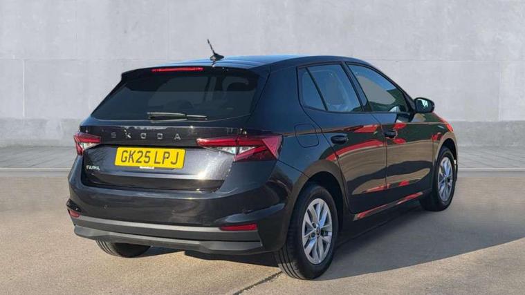 8" Digital instrument display, Advanced driver attention and drowsiness monitor, Bluetooth connection, Electromechanical power steering, Exterior temperature gauge, Service interval indicator, Traffic sign recognition, Wireless SmartLink for Apple CarPlay and Android Auto, 6 Speakers (4 in front and 2 in rear), 8.25" Skoda infotainment touchscreen display, Auxiliary socket for external MP3 player, DAB digital radio reception, Auto dimming rear view mirror, Body colour door mirrors, Body coloured bumpers, Door mirror integrated indicators, Front and rear electric windows, Front window wiper intermittent control, Headlight range control - Automatic, Ice scraper in fuel cap, LED 3rd brake light, LED daytime running lights with coming and leaving home feature, LED rear lights, Rear LED fog light, Rear side wing doors, Rear window wiper with washing nozzles, Roof mounted spoiler, SKODA tailgate lettering in chrome, Unique dark chrome design logo on alloy wheels, 2 reading lights in front and 2 reading lights in rear, 3 rear headrests, Backrest split and folding, Central console with removable cup holder and storage box, Chrome handbrake release button, Dual zone air conditioning with climatronic electronic control, Fabric upholstery, Front centre armrest, Gearshift knob/handle in leather, Grain satin black interior door handles, Hand brake lever handle in leather, Height adjustable front headrests, Height adjustable front seats, Height adjustable steering wheel, ISOFIX and TopTether anchorage points to the outer rear seats, ISOFIX and TopTether on the front passenger seat, Luggage compartment lighting, Manually adjustable lumbar support in front seats, Pollen filter, Rear seat bench unsplit, Single front passenger seat, Skoda lettering on steering wheel, Storm grey headlining, Sun visors with mirror and airbag label on passenger side, Textile floor mats, Ticket holder, Umbrella in drivers door, 3-point height adjustable front seats belts with pretensioner and force limiter, Automatic warning lights in case of crash, Driver and passengers airbag with switch off function, e-Call+, ESC including ABS, MSR, ASR, EDS, HBA and XDS, Front and rear seat belt warning, FRONT ASSIST (AEB City and AEB Inter Urban), Front side airbags, Head airbags, One tone horn, Pedestrian protection, Three rear 3-points safety seat belts with pretensioner and force limiter including stop function for outer rear seat belts, Tyre pressure monitoring system, Anti-theft alarm system including immobiliser, interior monitoring, backup horn, and towing protection, Central locking with radio remote control, interior controls, SAFE function and 2 foldable keys, Black painted air vents, Grain satin black central console cover, Metallic grey upper decorative trim, Satin black door and side trim panel in front, Textile Kota grey lower decorative inserts, Anti-theft wheel bolts protection, Super-low rolling resistance tyres,